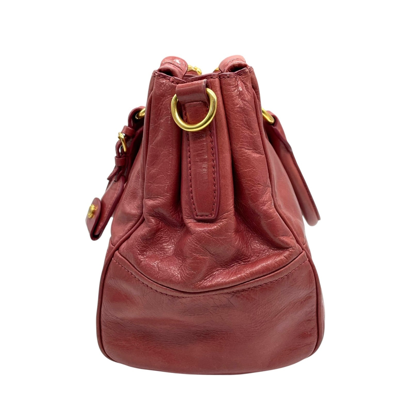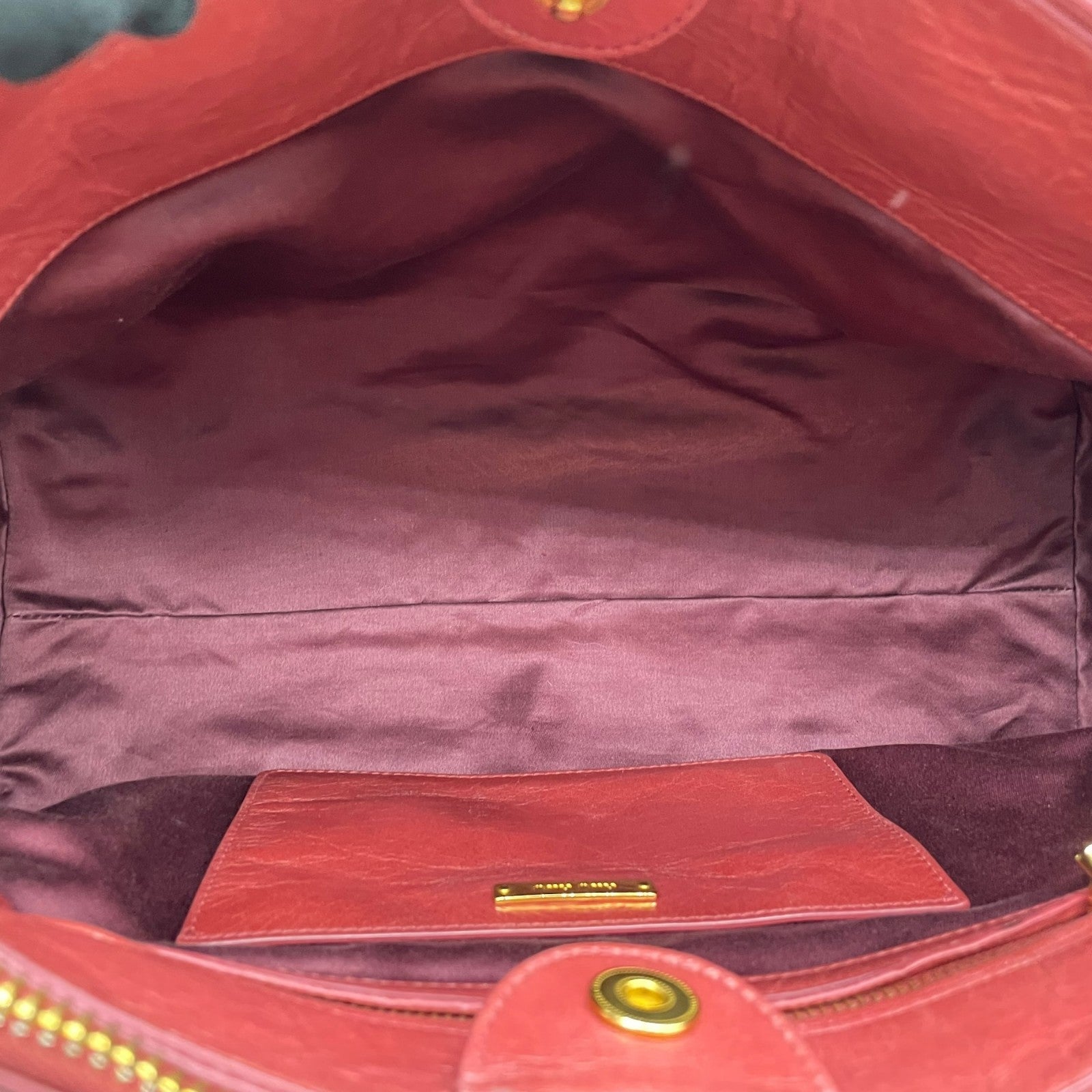 ミュウミュウ MIU MIU レザー ハンドバッグ トートバッグ ピンク ヴィッテロ miu miu VITELLO SHINE 2way Red Tote Bag K5