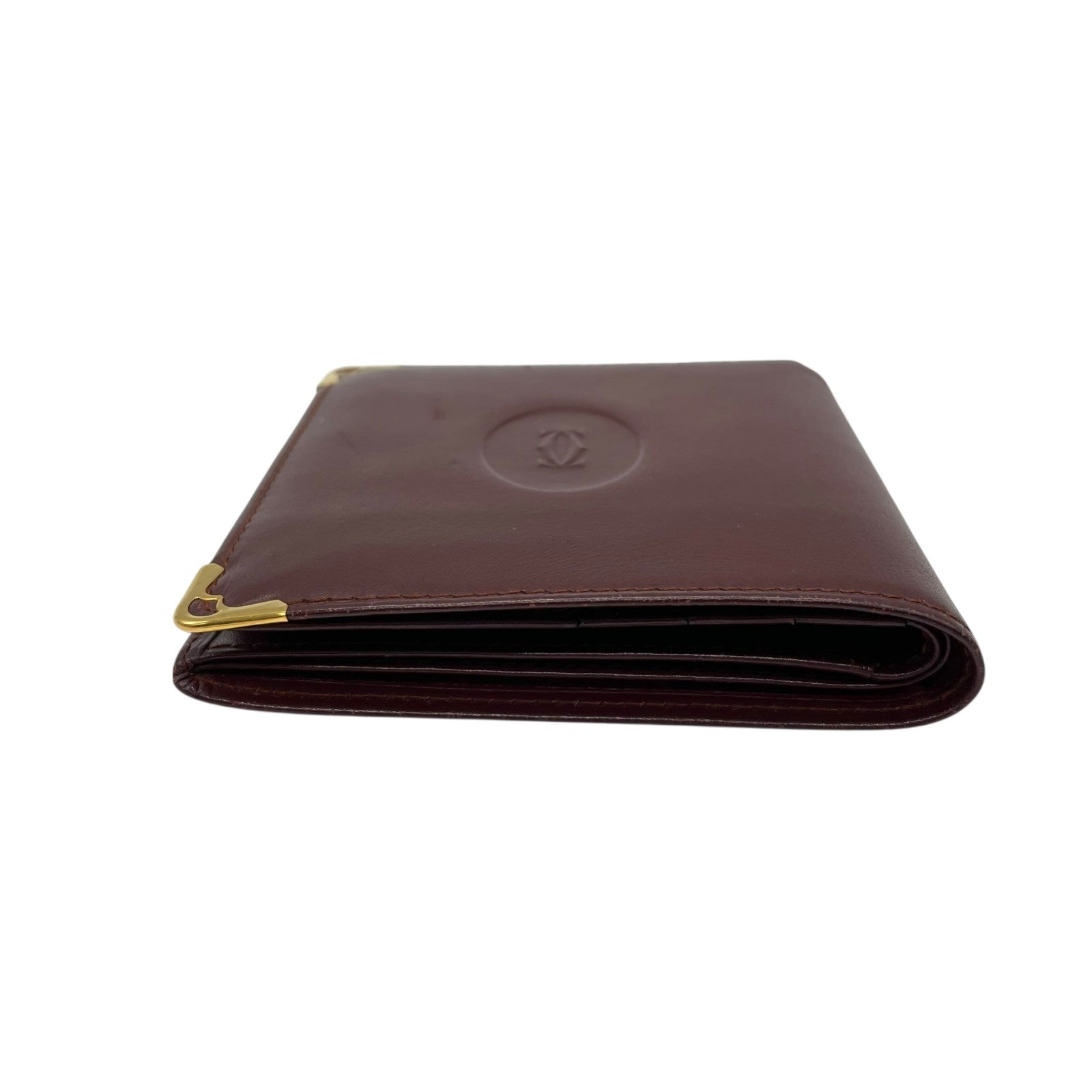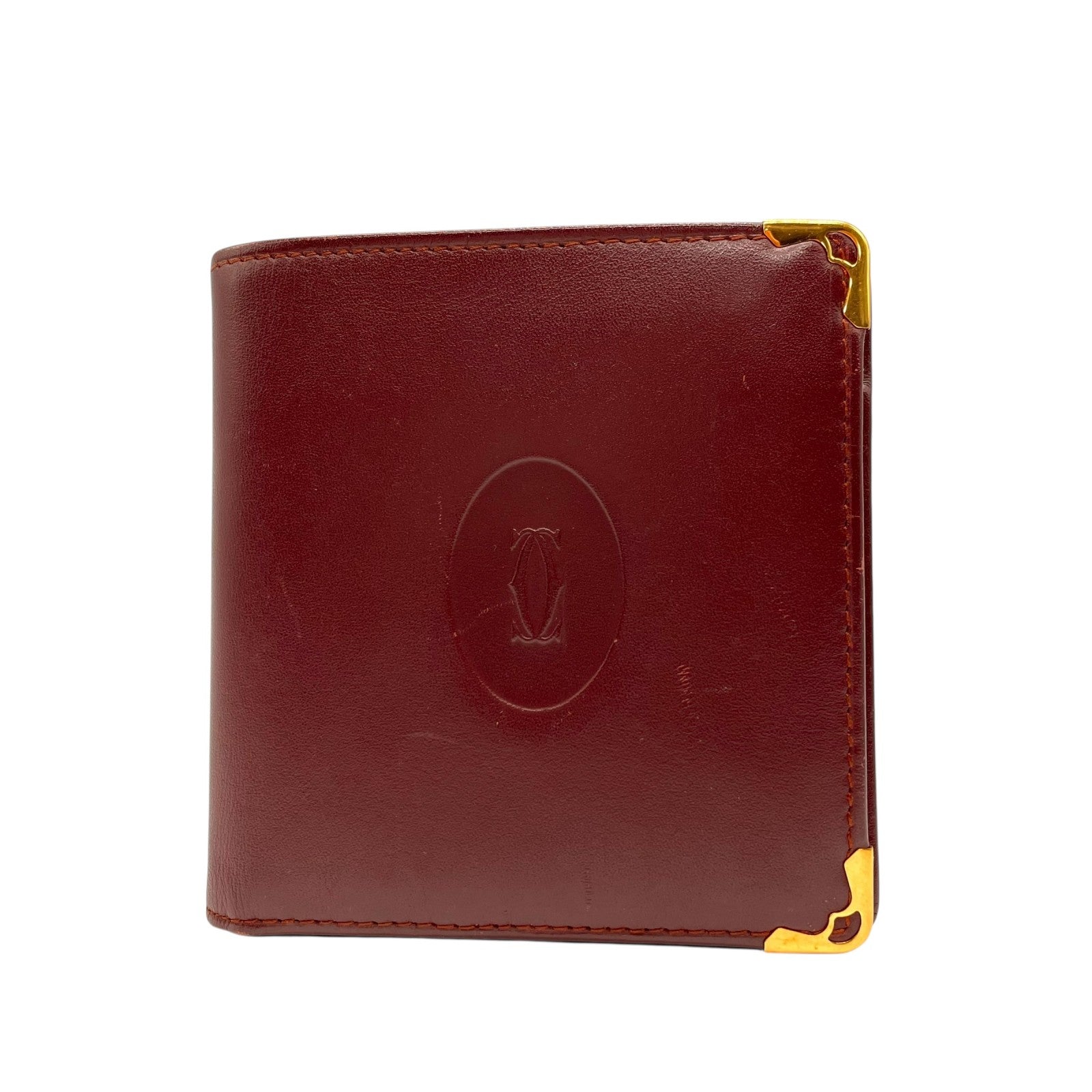 美品 カルティエ Cartier マストライン 二つ折り財布 ボルドー 赤 ワインレッド レザー ゴールド金具 ヴィンテージ メンズ レディース M5