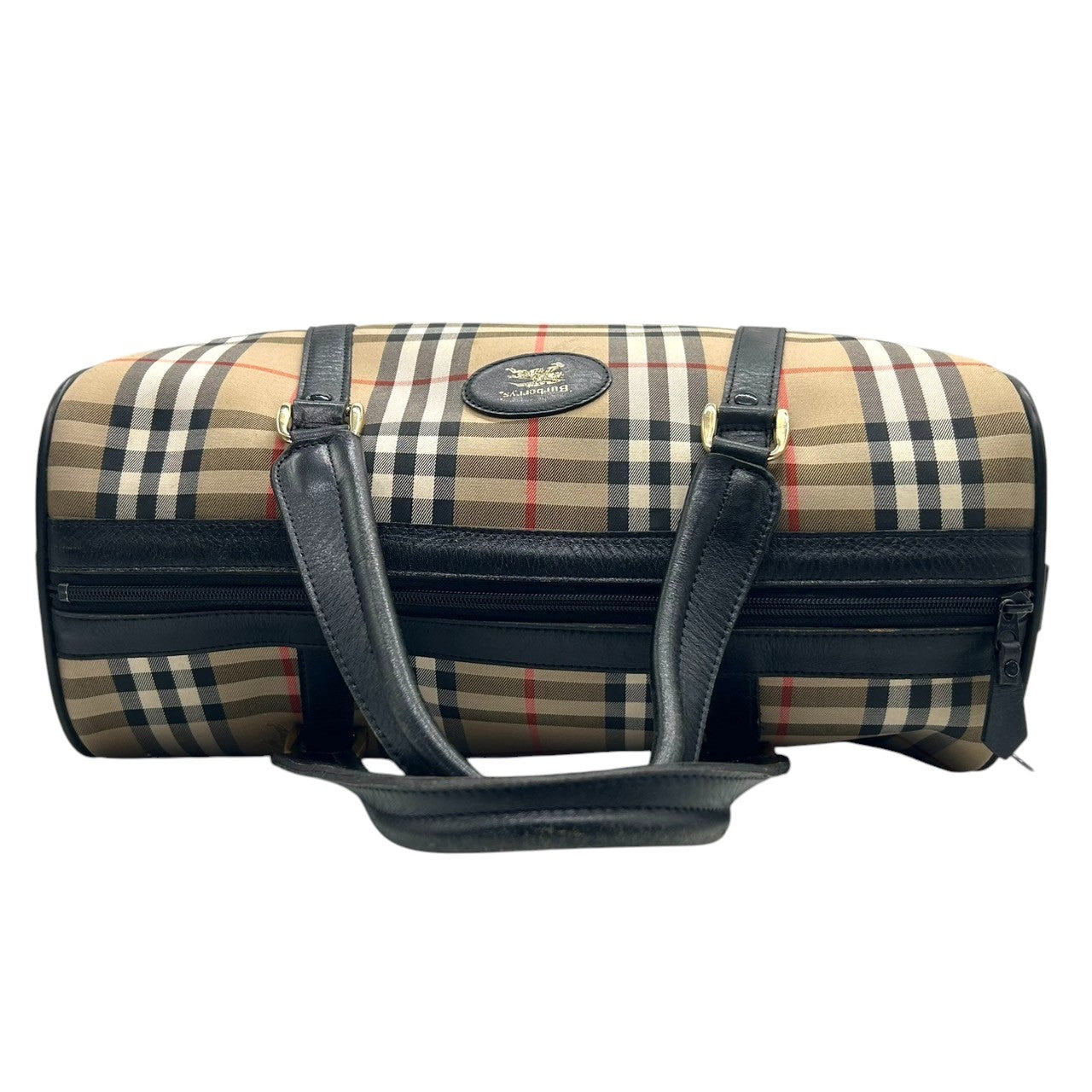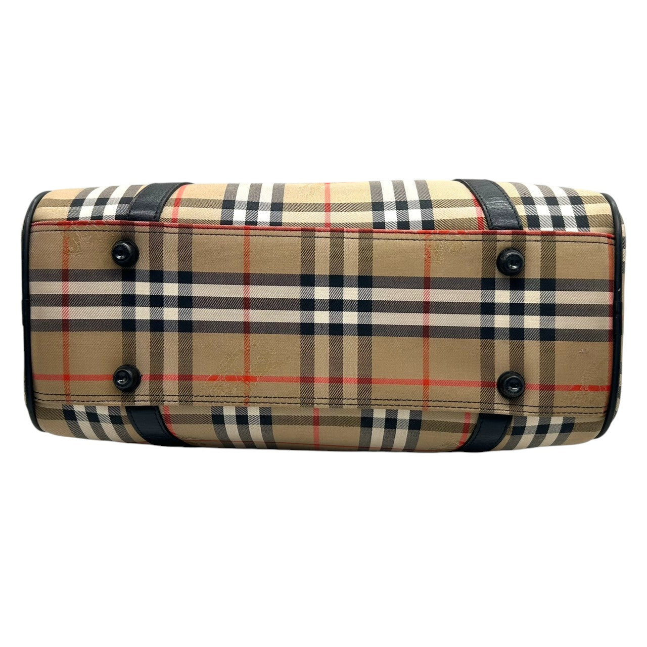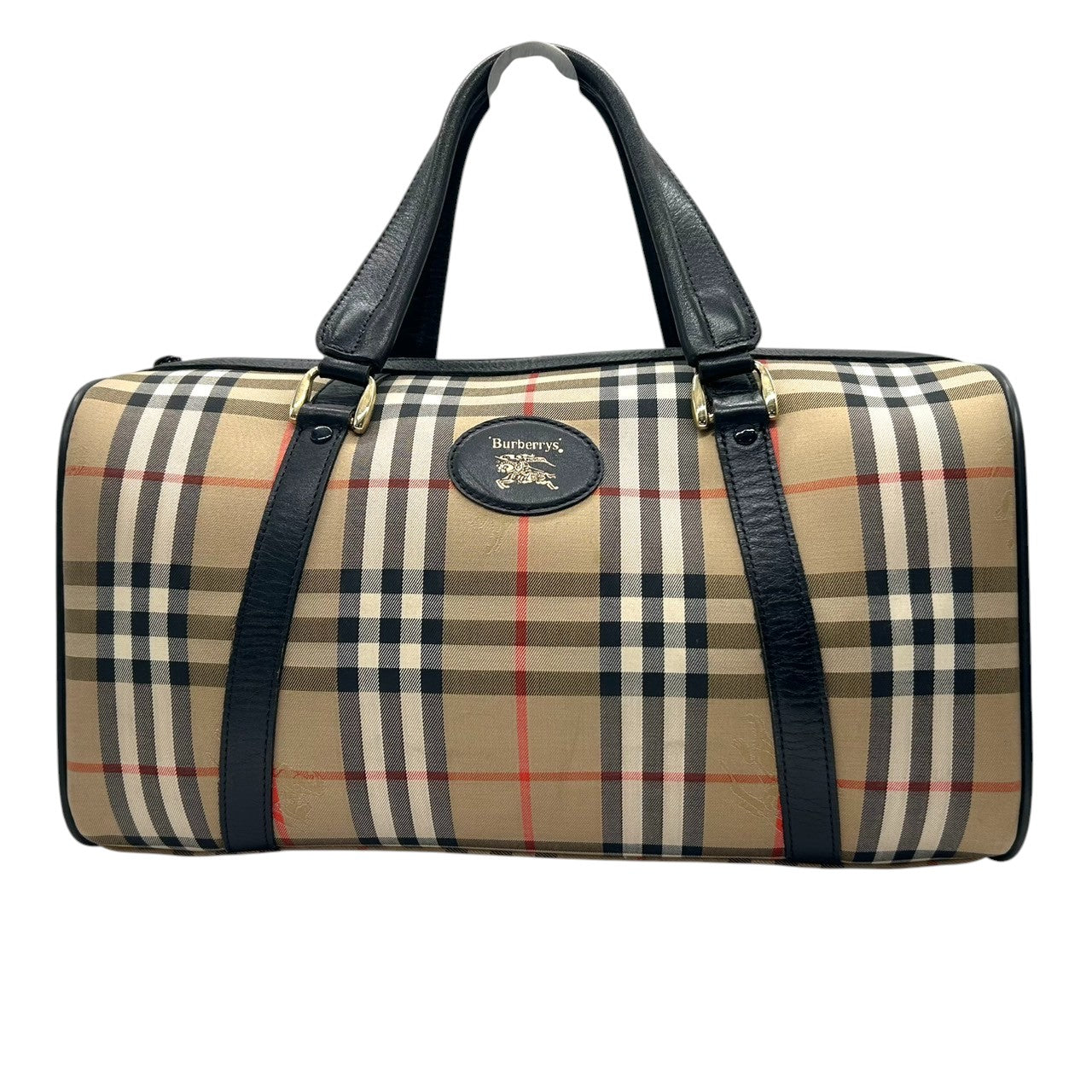 【美品】バーバリー Burberrys ヴィンテージ ミニボストンバッグ ハンドバッグ ノバチェック シャドーホース ホースロゴ キャンバス レザー ベージュ ブラック 筒形 ドラムバッグ 大容量 クラシック レディース 自立可 クリーニング済み H