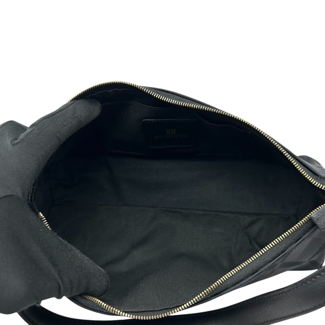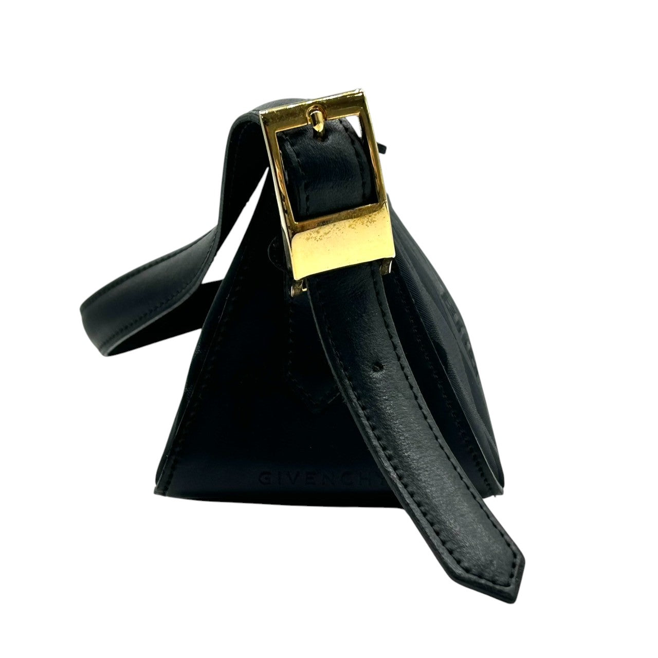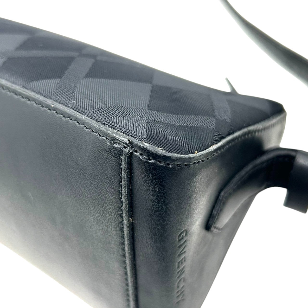 【美品/クリーニング済】 GIVENCHY ジバンシィ ジバンシー ハンドバッグ アクセサリーポーチ 4Gロゴ ナイロン レザー 黒 レディース トライアングル 三角 ピラミッド型 ミニバッグ ビンテージ クラシック フォーマル パーティー S31