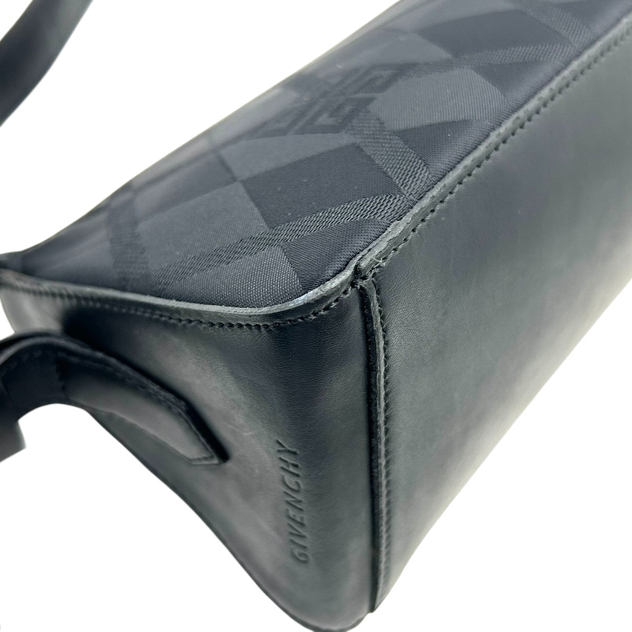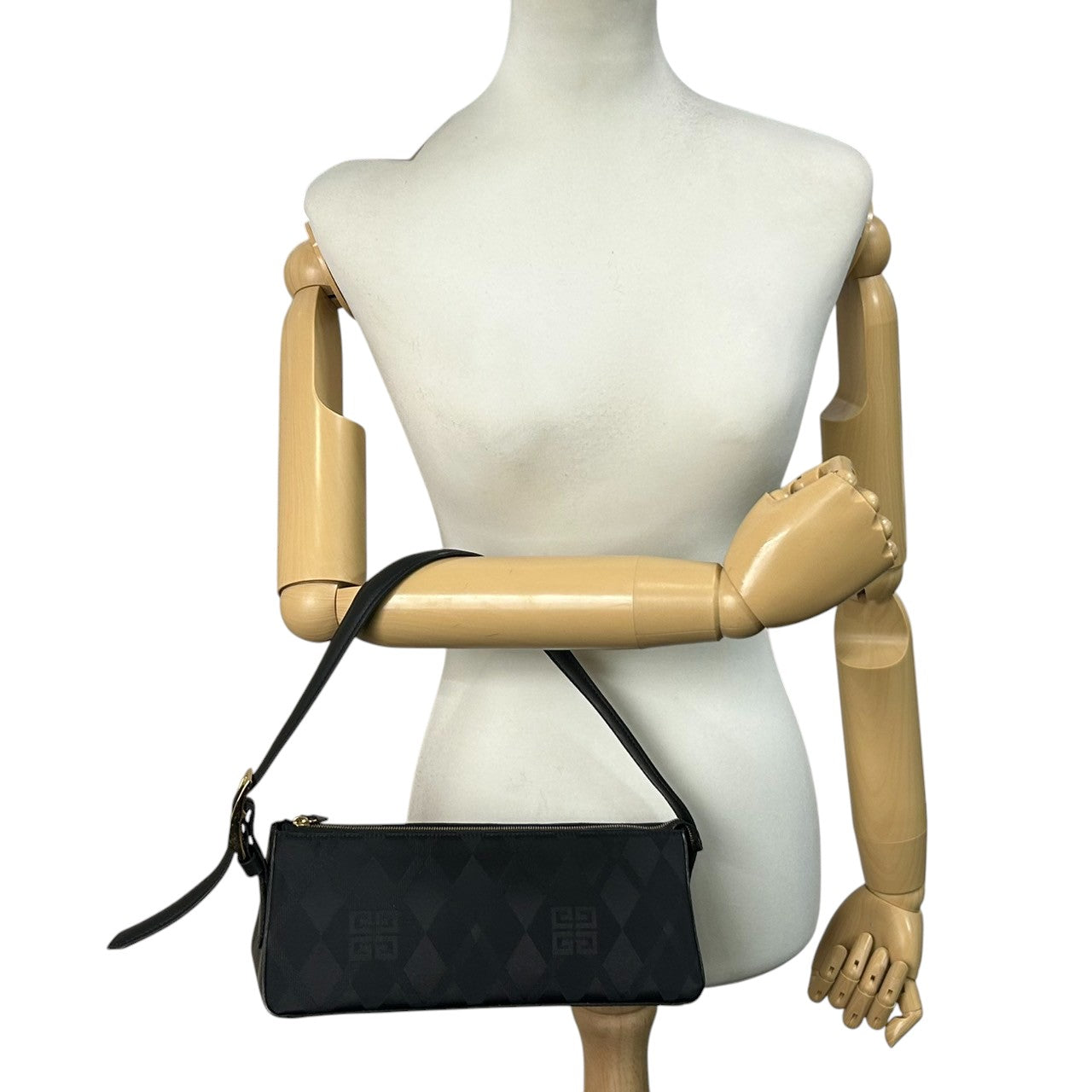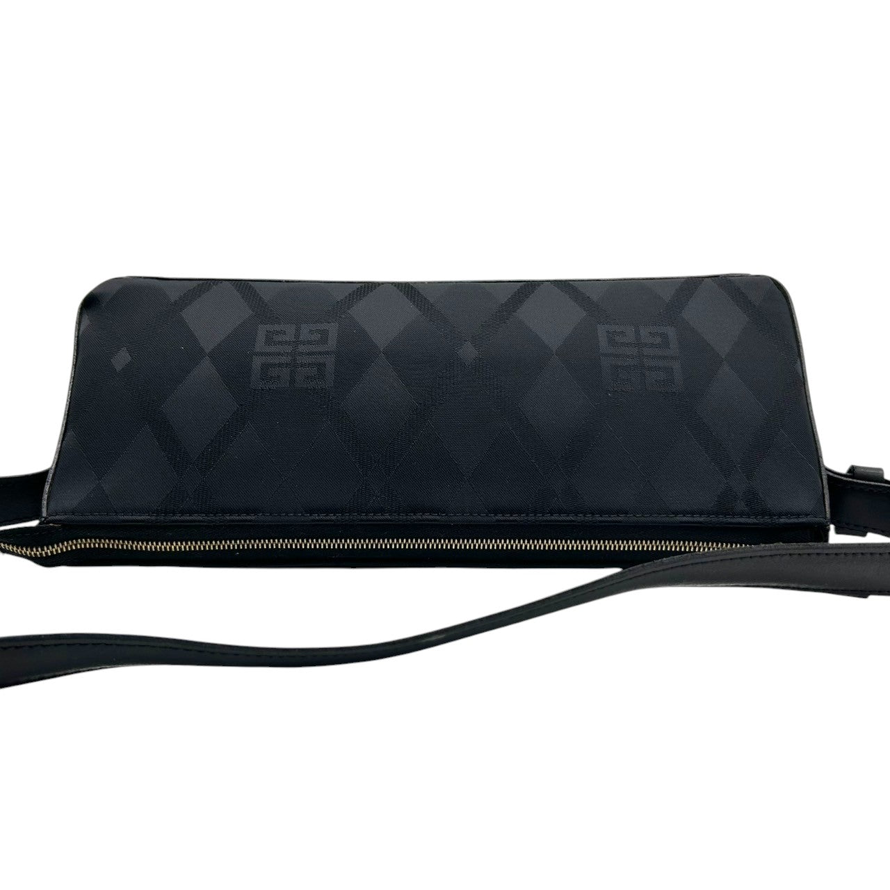 【美品/クリーニング済】 GIVENCHY ジバンシィ ジバンシー ハンドバッグ アクセサリーポーチ 4Gロゴ ナイロン レザー 黒 レディース トライアングル 三角 ピラミッド型 ミニバッグ ビンテージ クラシック フォーマル パーティー S31