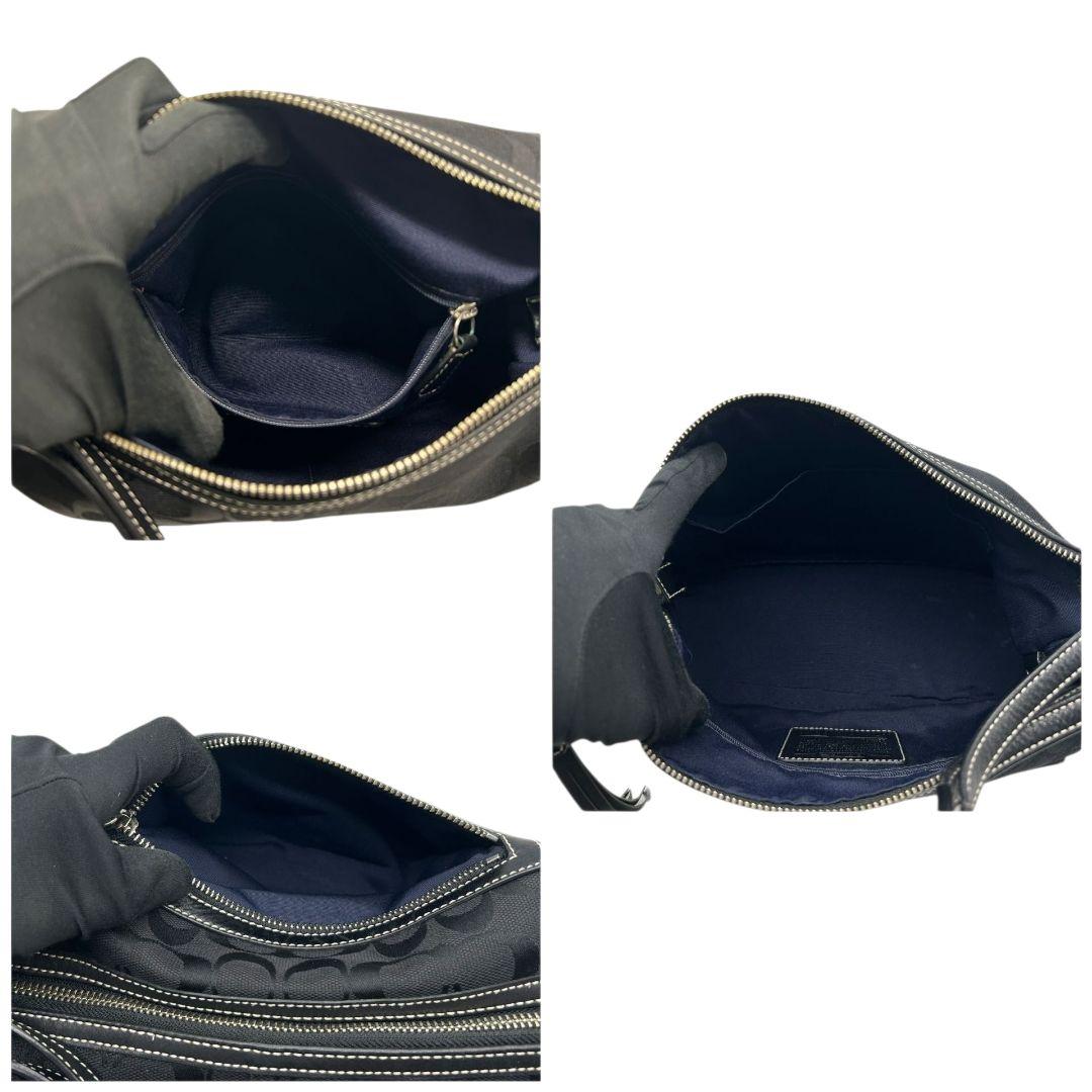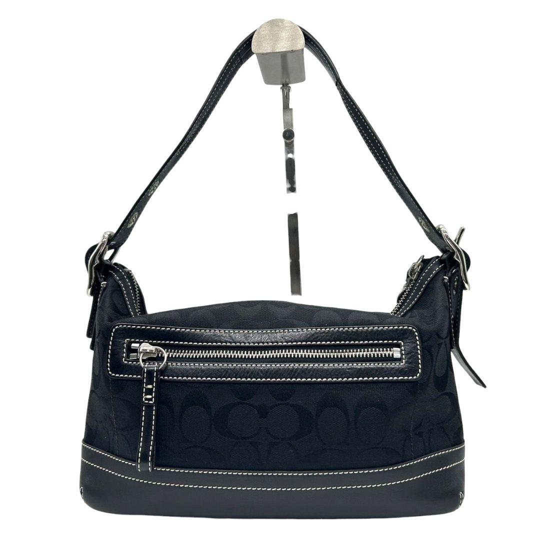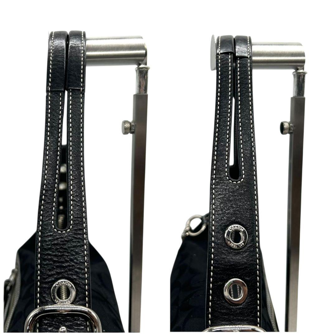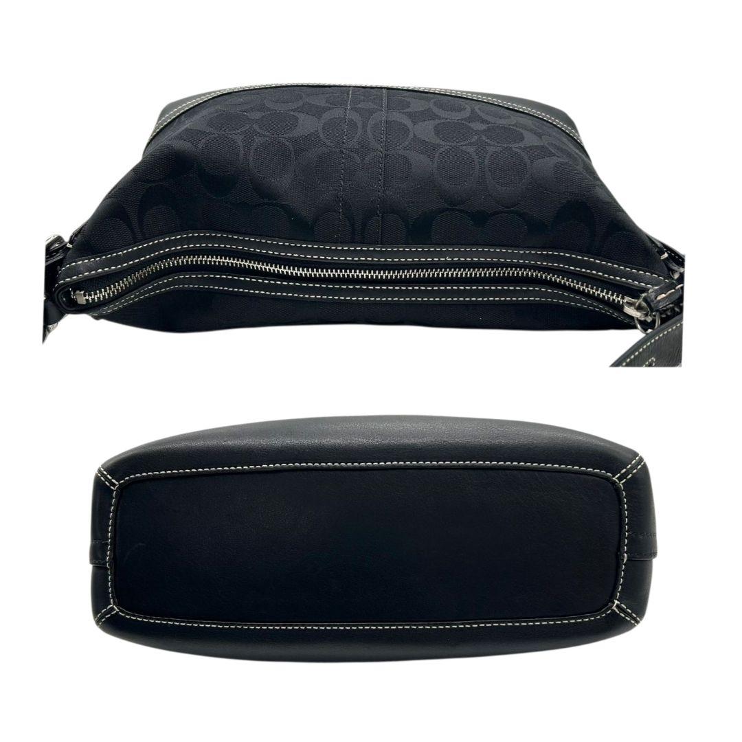 美品 コーチ ハンドバッグ 黒 シグネチャー ワンショルダー キャンバス 9363 肩掛け可 トートバッグ ブラック シルバー金具 レザー 本革 タッセル ロゴタグ COACH E8