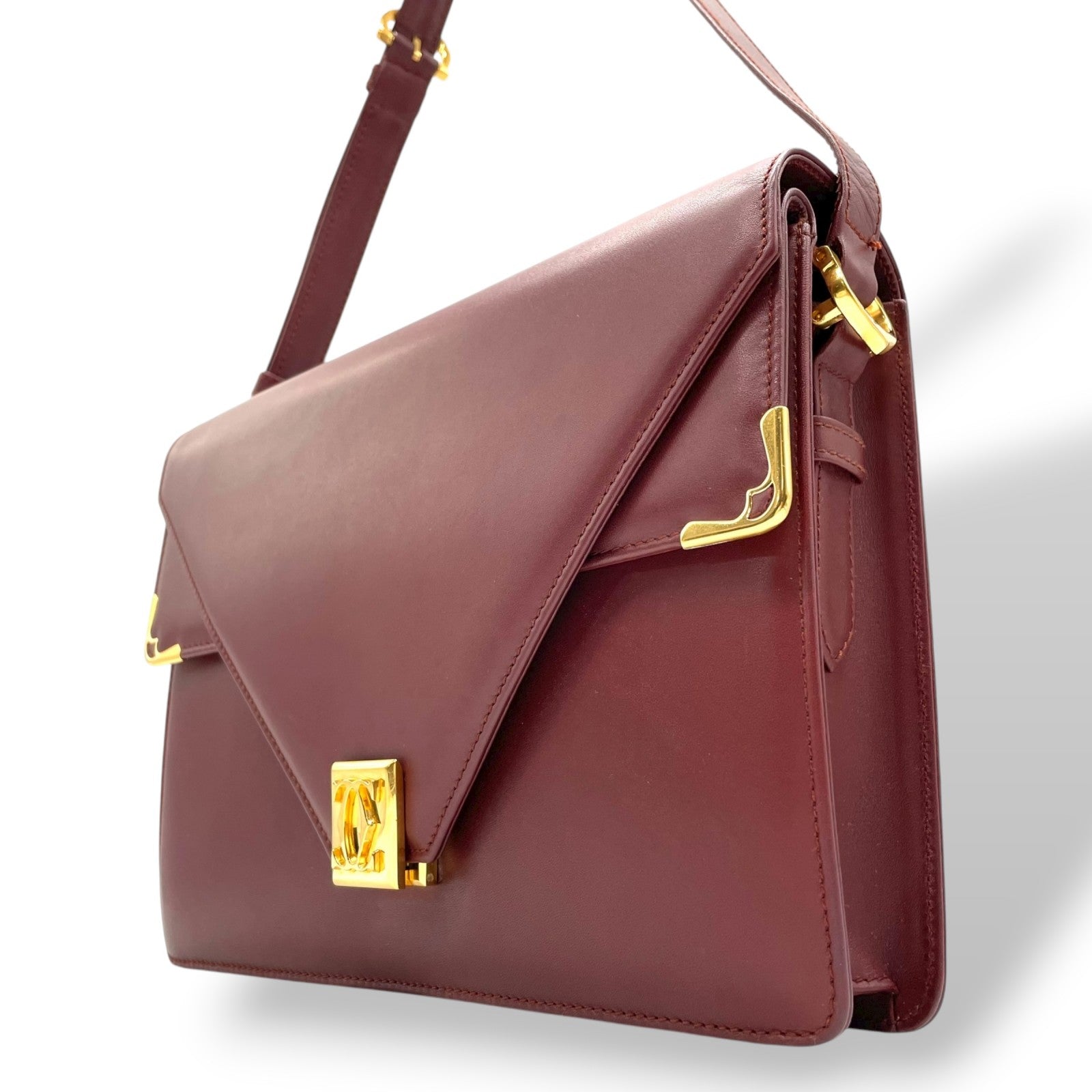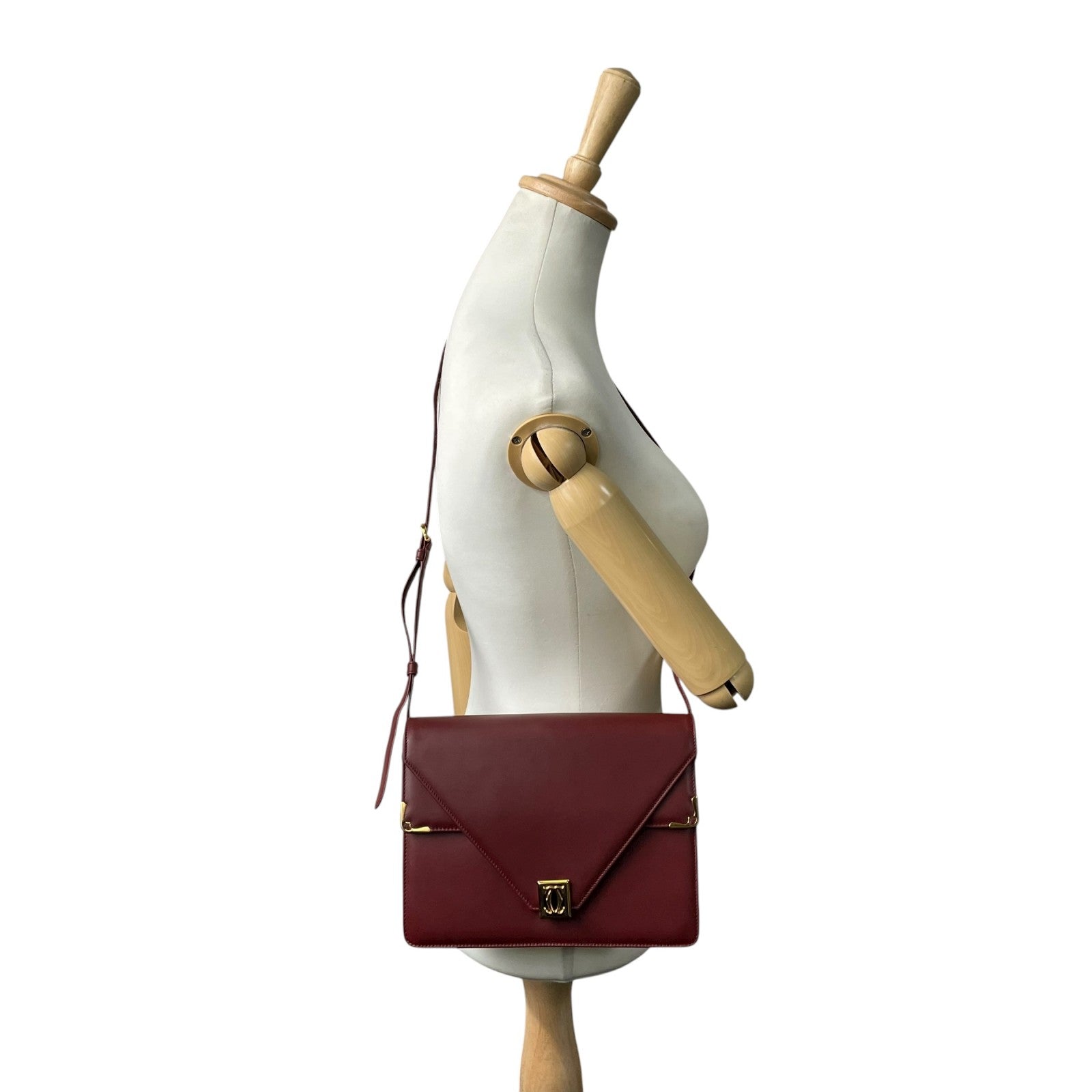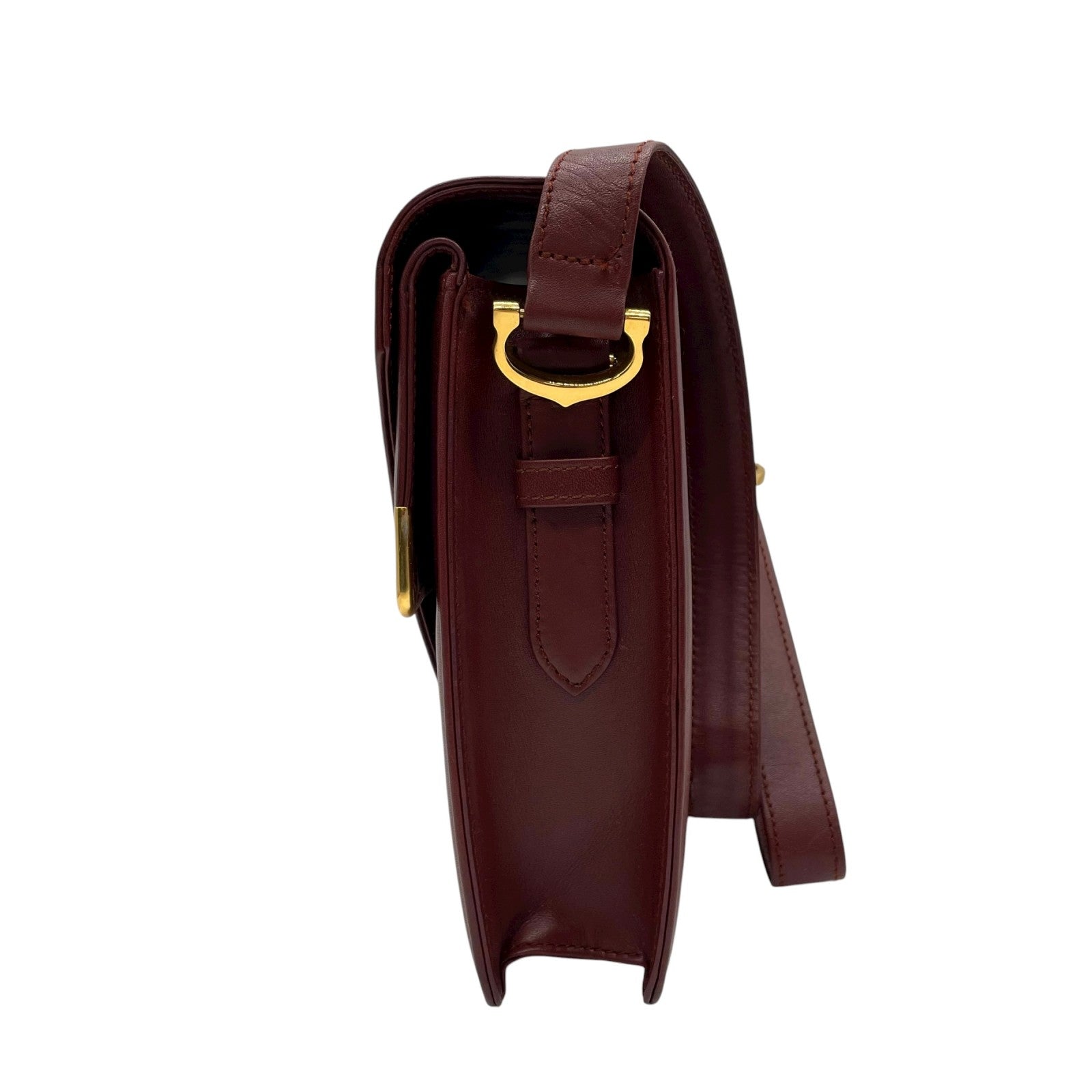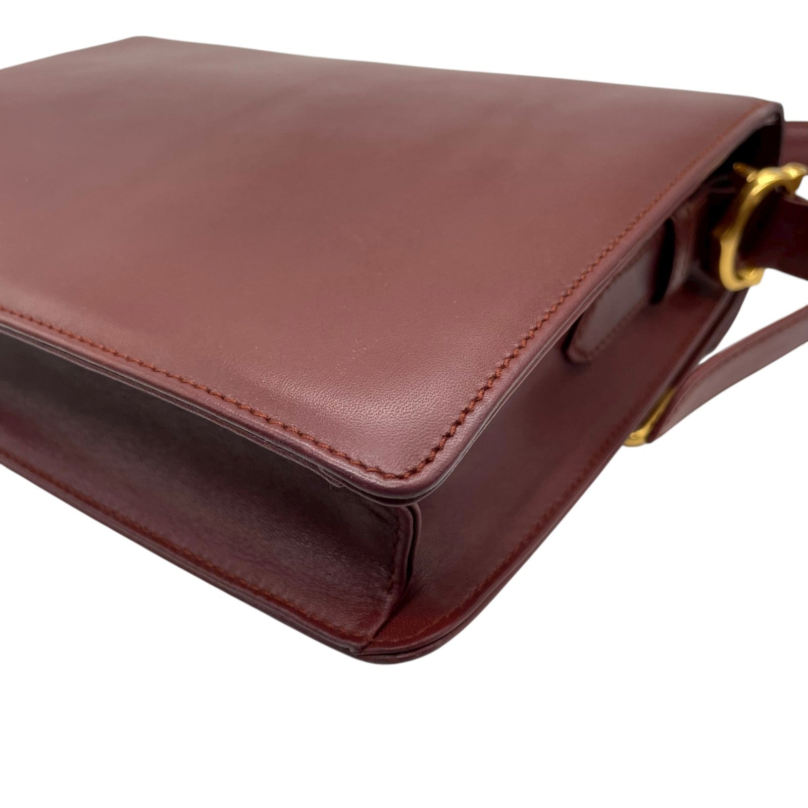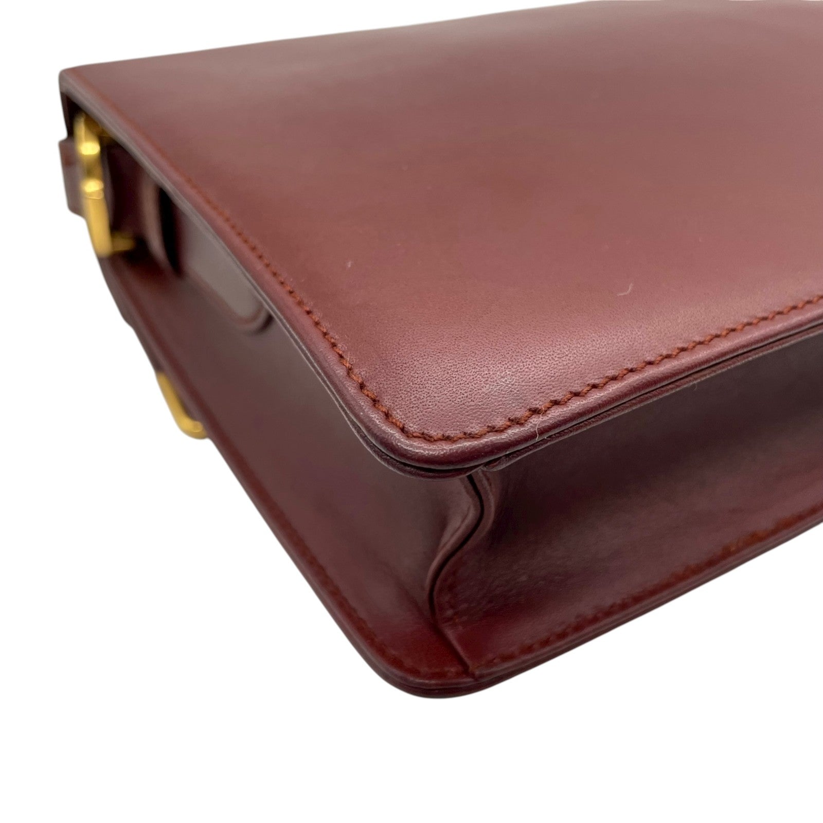 未使用級 カルティエ Cartier レザー ショルダーバッグ マストライン ボルドー wフラップ ダブルフラップ ゴールド金具 ヴィンテージ フラップバッグ K11