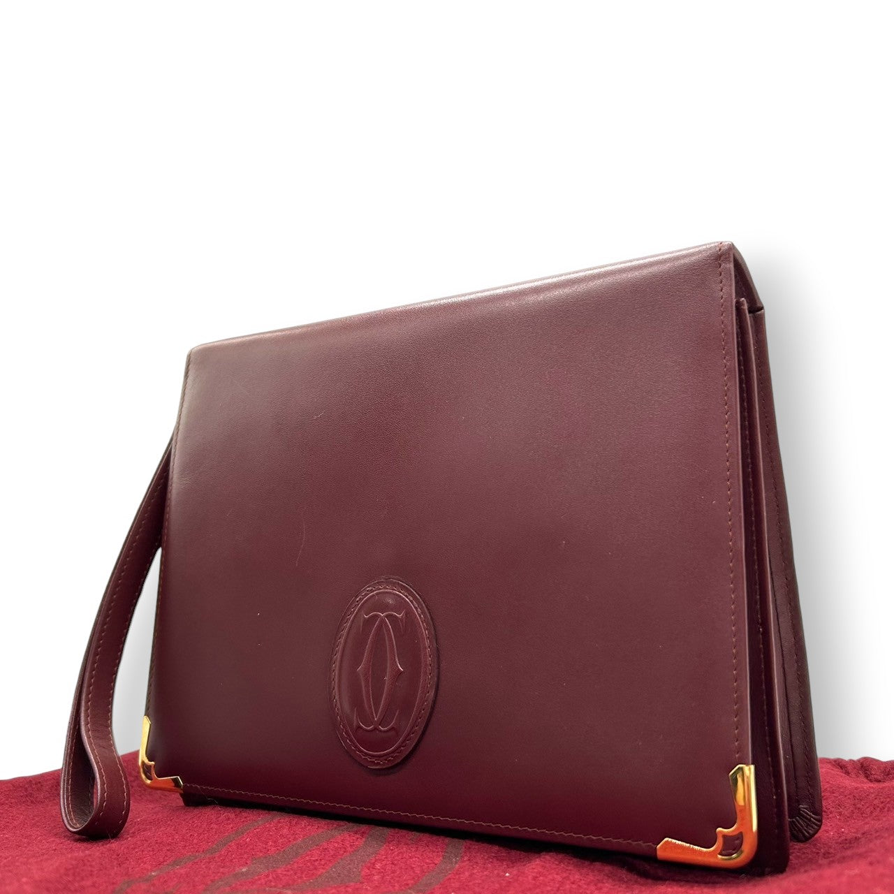 【訳あり】カルティエ クラッチバッグ マストライン セカンドバッグ メンズ レディース Cartier レザー 本革 ボルドー ワインレッド 2Cロゴ Cドゥカルティエ ヴィンテージ エレガント クラシック 高級感 ユニセックス 保存袋付 s41