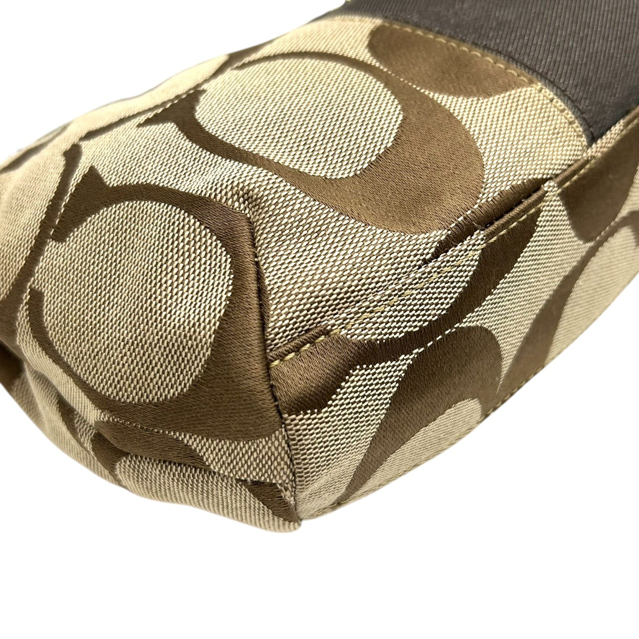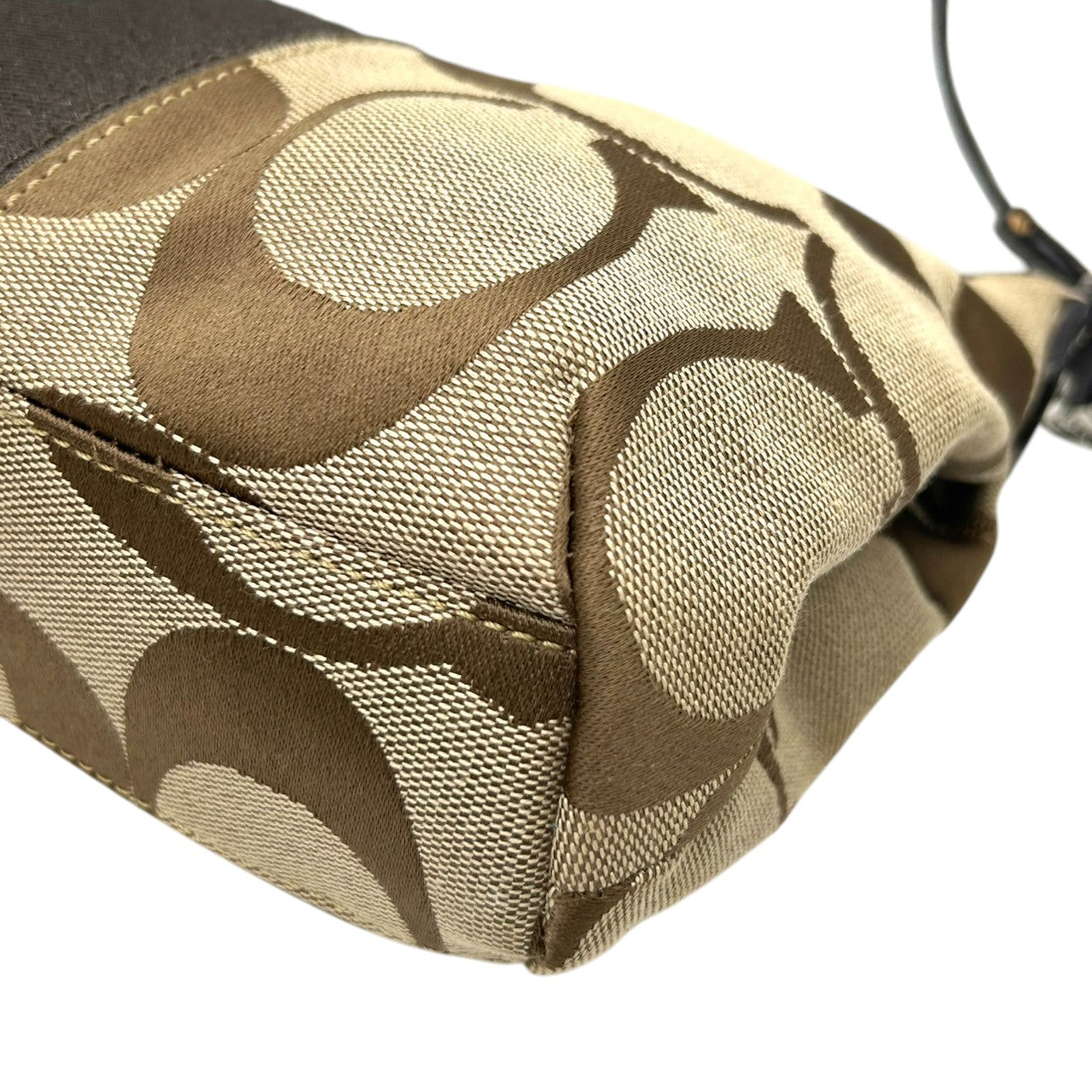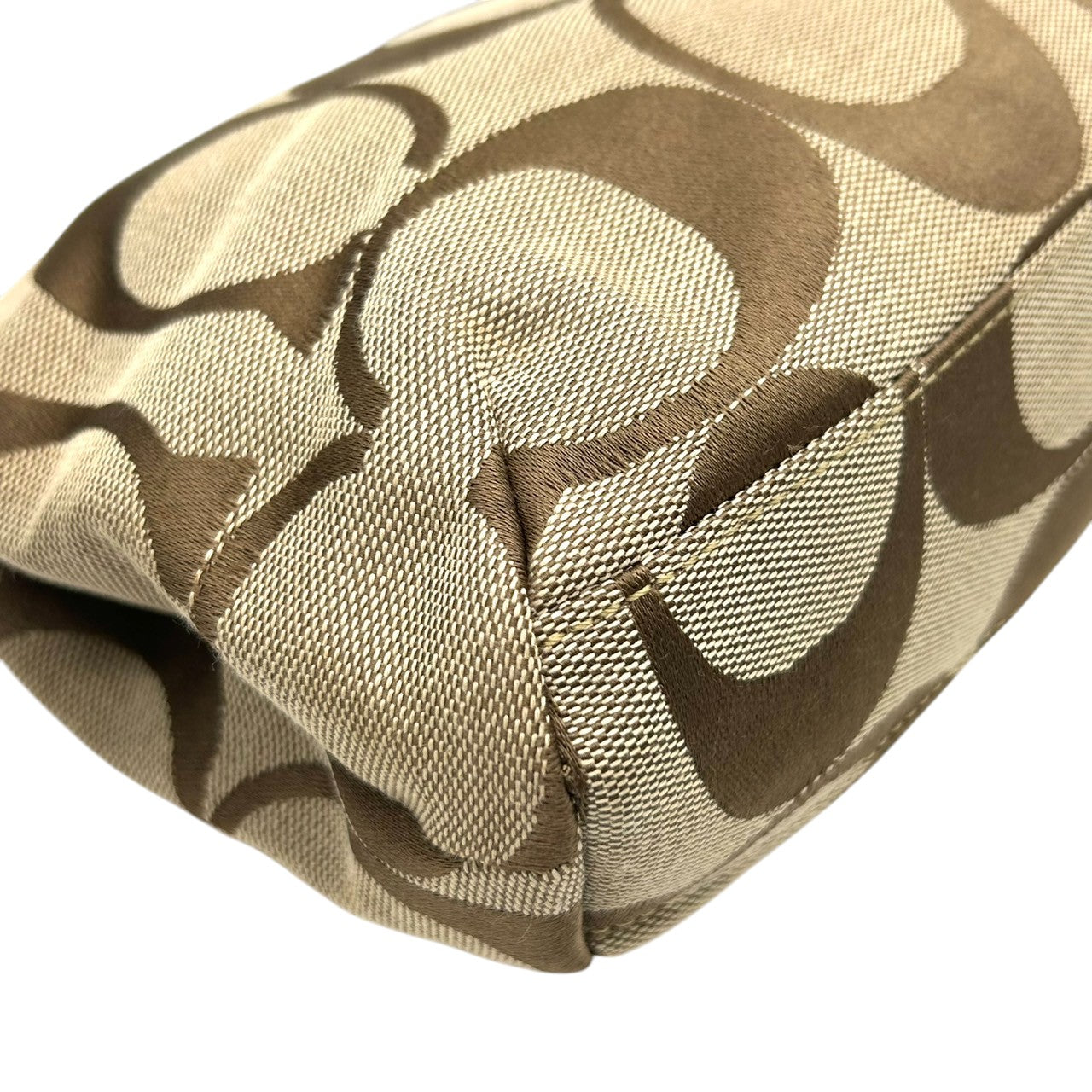 【極美品】コーチ COACH 2WAY ハンドバッグ F19218 ショルダーバッグ シグネチャー レディース キャンバス レザー ブラウン ベージュ ワンショルダー 斜め掛け可 クロスボディ ホーボーバッグ エレガント クリーニング済み s64