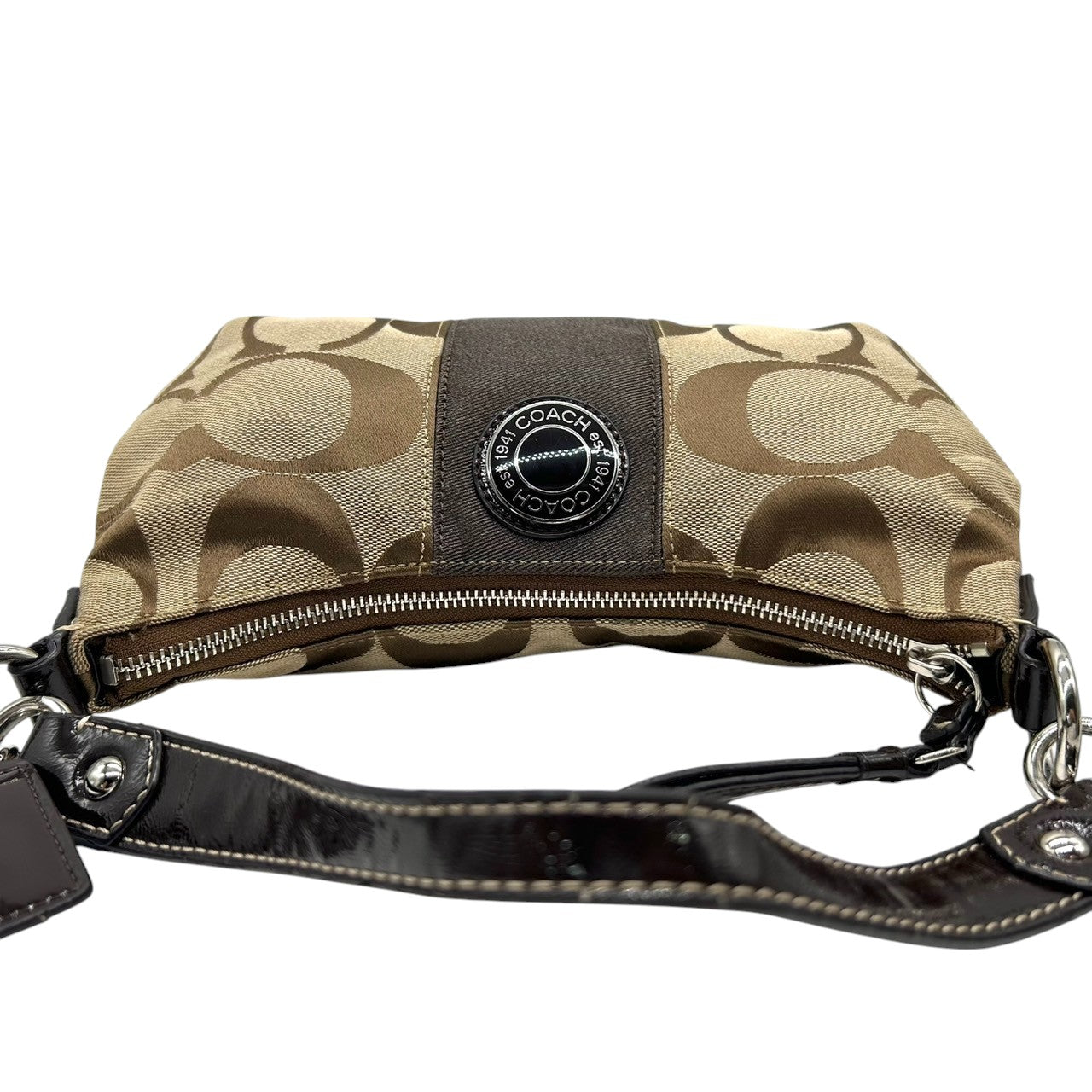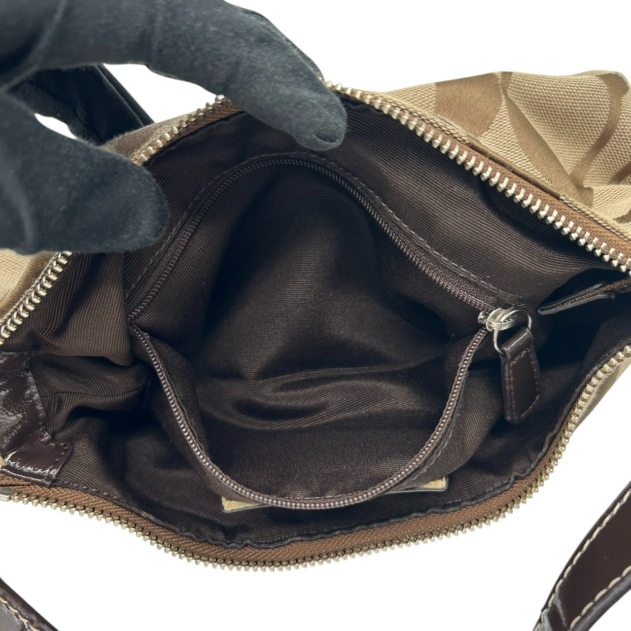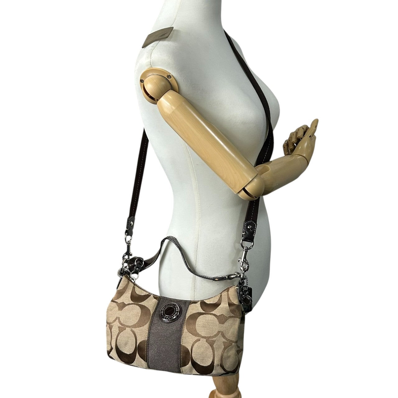 【極美品】コーチ COACH 2WAY ハンドバッグ F19218 ショルダーバッグ シグネチャー レディース キャンバス レザー ブラウン ベージュ ワンショルダー 斜め掛け可 クロスボディ ホーボーバッグ エレガント クリーニング済み s64