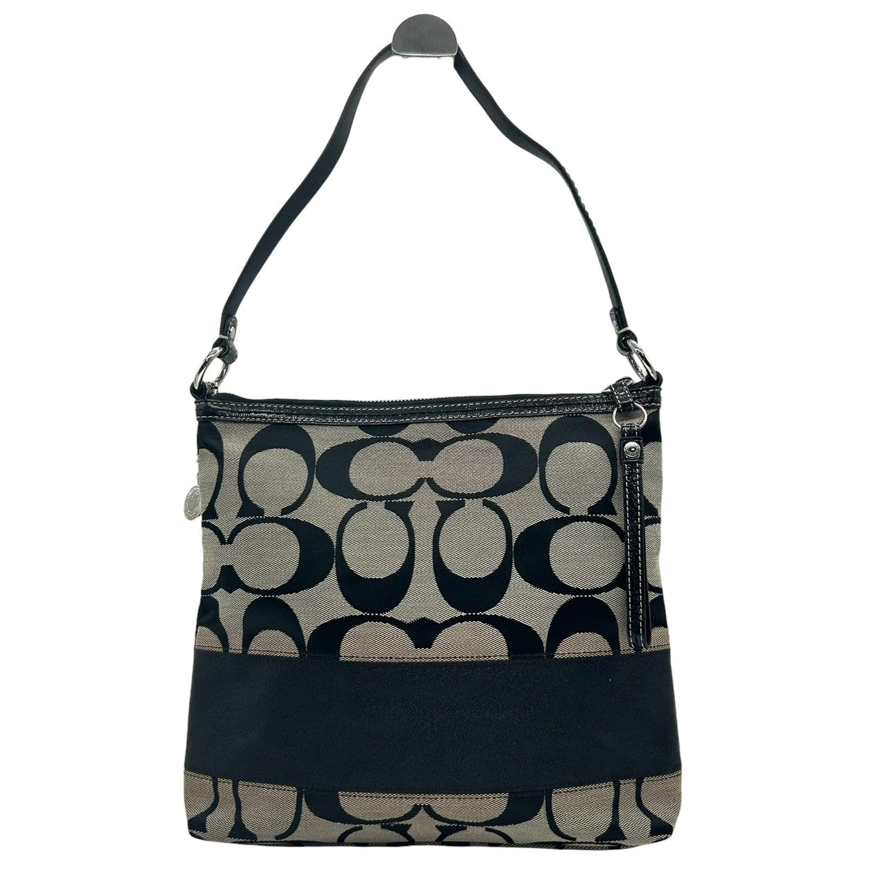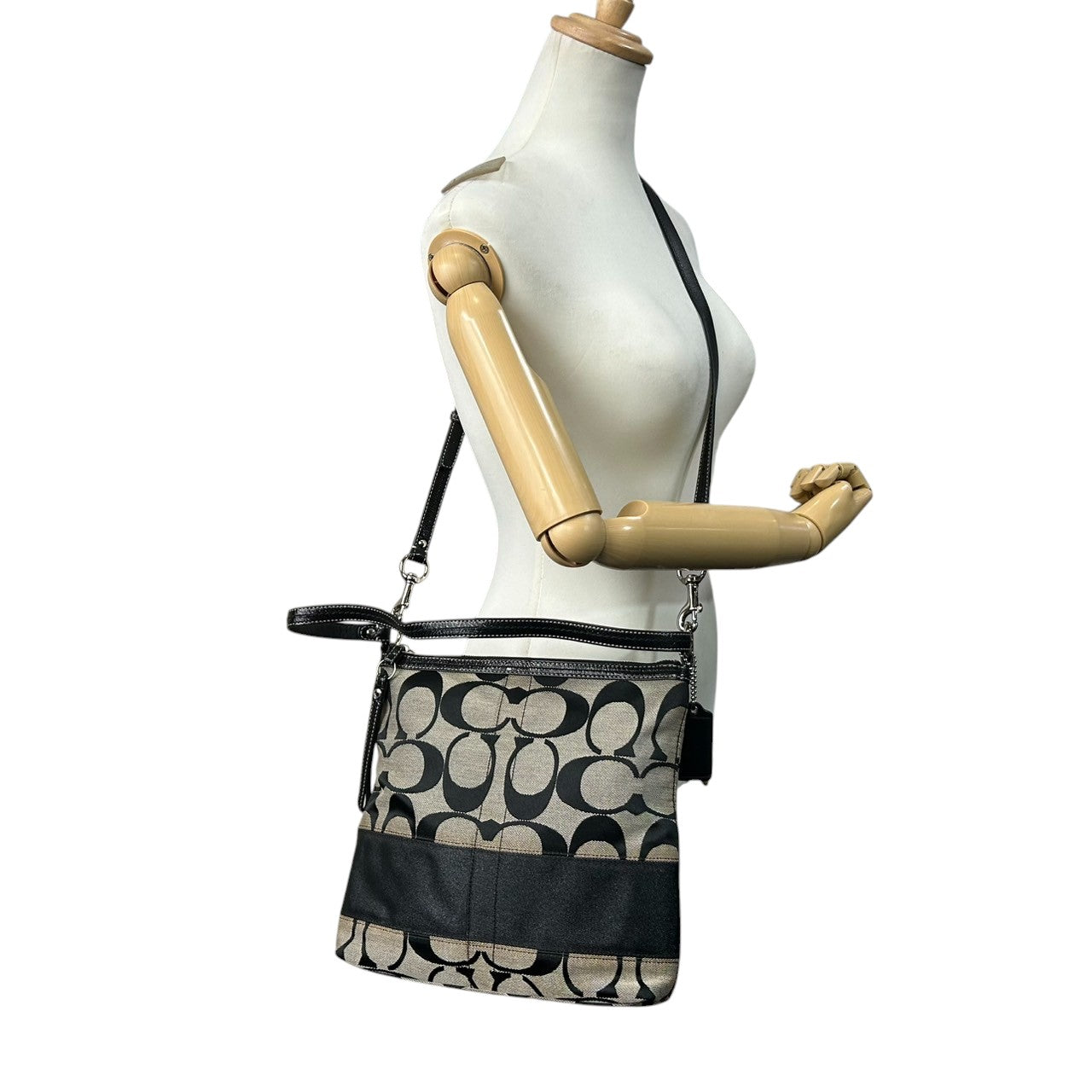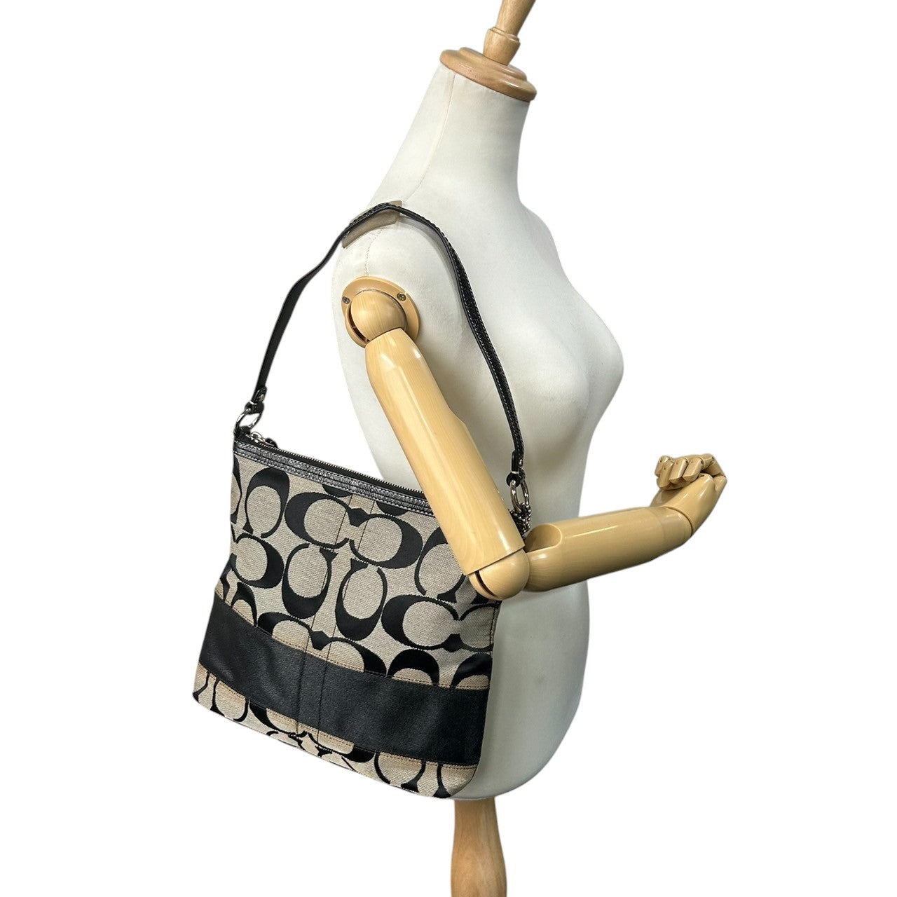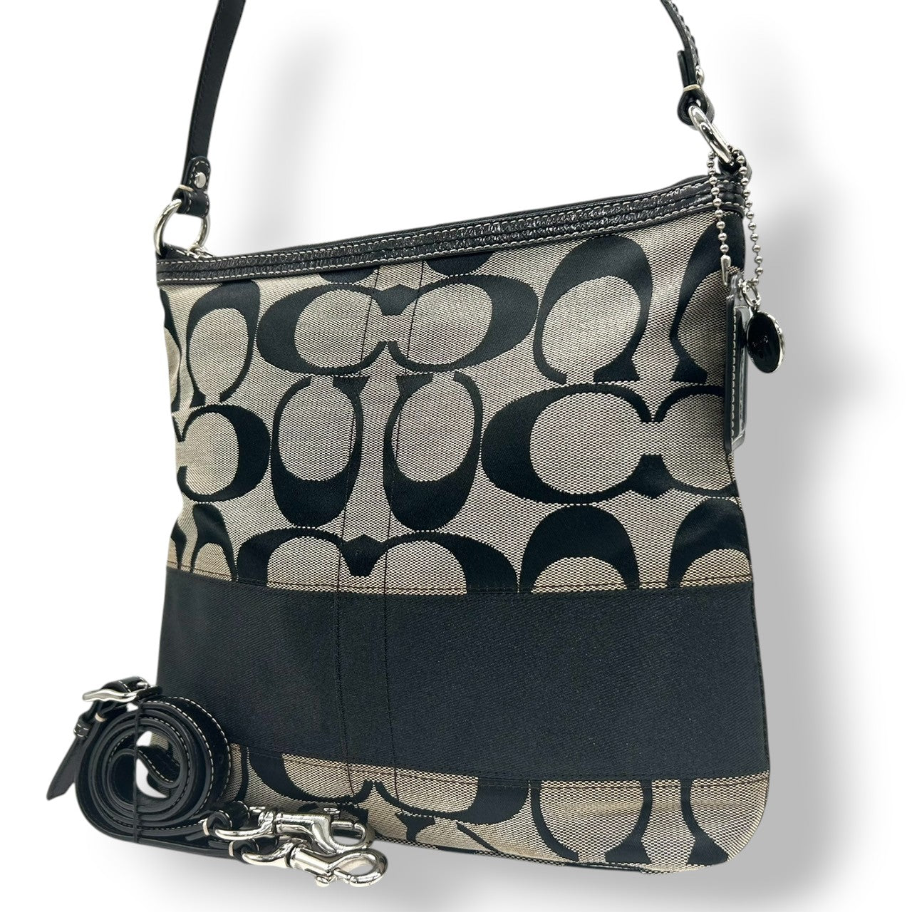 COACH コーチ ショルダーバッグ 2WAY シグネチャー F13674 キャンバス レザー ブラック グレー レディース ワンショルダー 斜め掛け可 エレガント クラシック 定番 人気モデル 通勤 通学 デイリーユース クリーニング済み s78