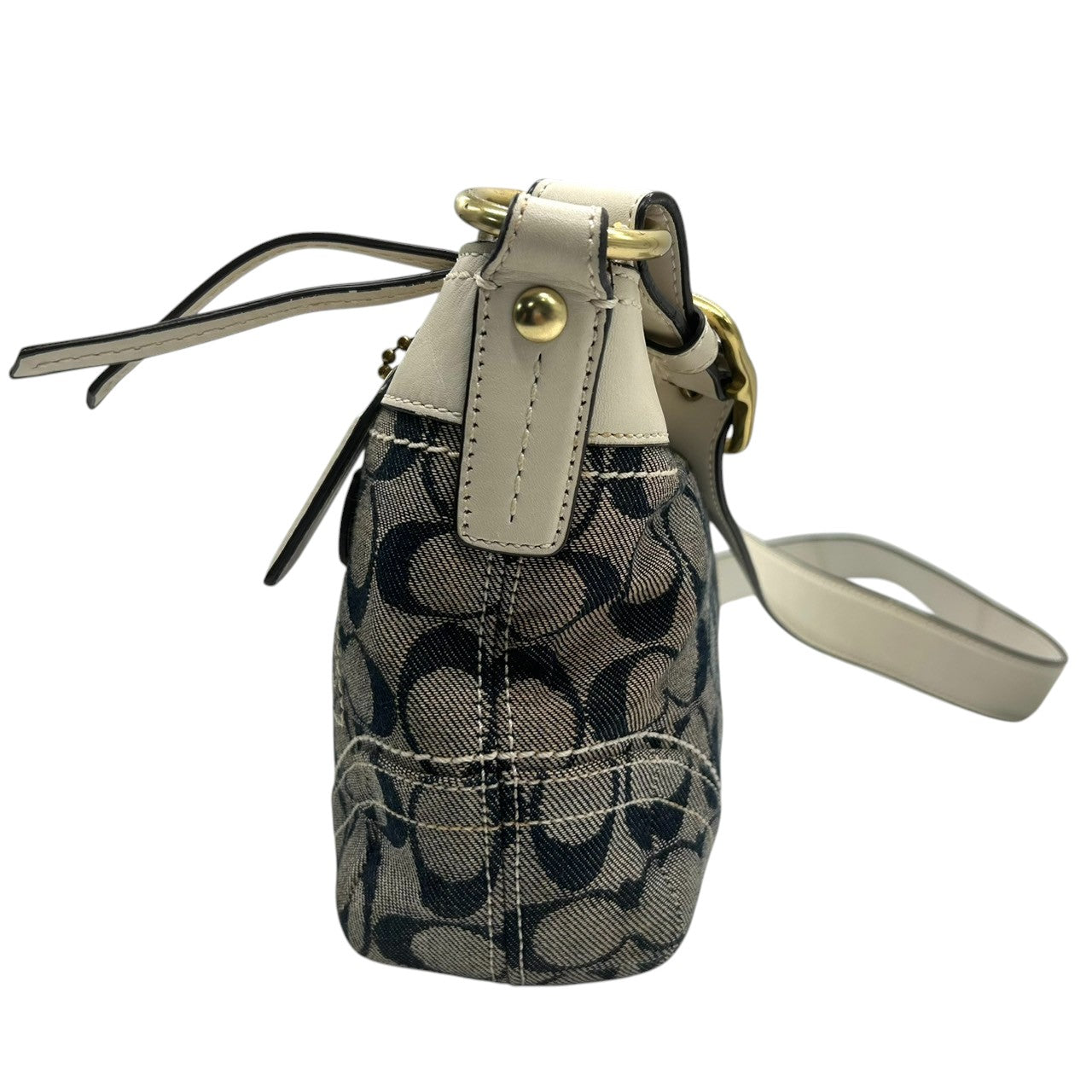 COACH コーチ ショルダーバッグ シグネチャー F10561 キャンバス レザー ネイビー ホワイト レディース ワンショルダー 斜め掛け可 自立可 クラシック エレガント コンパクト デイリーユース 人気 クリーニング済み s78