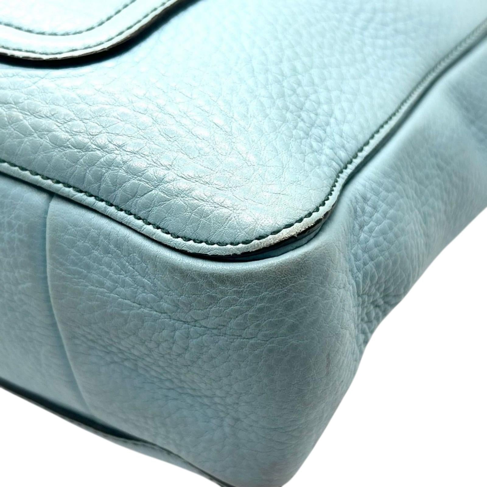 コーチ COACH トートバッグ 8A44 ハンプトン レザー 本革 ライトブルー ブラウン 肩掛け A4収納可 クラシック ビジネス カジュアル 通勤 通学 レディース クリーニング済み E5