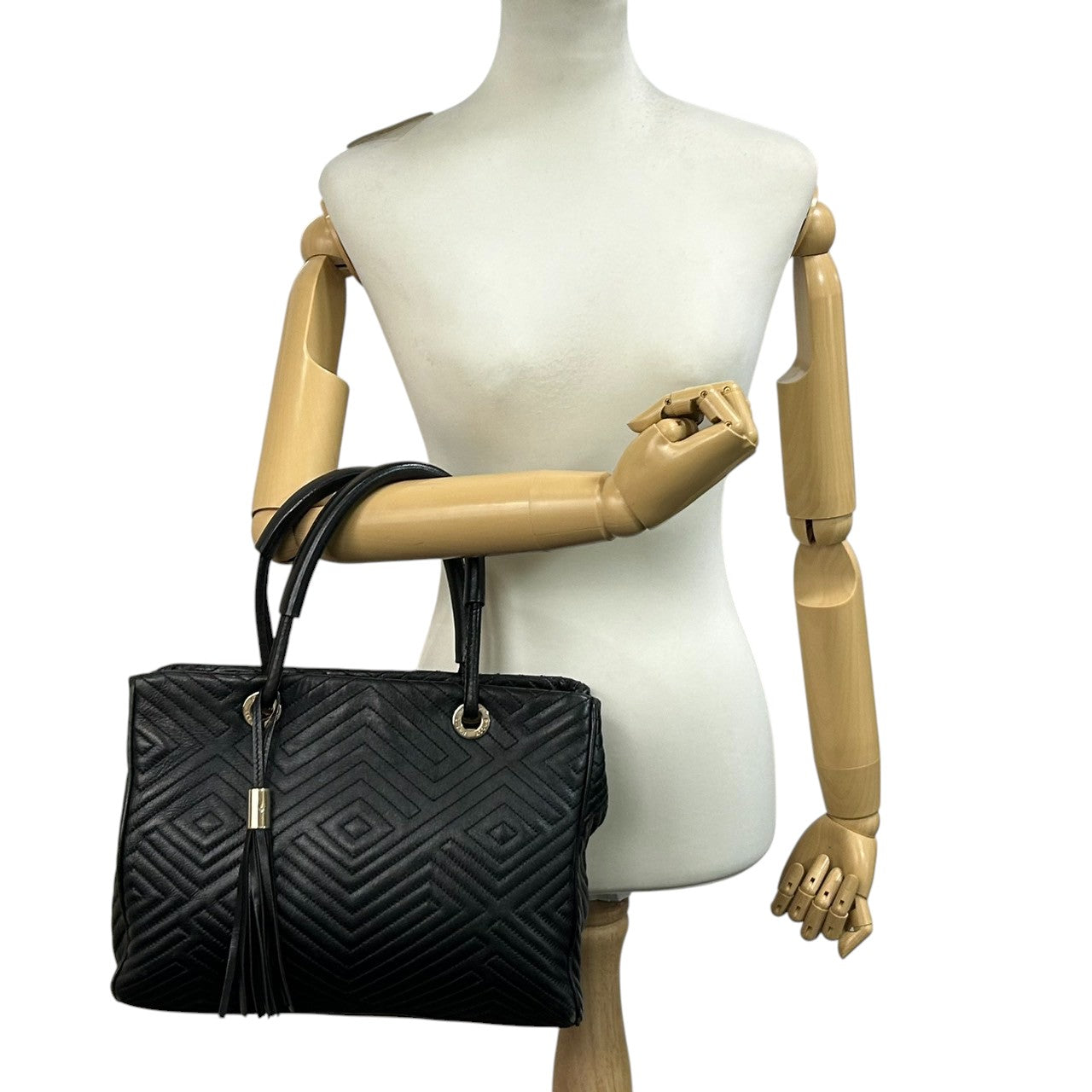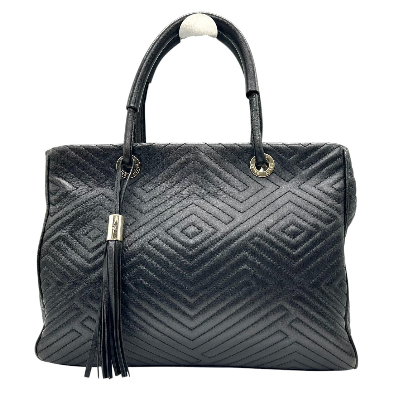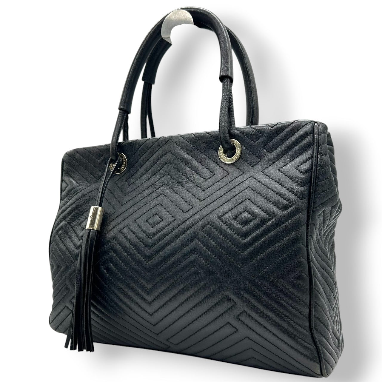 バリー BALLY ハンドバッグ トートバッグ キルティング 幾何学模様 レザー 本革 ブラック 黒 ロゴ金具 タッセルチャーム付き レディース エレガント クラシック フォーマル ビジネス 通勤 自立可 クリーニング済み s53