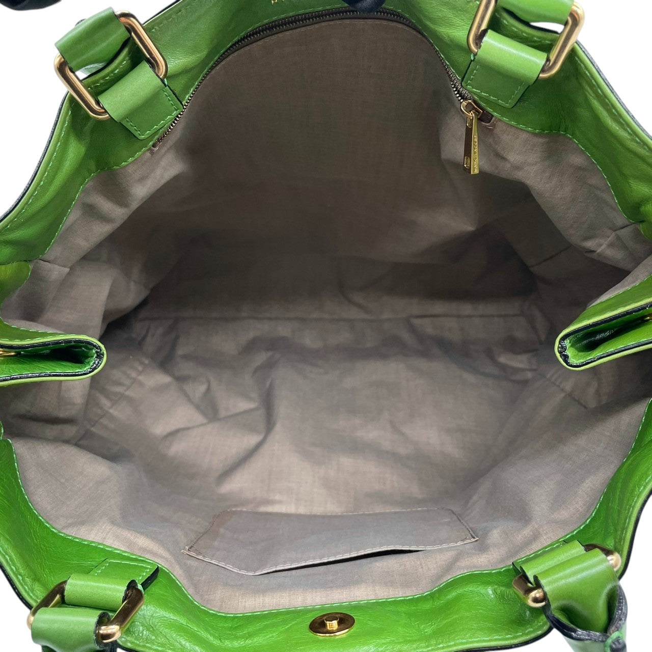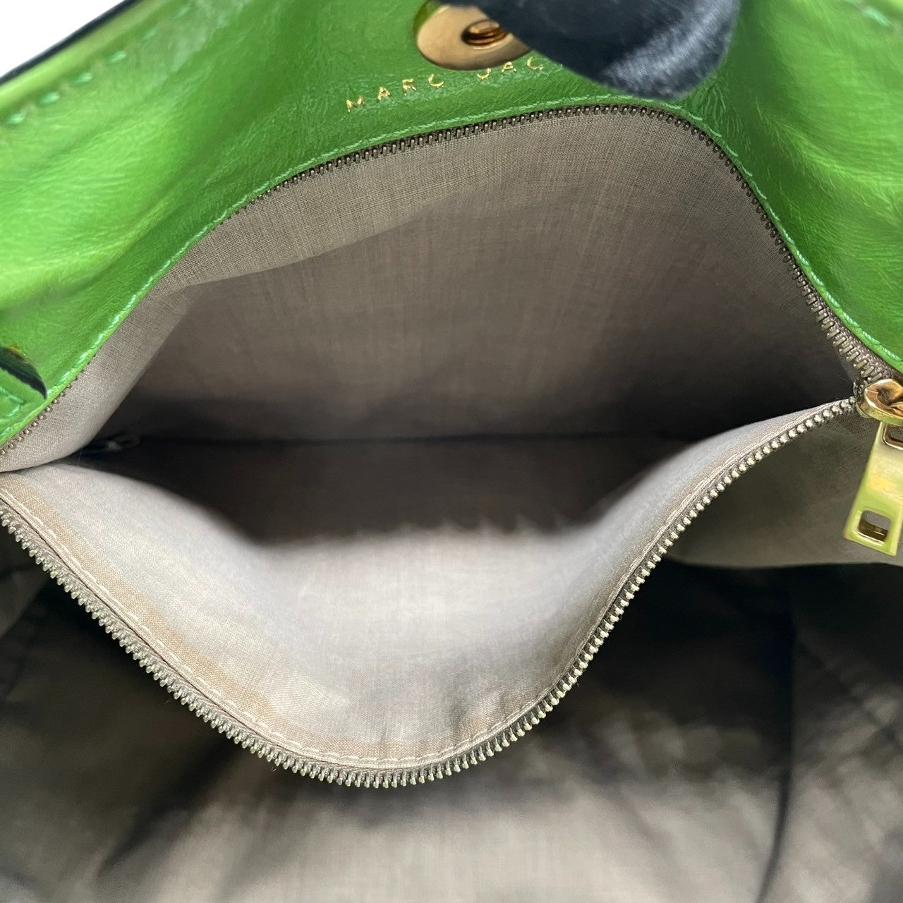 MARC JACOBS マークジェイコブス トートバッグ ハンドバッグ レザー グリーン レディース メンズ ユニセックス 大容量 A4収納可 肩掛け可 ワンショルダー ビジネス 通勤 通学 旅行 ビビッドカラー デザイナーズ クリーニング済み s28