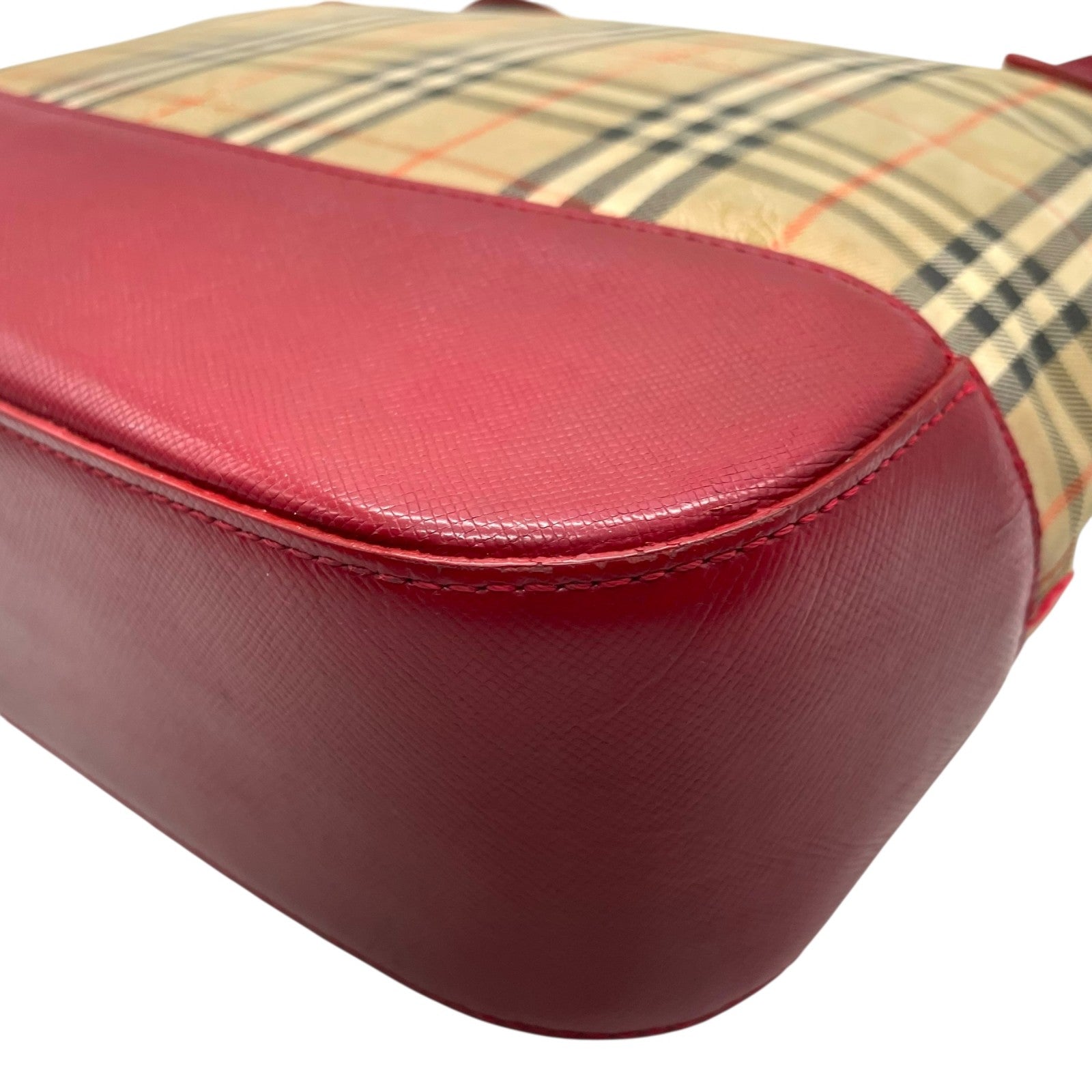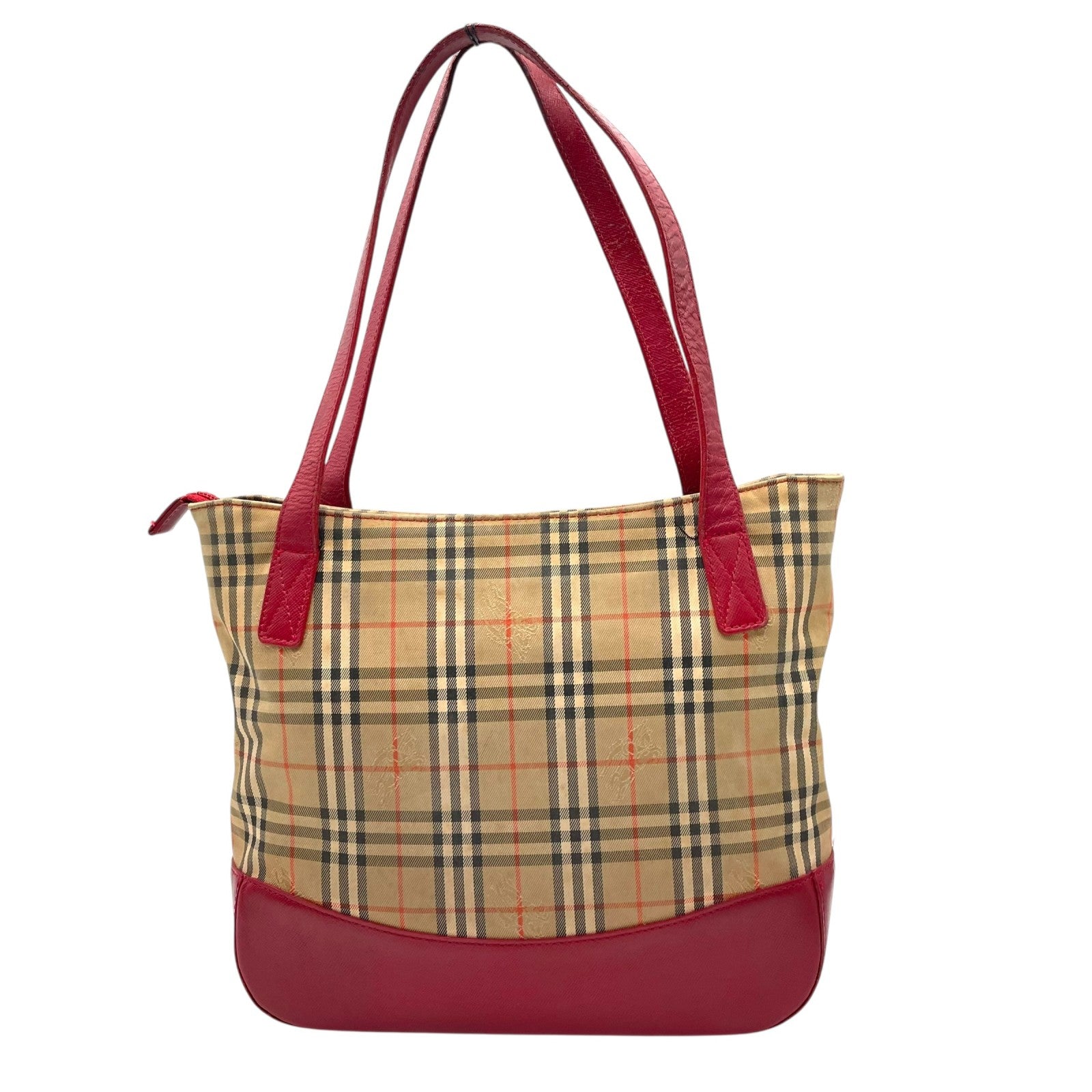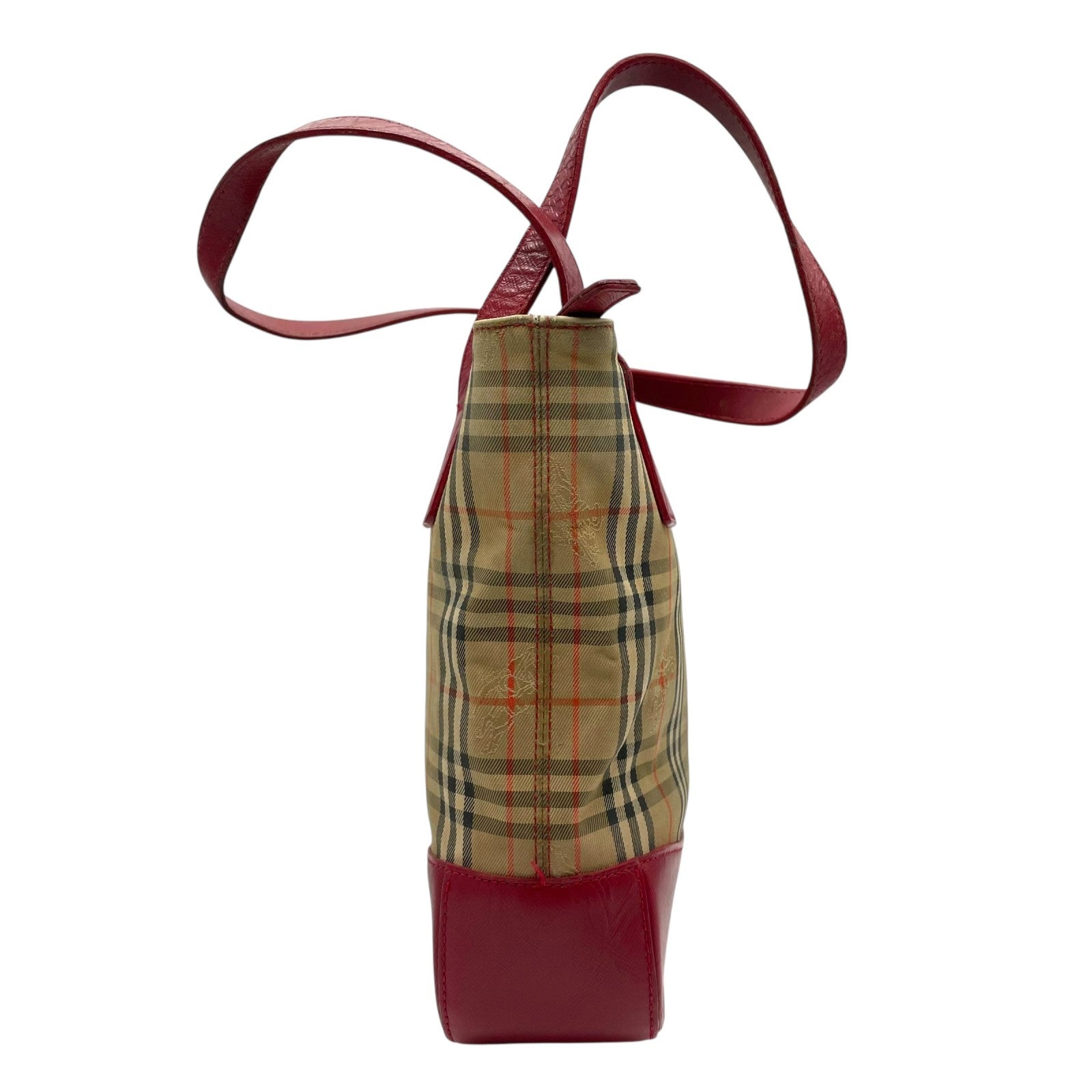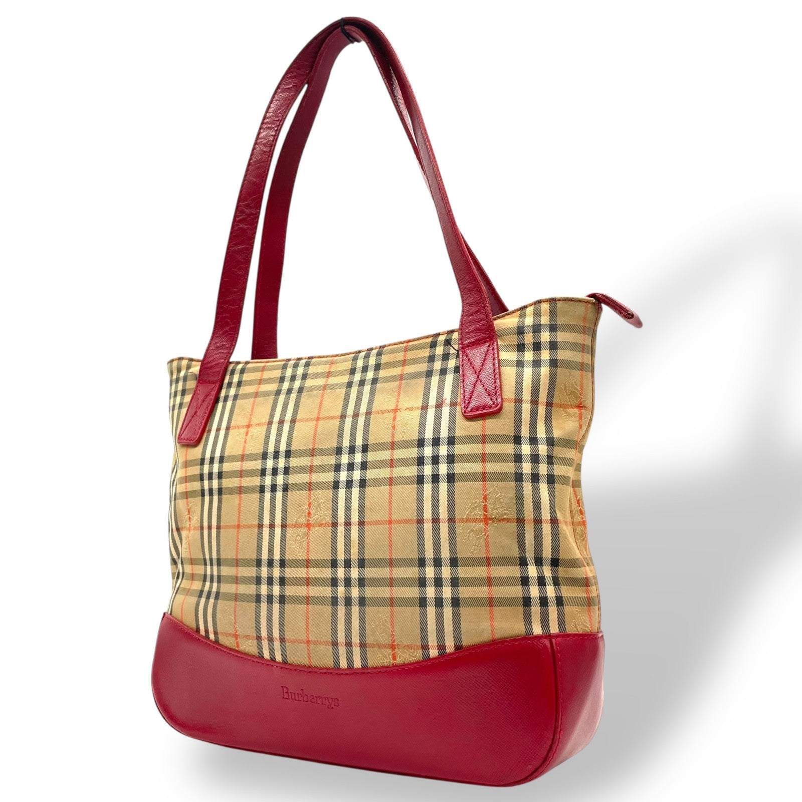 バーバリーズ Burberrys ヴィンテージ トートバッグ ハンドバッグ ノバチェック 赤 レッド レザーロングハンドル D4