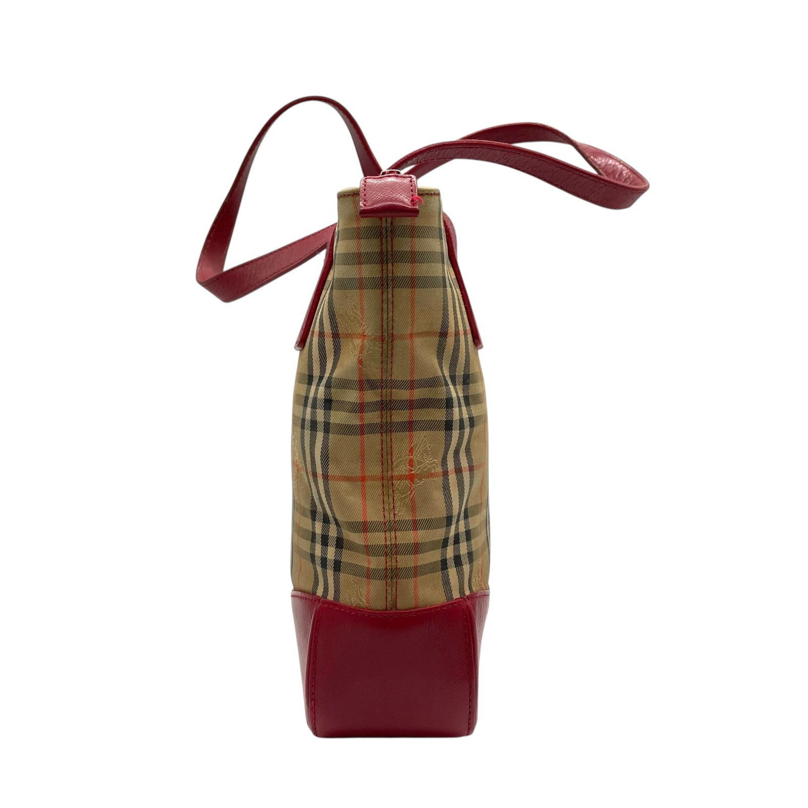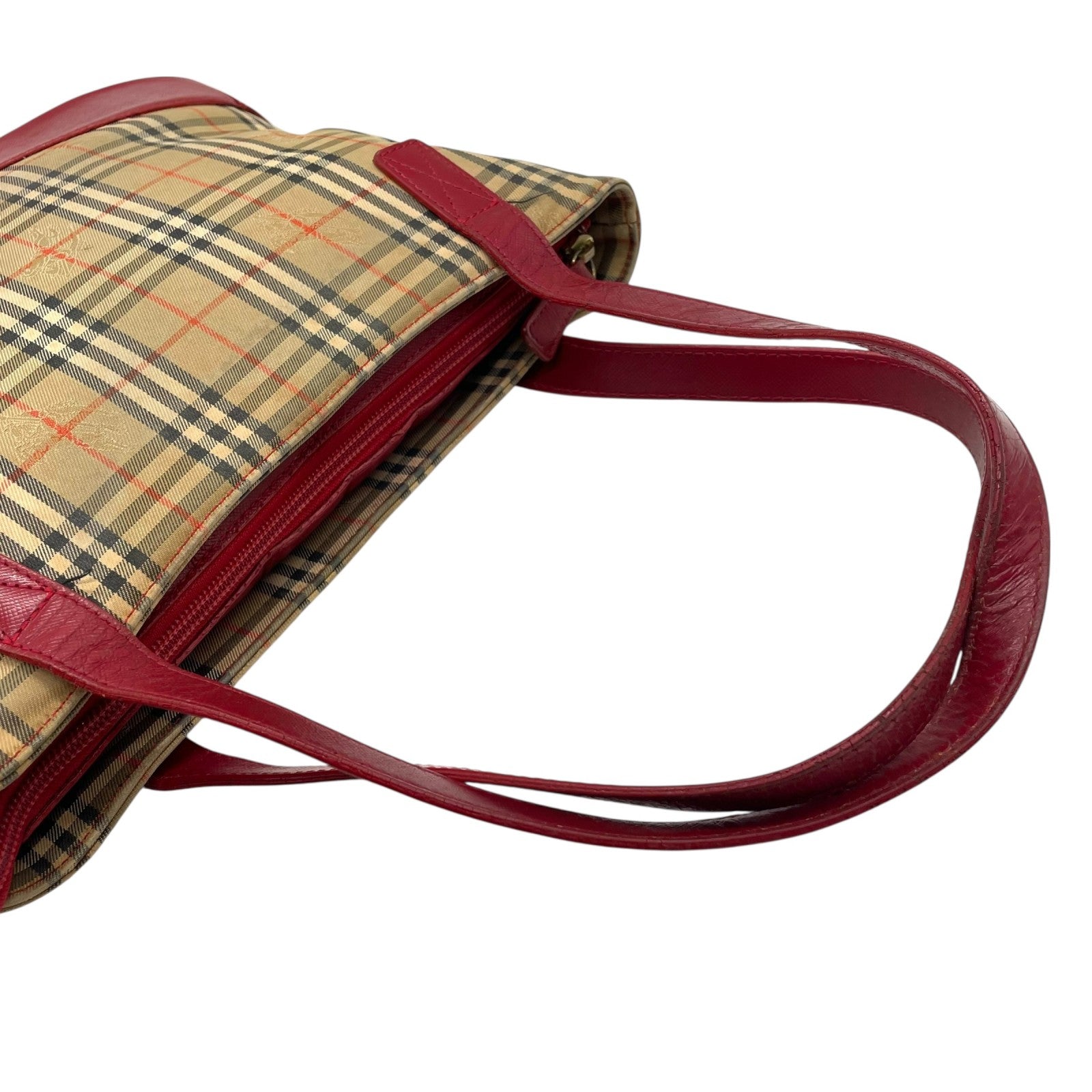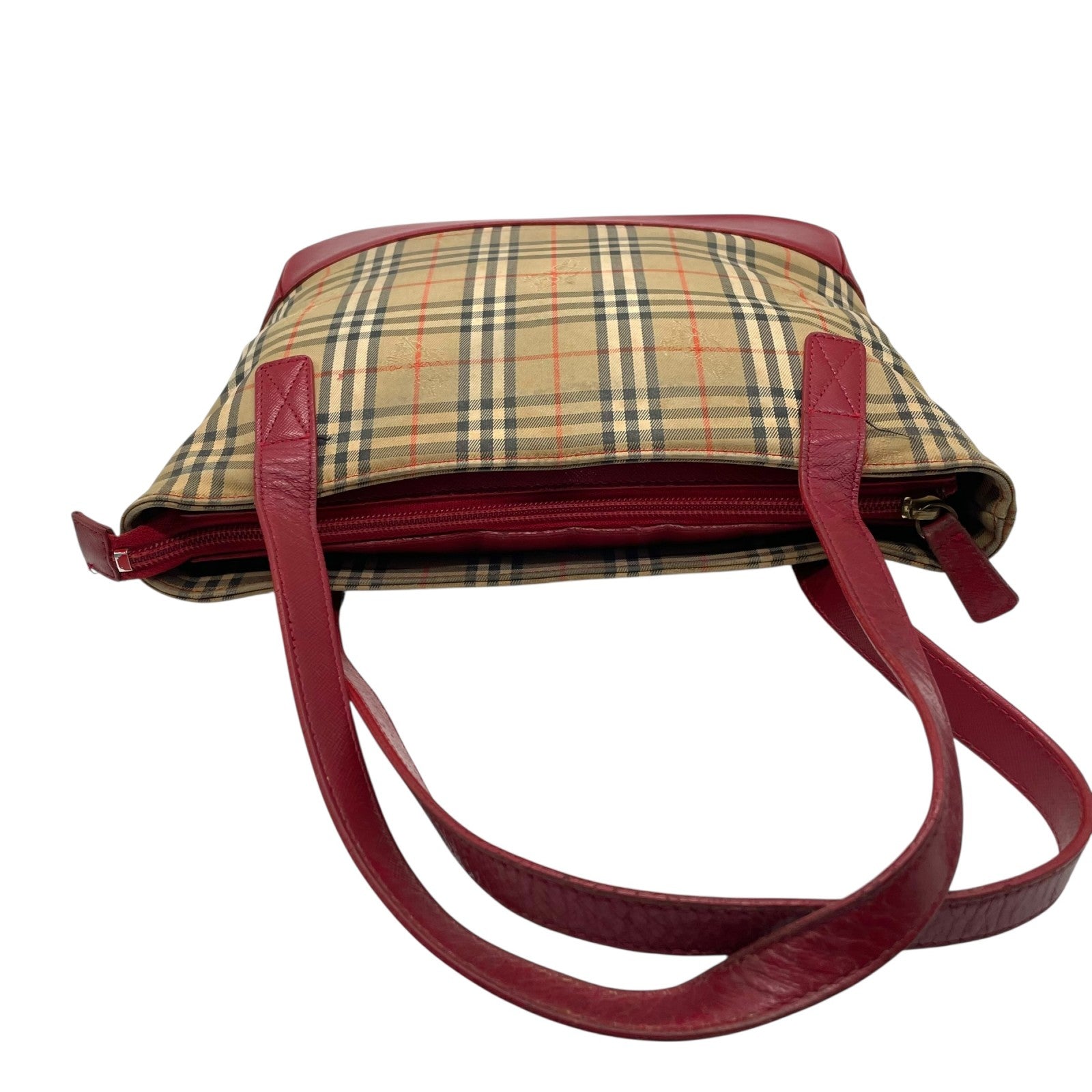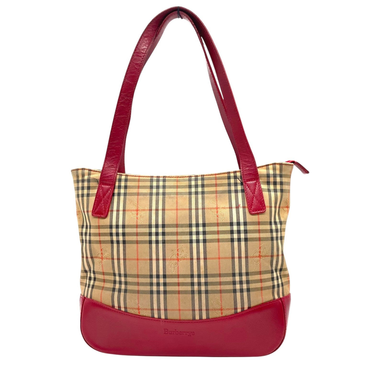 バーバリーズ Burberrys ヴィンテージ トートバッグ ハンドバッグ ノバチェック 赤 レッド レザーロングハンドル D4
