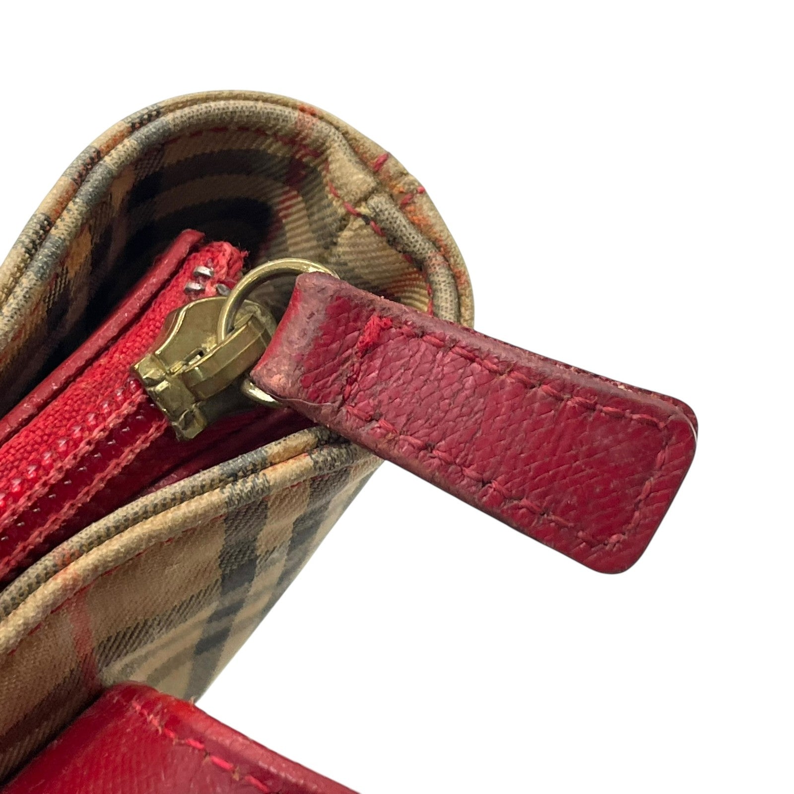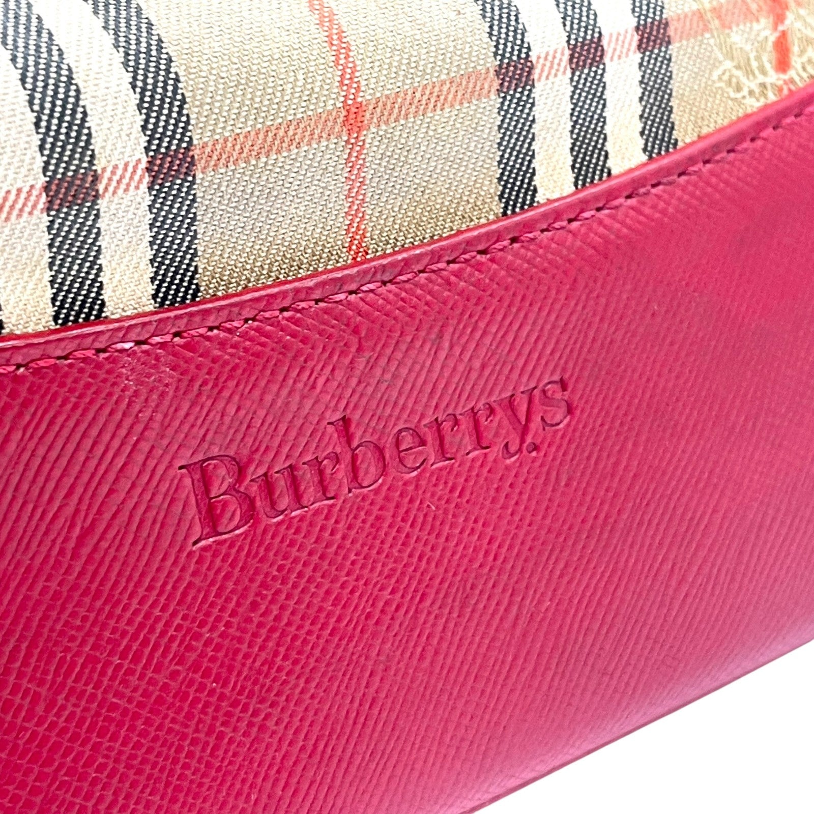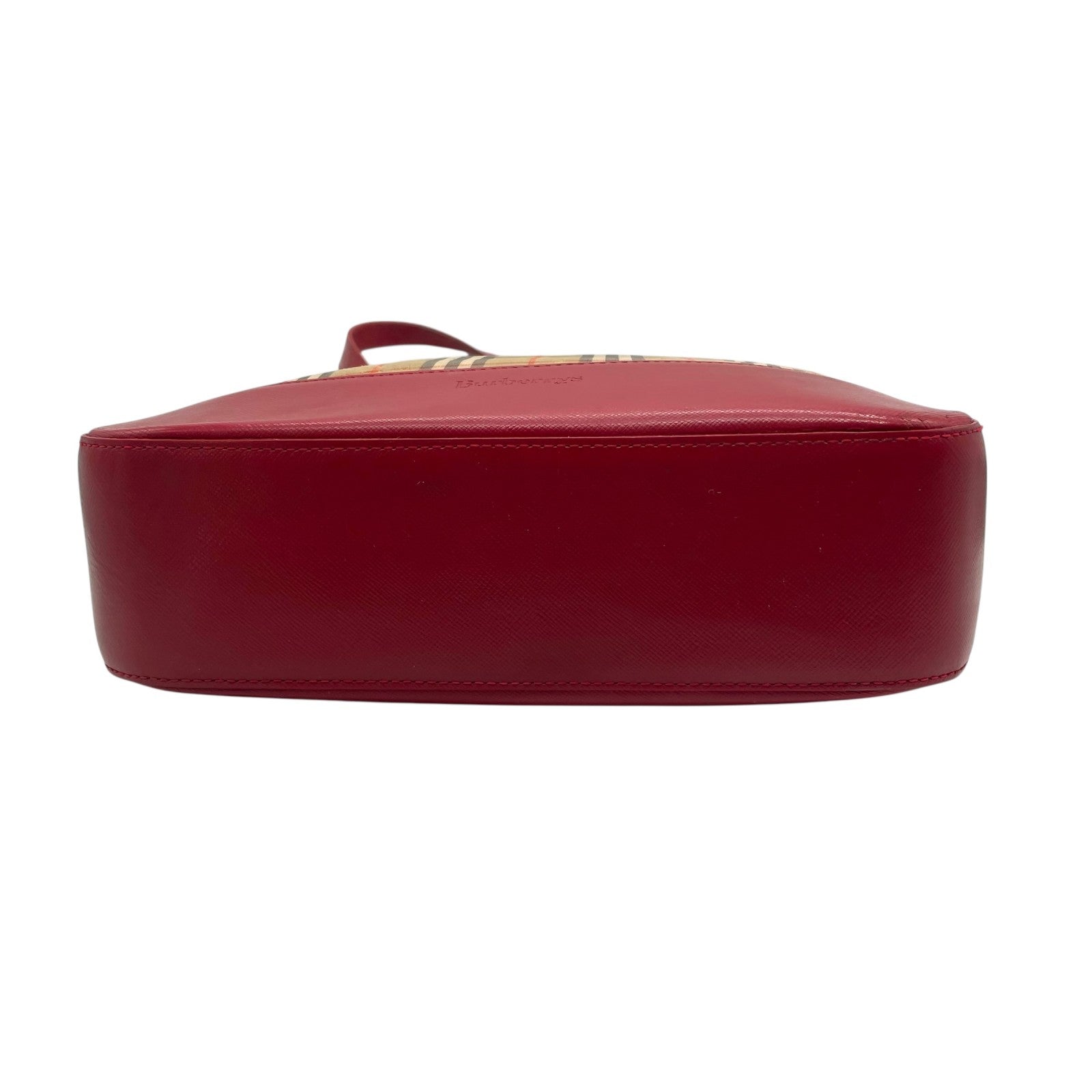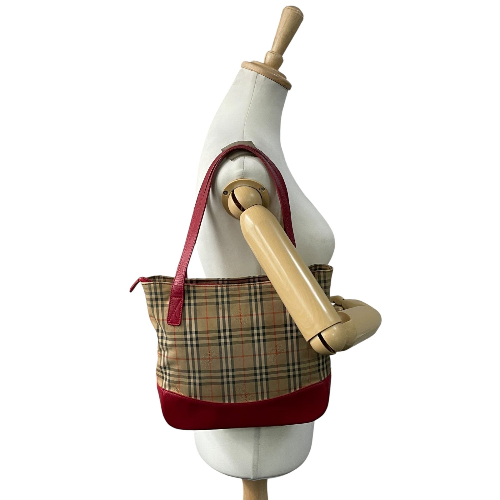 バーバリーズ Burberrys ヴィンテージ トートバッグ ハンドバッグ ノバチェック 赤 レッド レザーロングハンドル D4