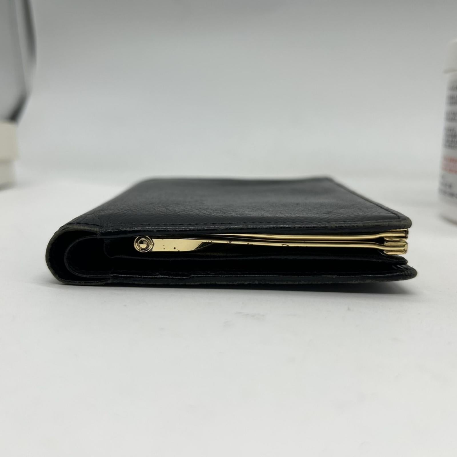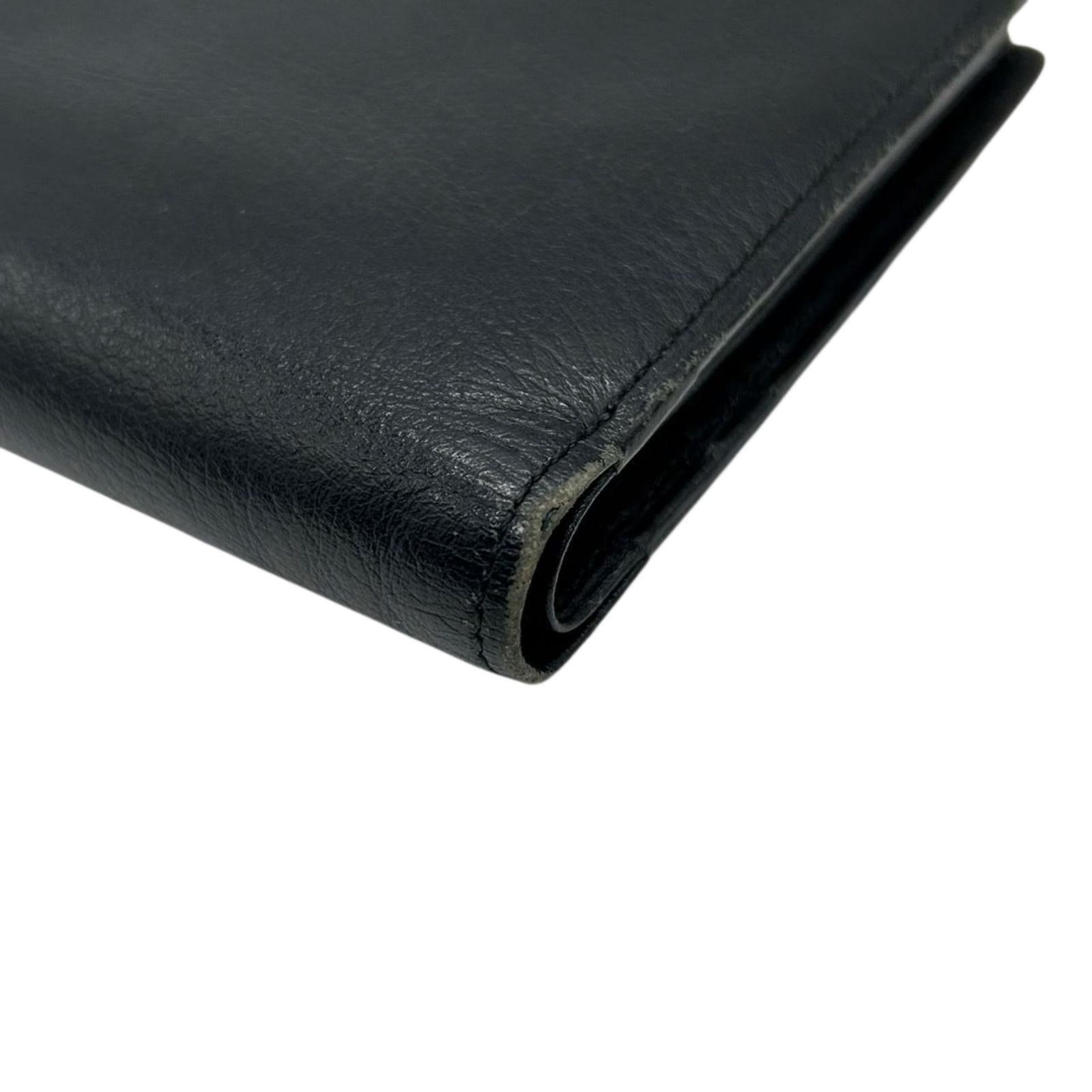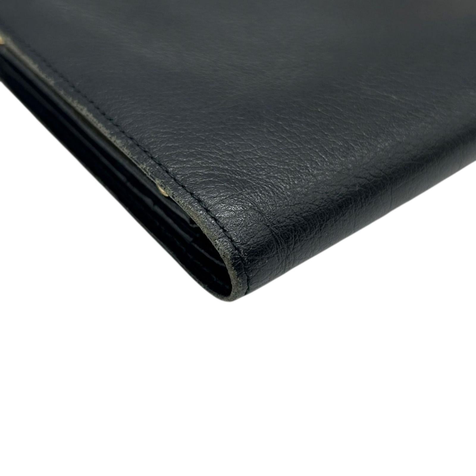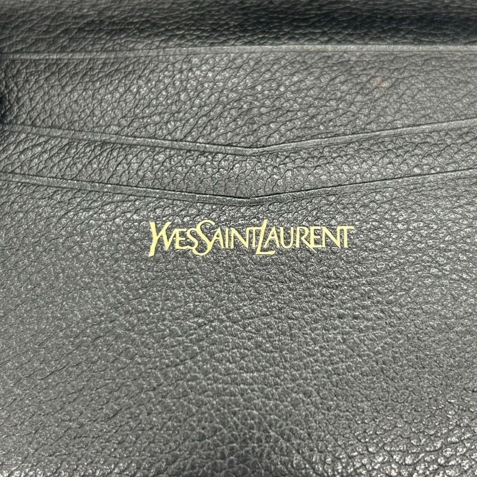 イヴ・サンローラン Yves Saint Laurent 財布 二つ折り YSLロゴ Vステッチ コンパクトウォレット 本革 レザー ブラック 黒 クラシック ヴィンテージ メンズ レディース ユニセックス クリーニング済み w5