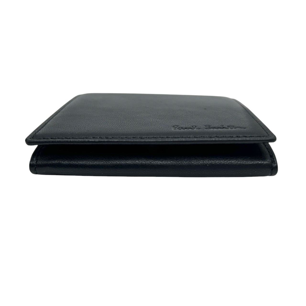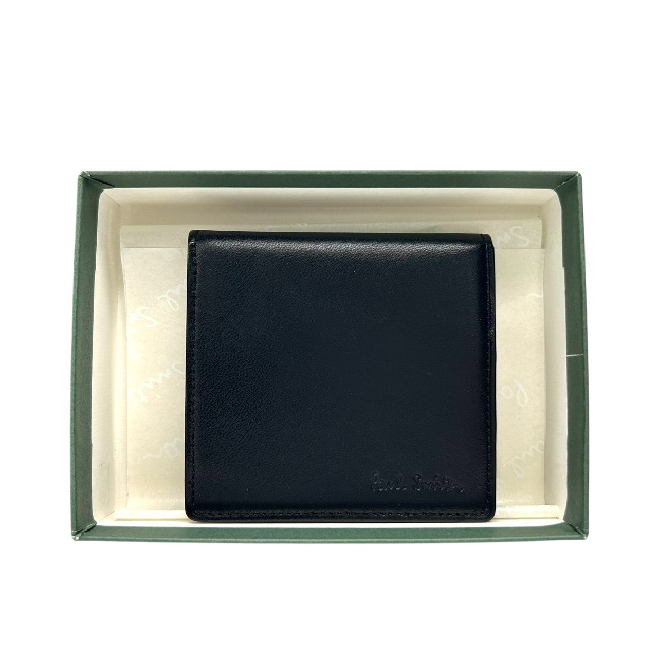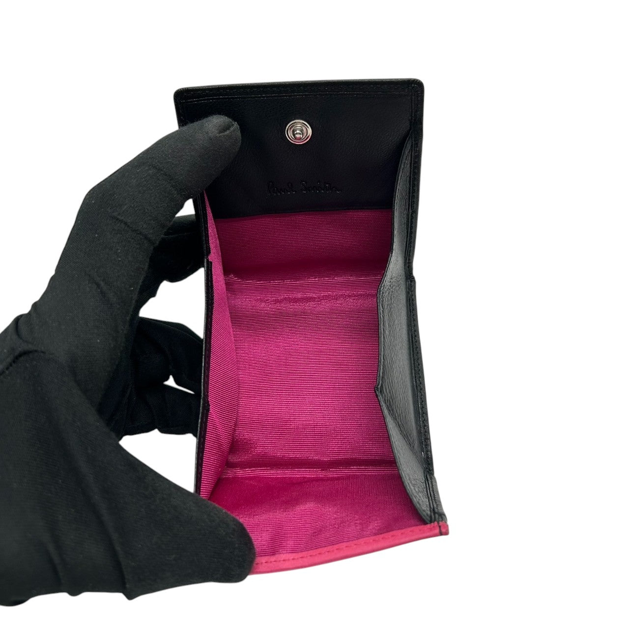 【極美品】ポールスミス Paul Smith コインケース 小銭入れ 財布 コンパクトウォレット レザー 本革 ブラック 黒 内側ピンク バイカラー ミニマルデザイン メンズ レディース ユニセックス ロゴ型押し 箱付き クリーニング済み w5