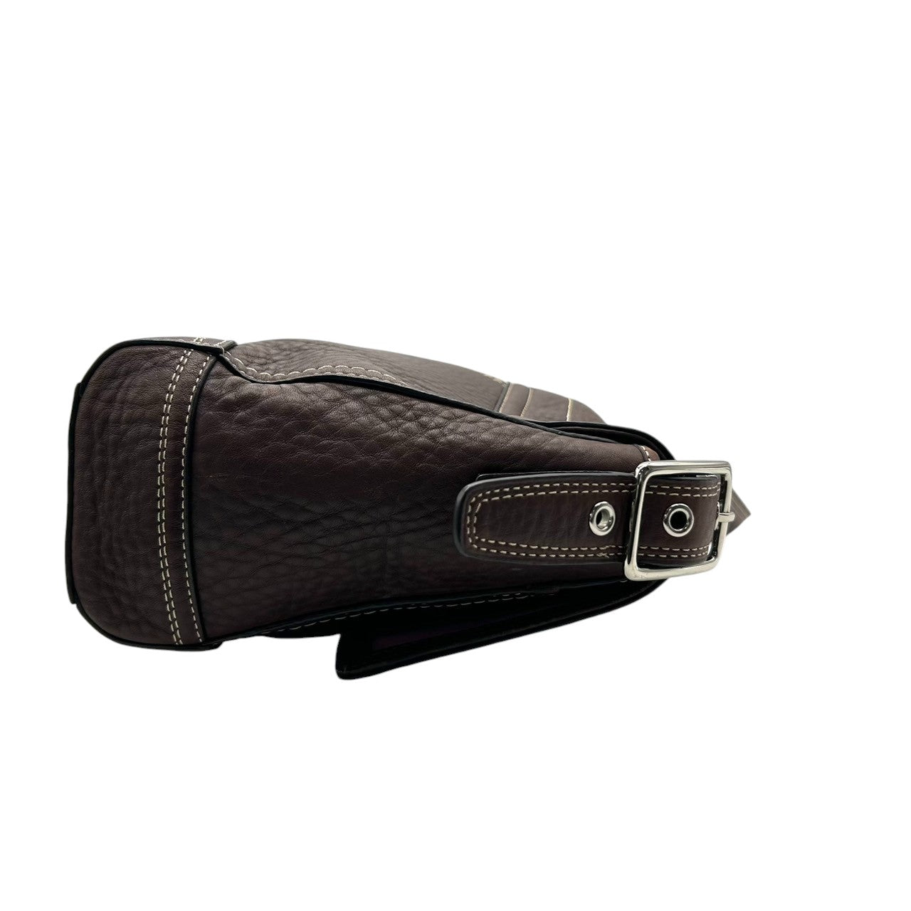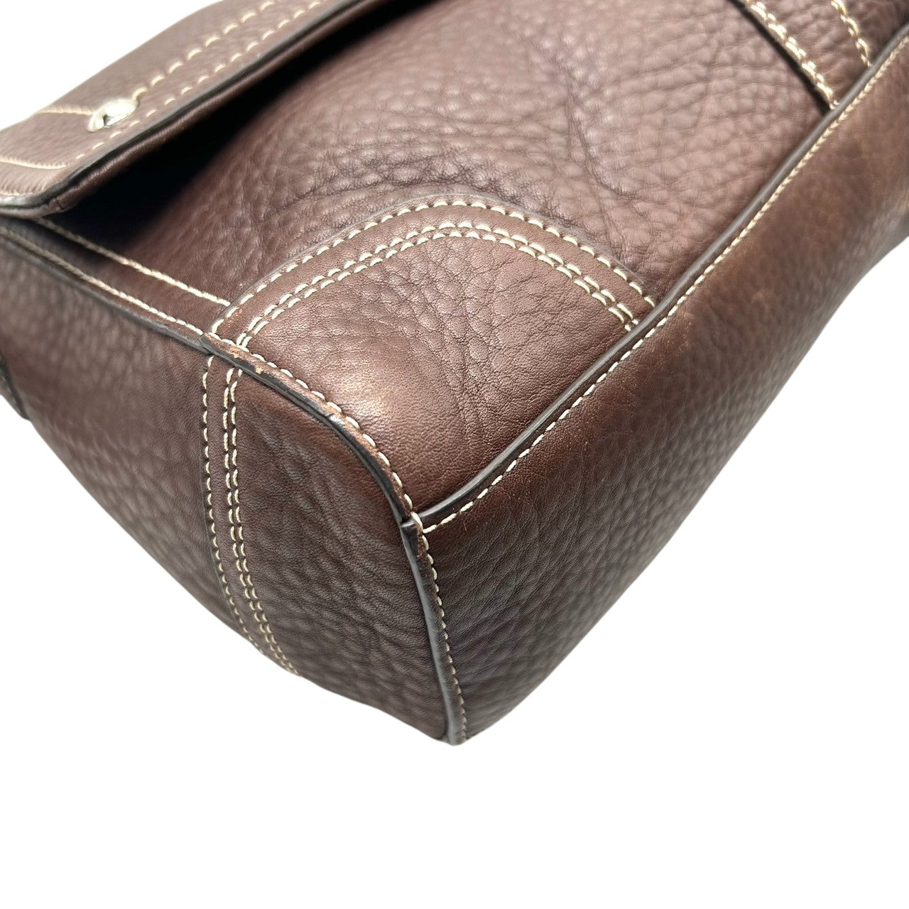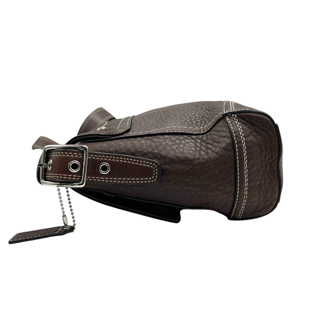 COACH コーチ ショルダーバッグ F13957 斜め掛け可 自立可 レザー 本革 シボ革 ブラウン ターンロック フラップ式 白ステッチ シルバー金具 レディース エレガント クラシック カジュアル 通勤 通学 Y2K 00s s53