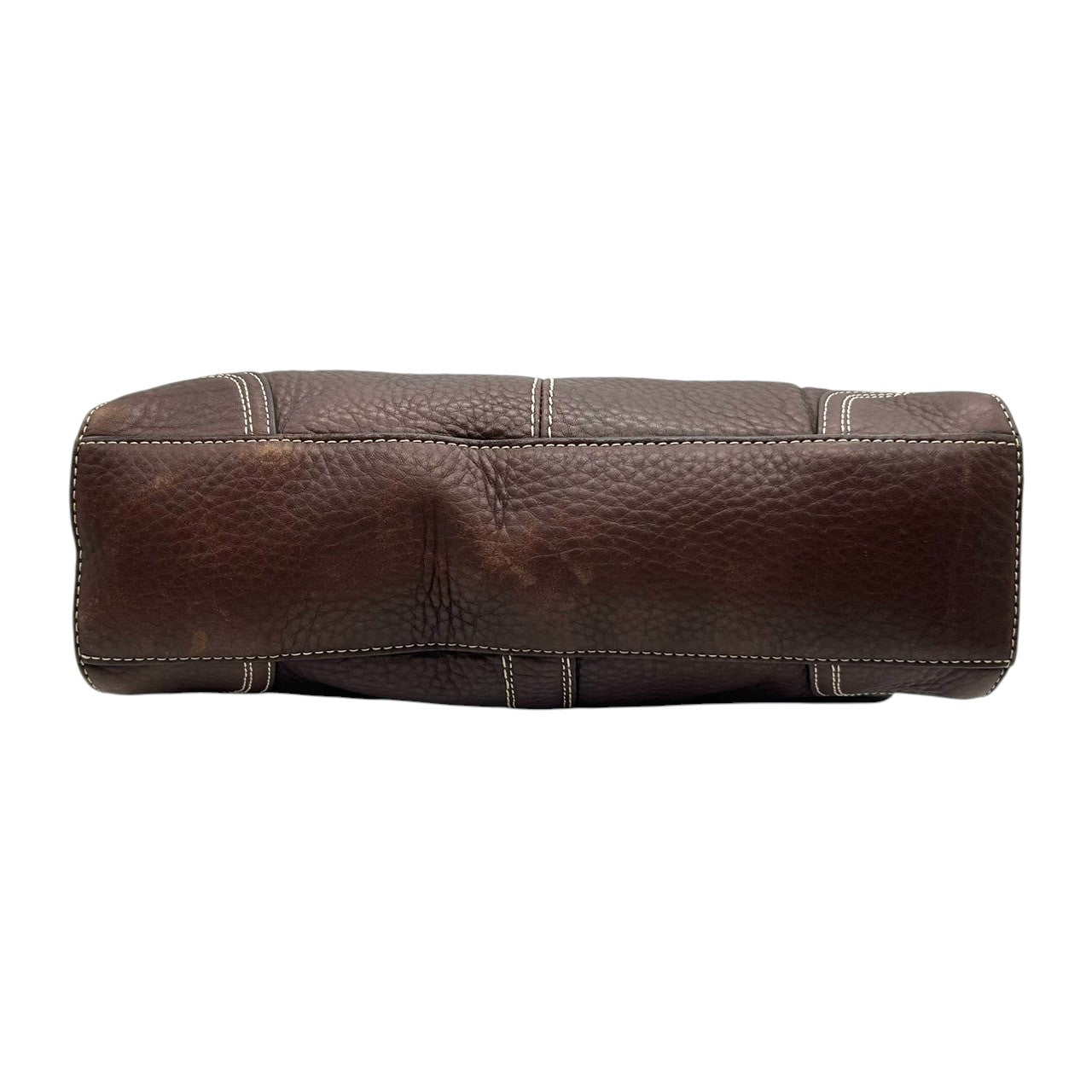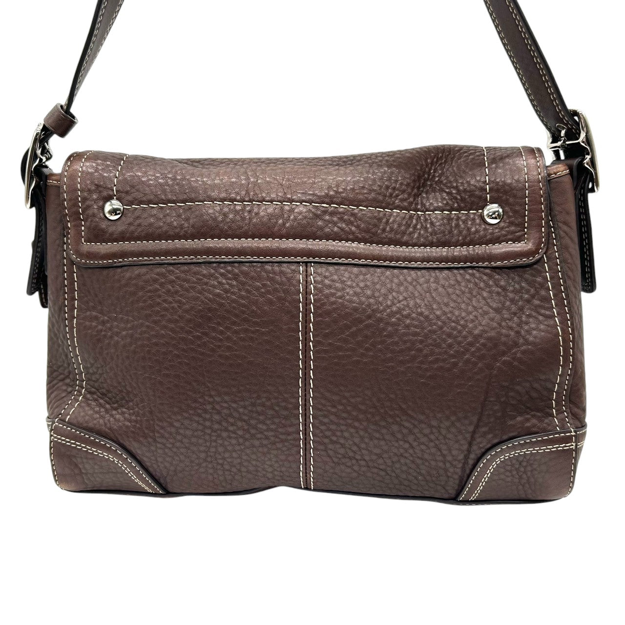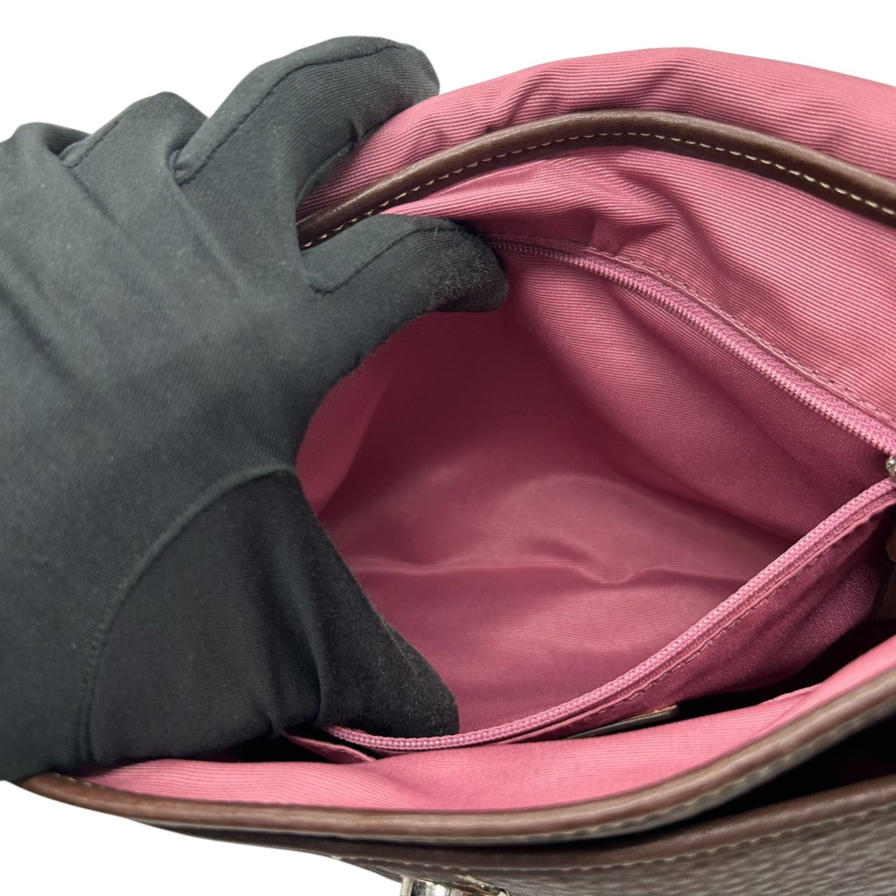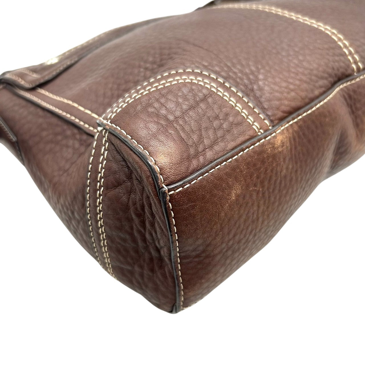 COACH コーチ ショルダーバッグ F13957 斜め掛け可 自立可 レザー 本革 シボ革 ブラウン ターンロック フラップ式 白ステッチ シルバー金具 レディース エレガント クラシック カジュアル 通勤 通学 Y2K 00s s53