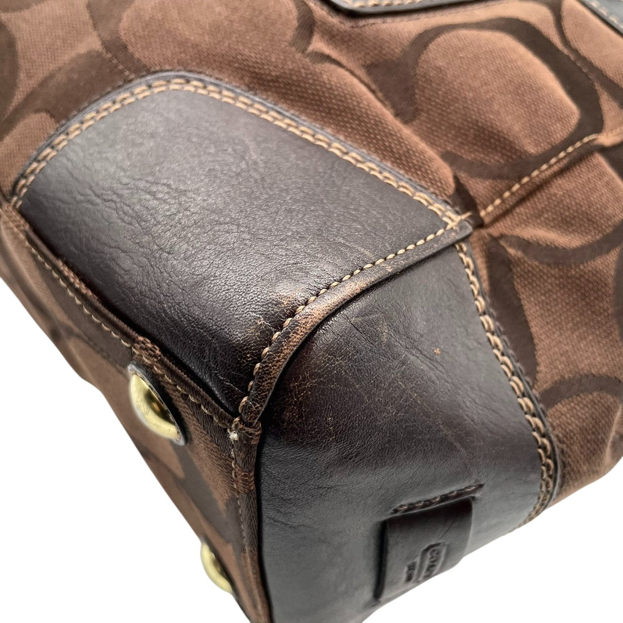 COACH コーチ トートバッグ ハンドバッグ シグネチャー 11072 キャンバス ブラウン レディース ターンロック 肩掛け可 ワンショルダー A4収納可 大容量 通勤 通学 デイリーユース クラシック エレガント 人気モデル クリーニング済み s43