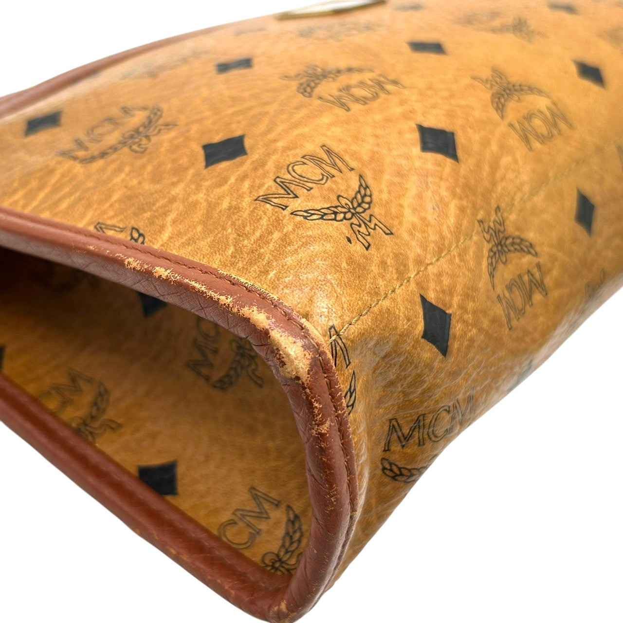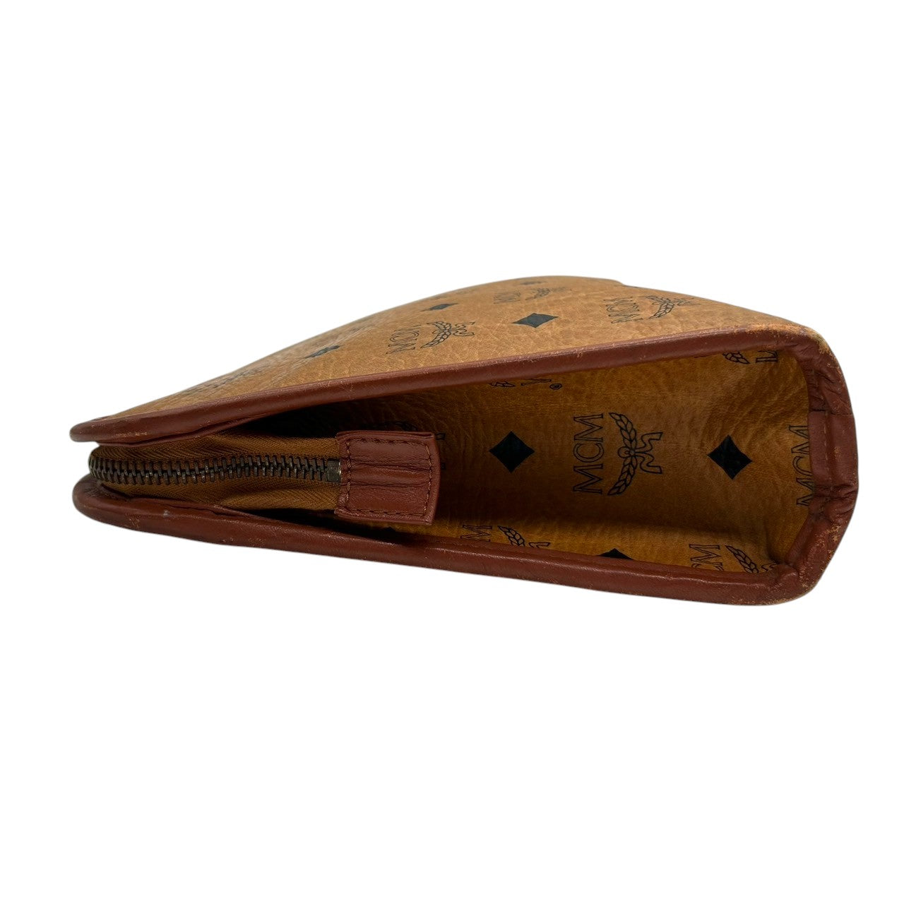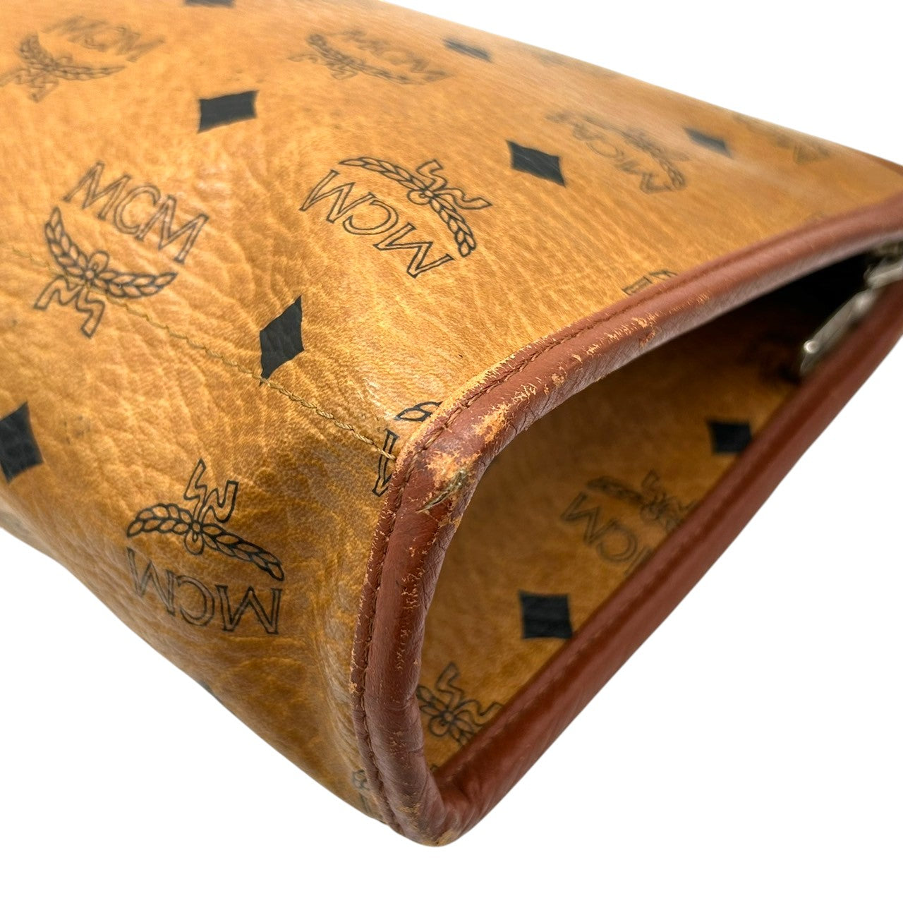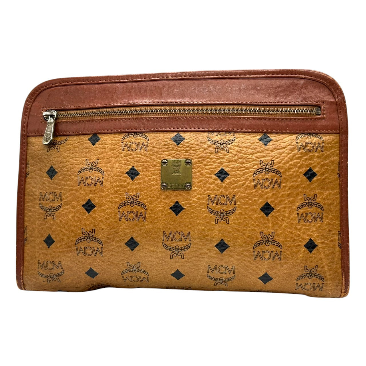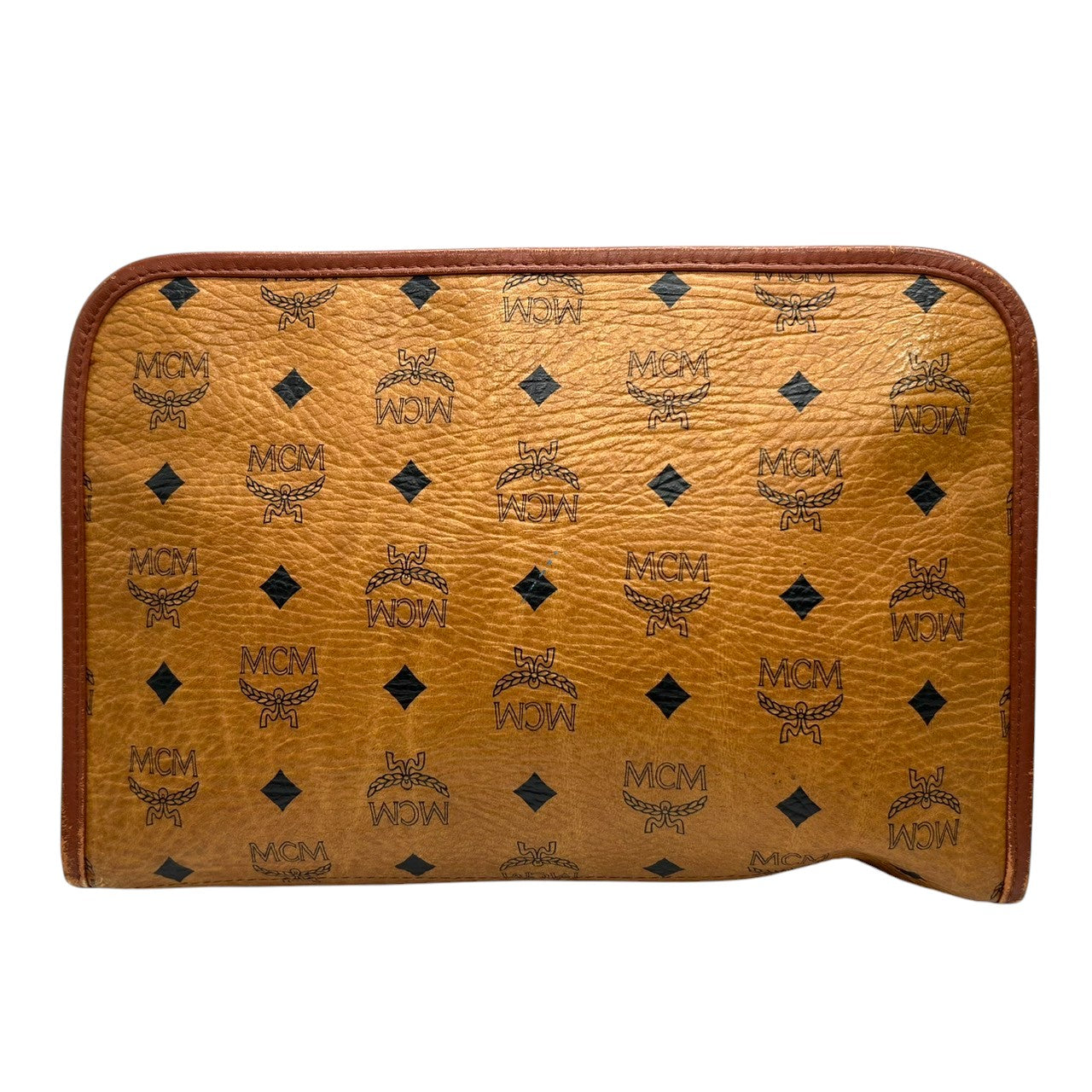 MCM エムシーエム クラッチバッグ セカンドバッグ ヴィセトス柄 ロゴグラム PVC レザー コニャック ブラウン 茶 ヴィンテージ メンズ レディース ユニセックス 定番 人気モデル プレートロゴ 男女兼用 クリーニング済み s29