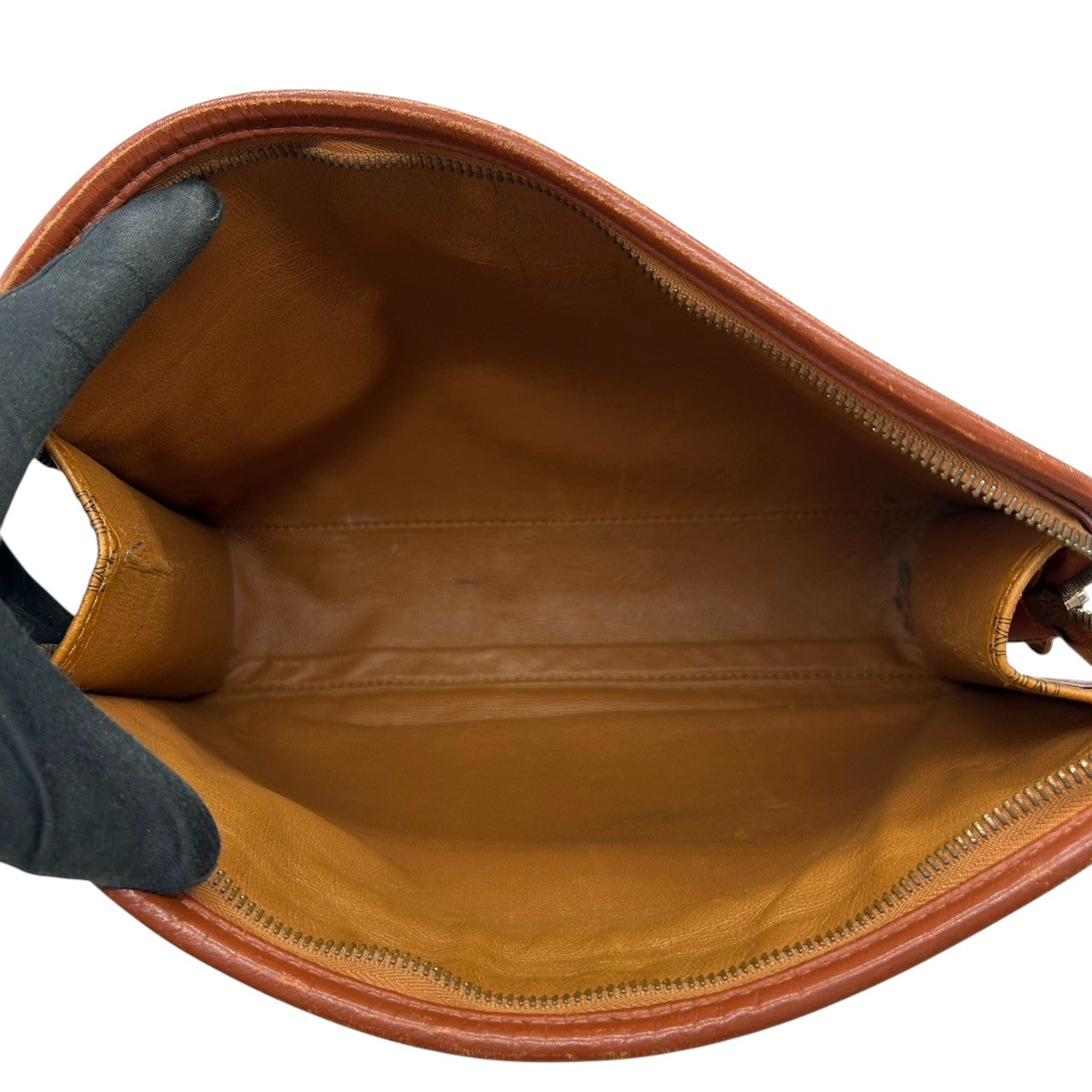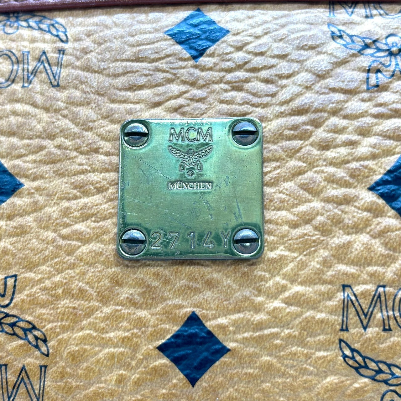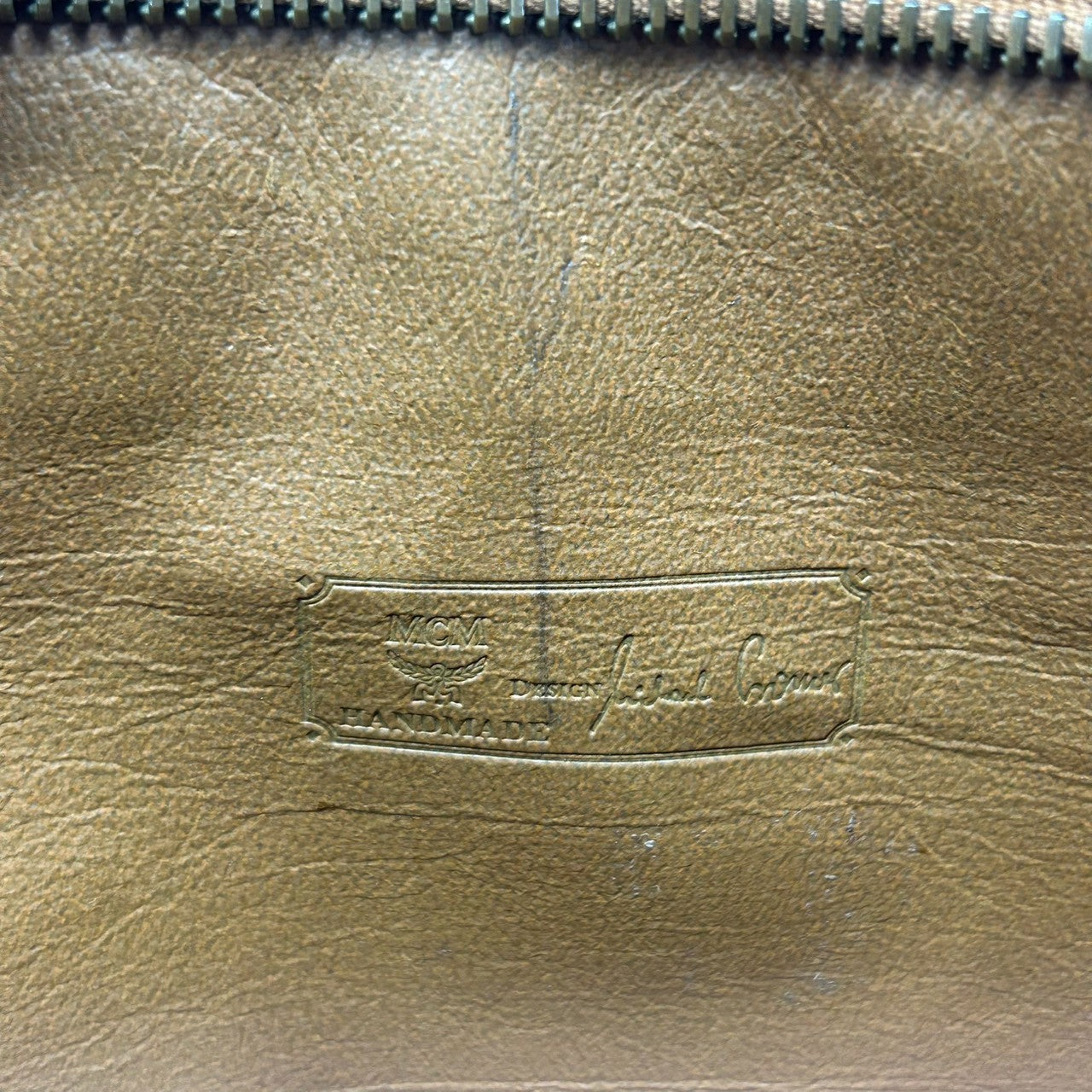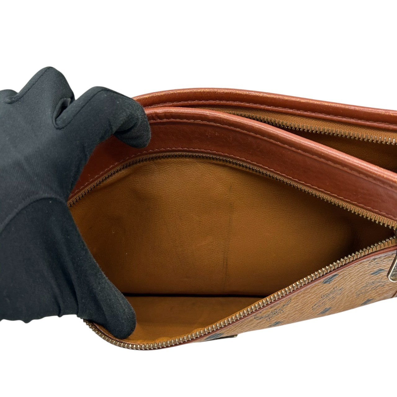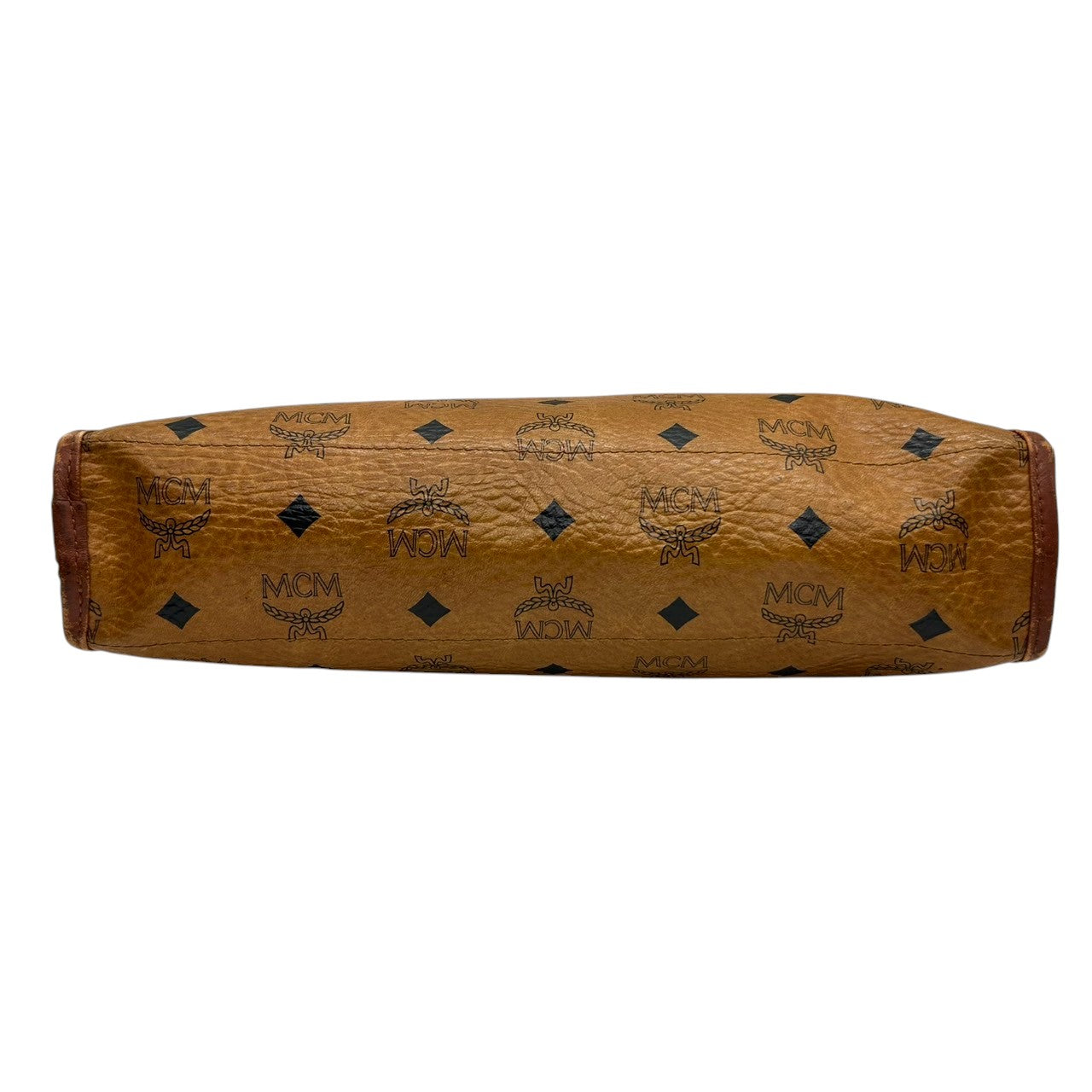 MCM エムシーエム クラッチバッグ セカンドバッグ ヴィセトス柄 ロゴグラム PVC レザー コニャック ブラウン 茶 ヴィンテージ メンズ レディース ユニセックス 定番 人気モデル プレートロゴ 男女兼用 クリーニング済み s29