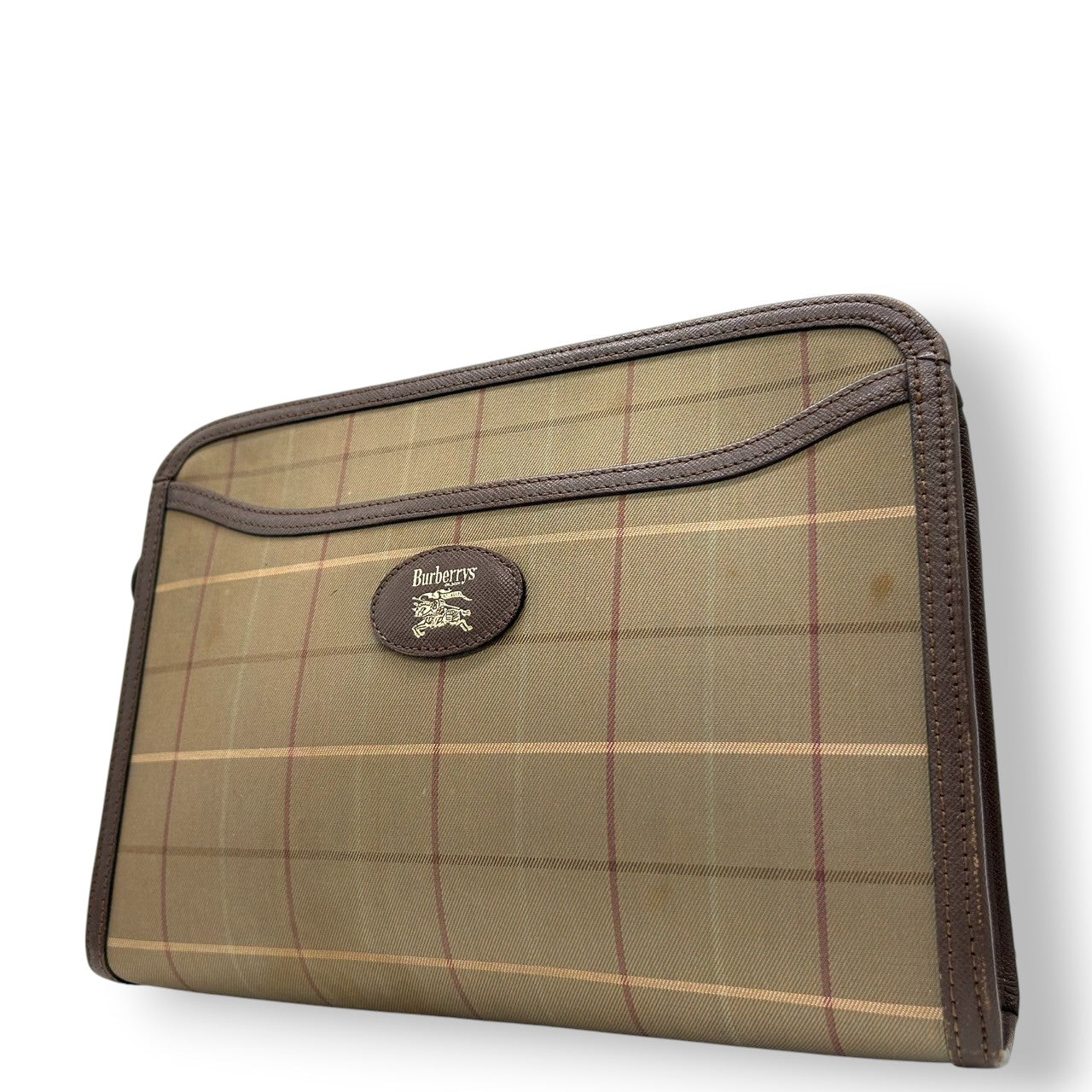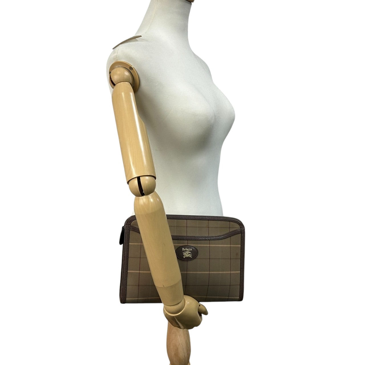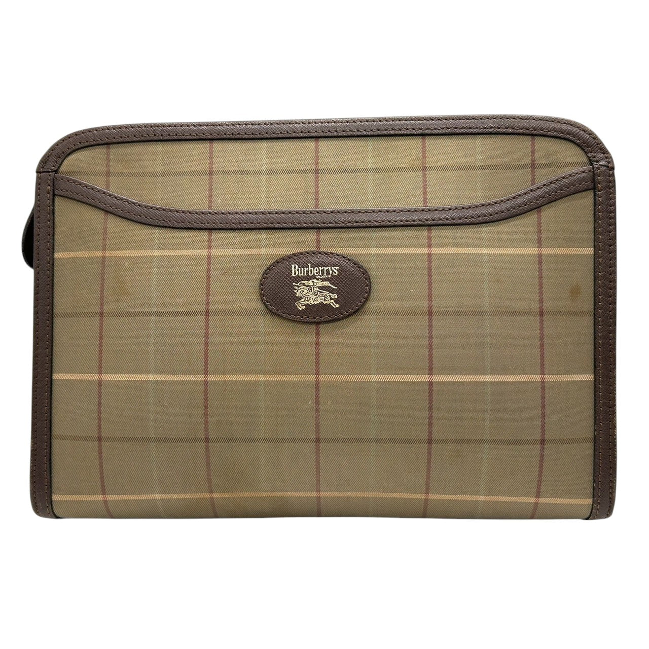 バーバリー Burberrys クラッチバッグ セカンドバッグ ポーチ ヴィンテージチェック ホースロゴ ビンテージ レザー ナイロン ブラウン ベージュ メンズ レディース ユニセックス 定番人気モデル 男女兼用 クリーニング済み s39