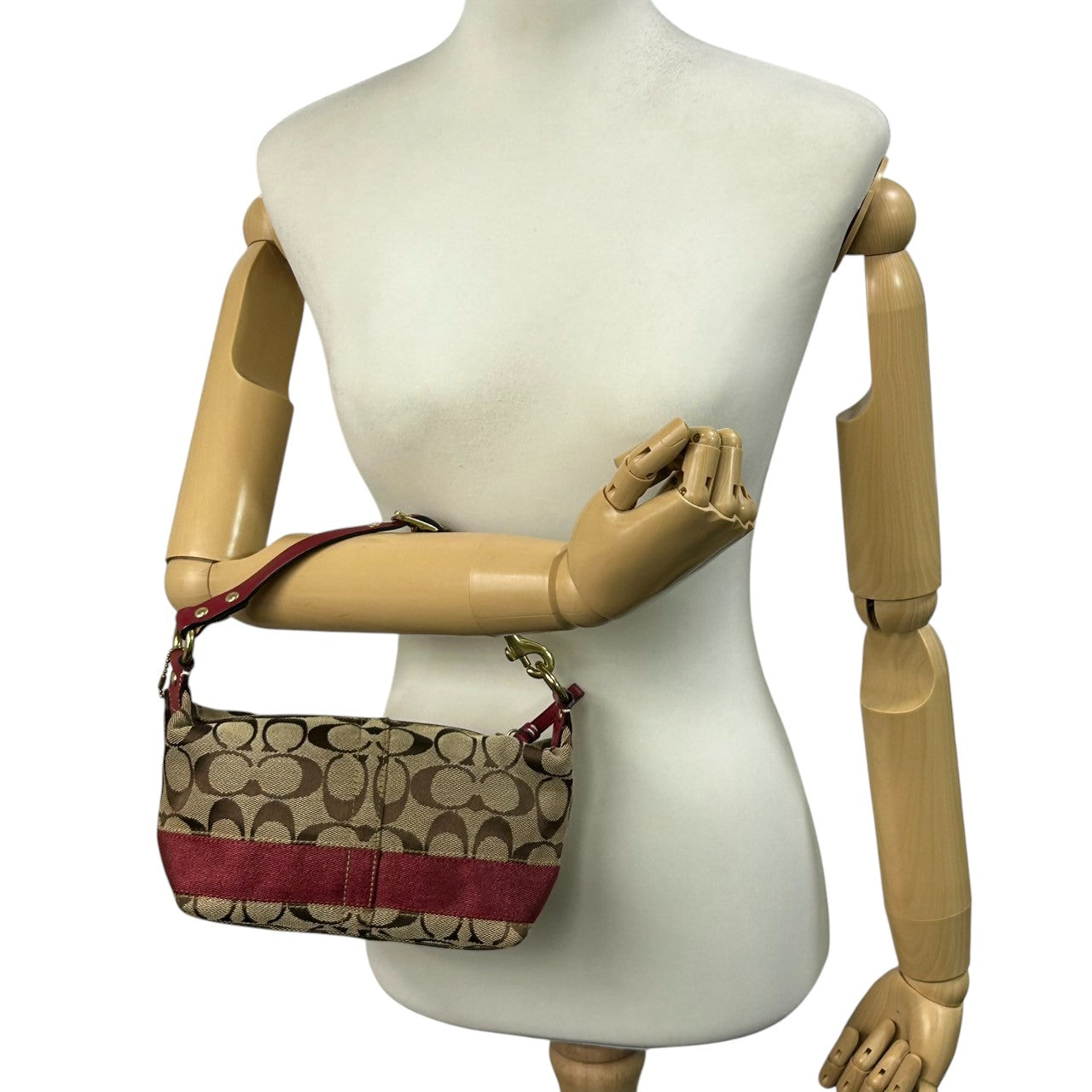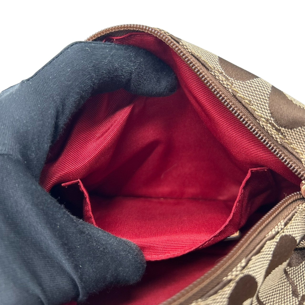 【極美品】コーチ COACH ハンドバッグ F14024 シグネチャー アクセサリーポーチ ミニバッグ レディース キャンバス レザー ベージュ ブラウン レッド ゴールド金具 Y2K 00s vintage クラシック s90