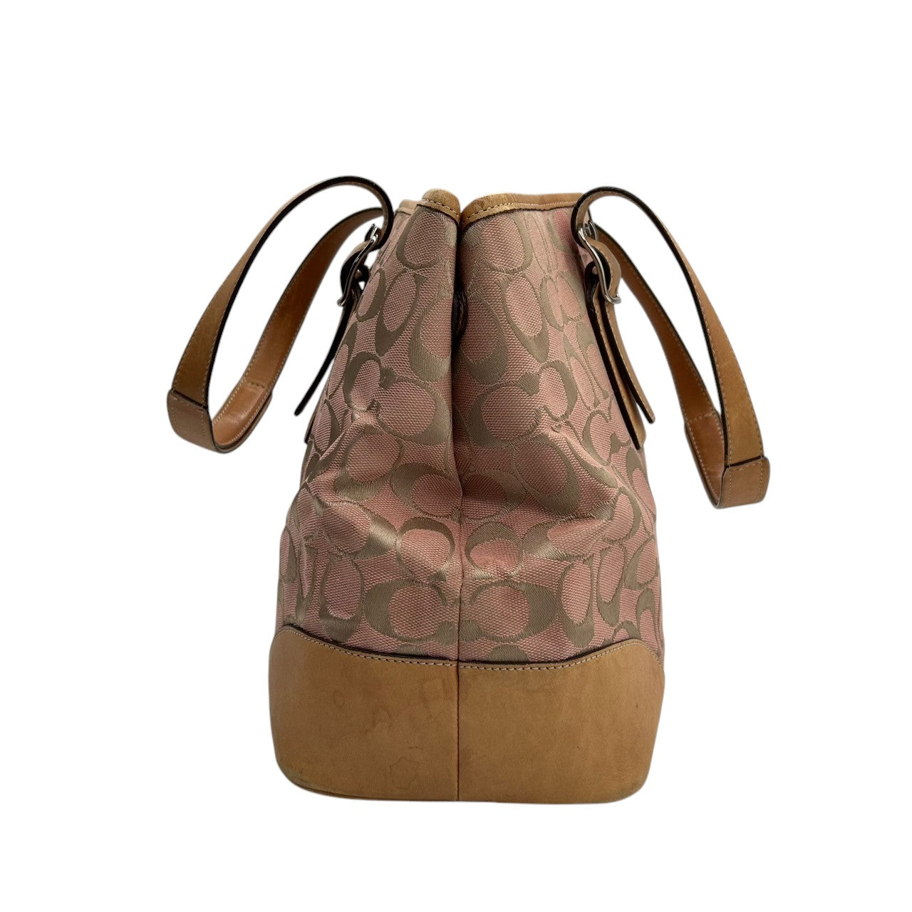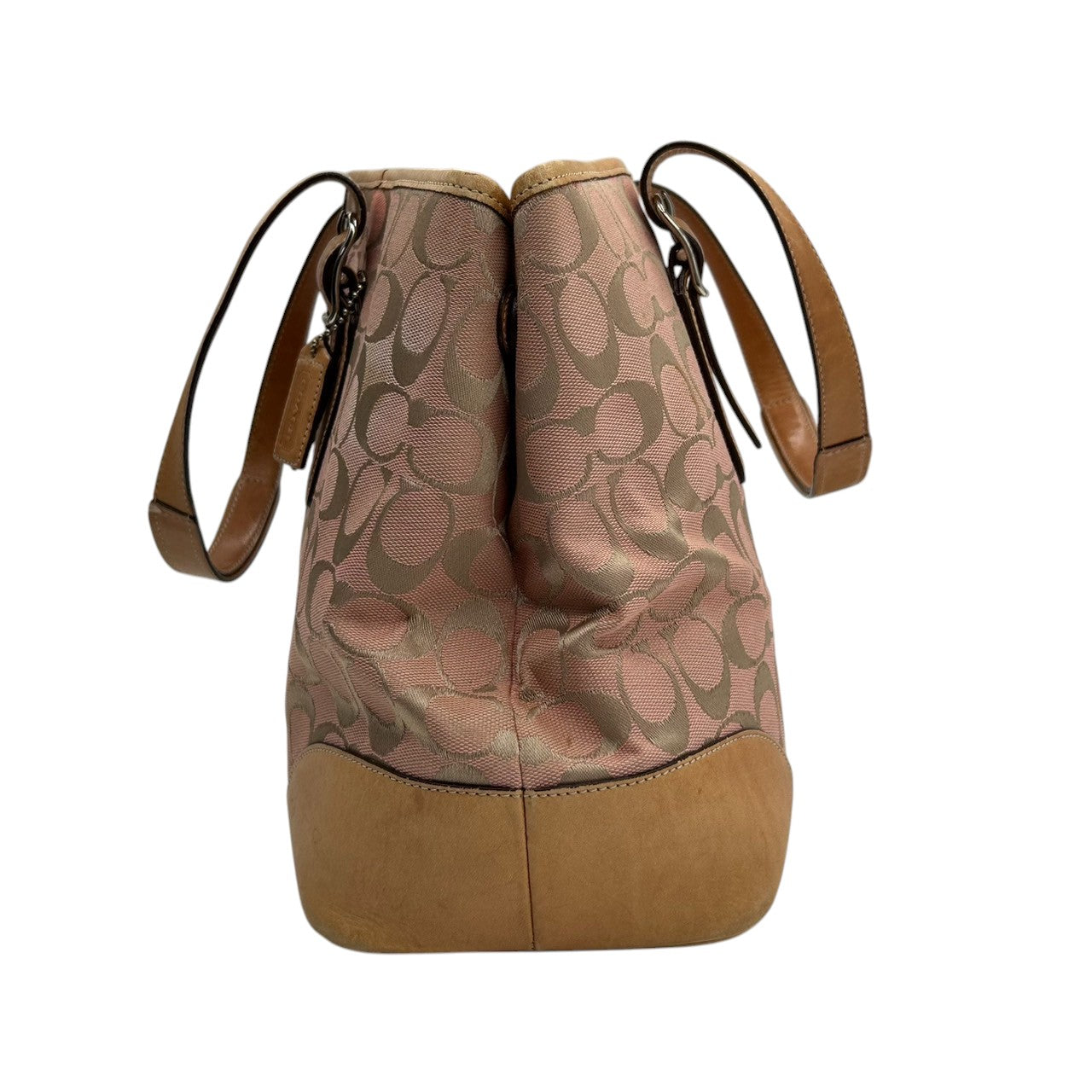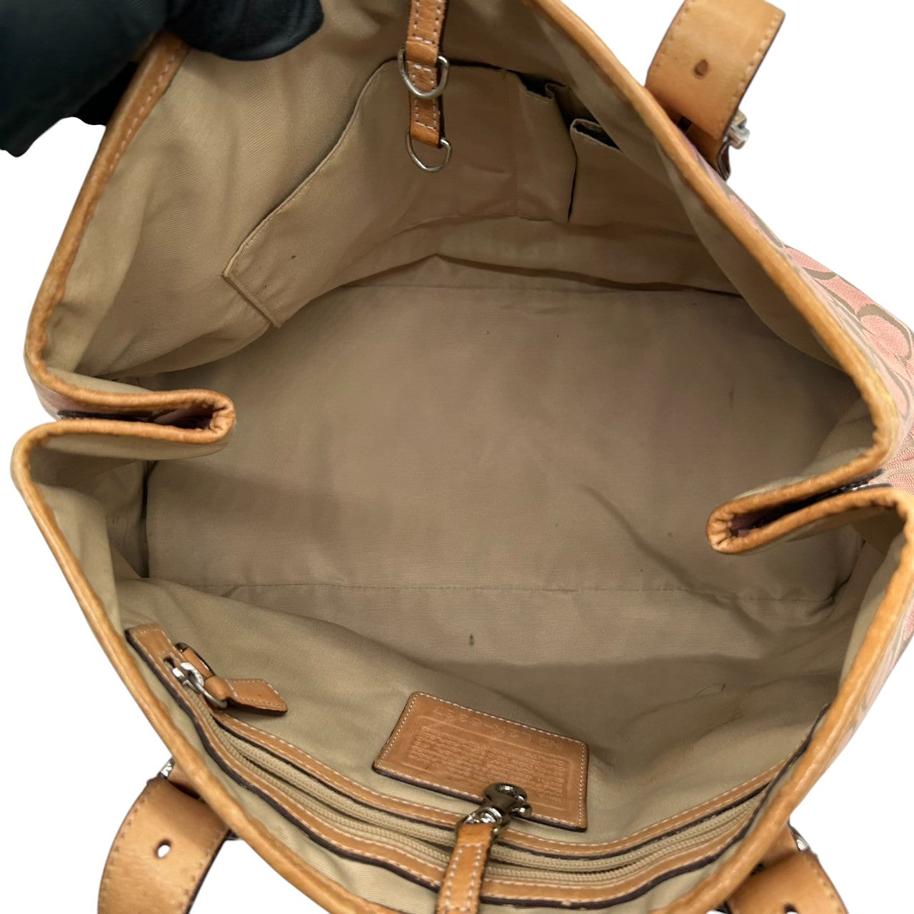 コーチ トートバッグ 6337 シグネチャー レディース COACH キャンバス レザー ピンク ベージュ 人気モデル 大容量 A4収納可 肩掛け 通勤 通学 クラシック エレガント チャーム付 クリーニング済み s49