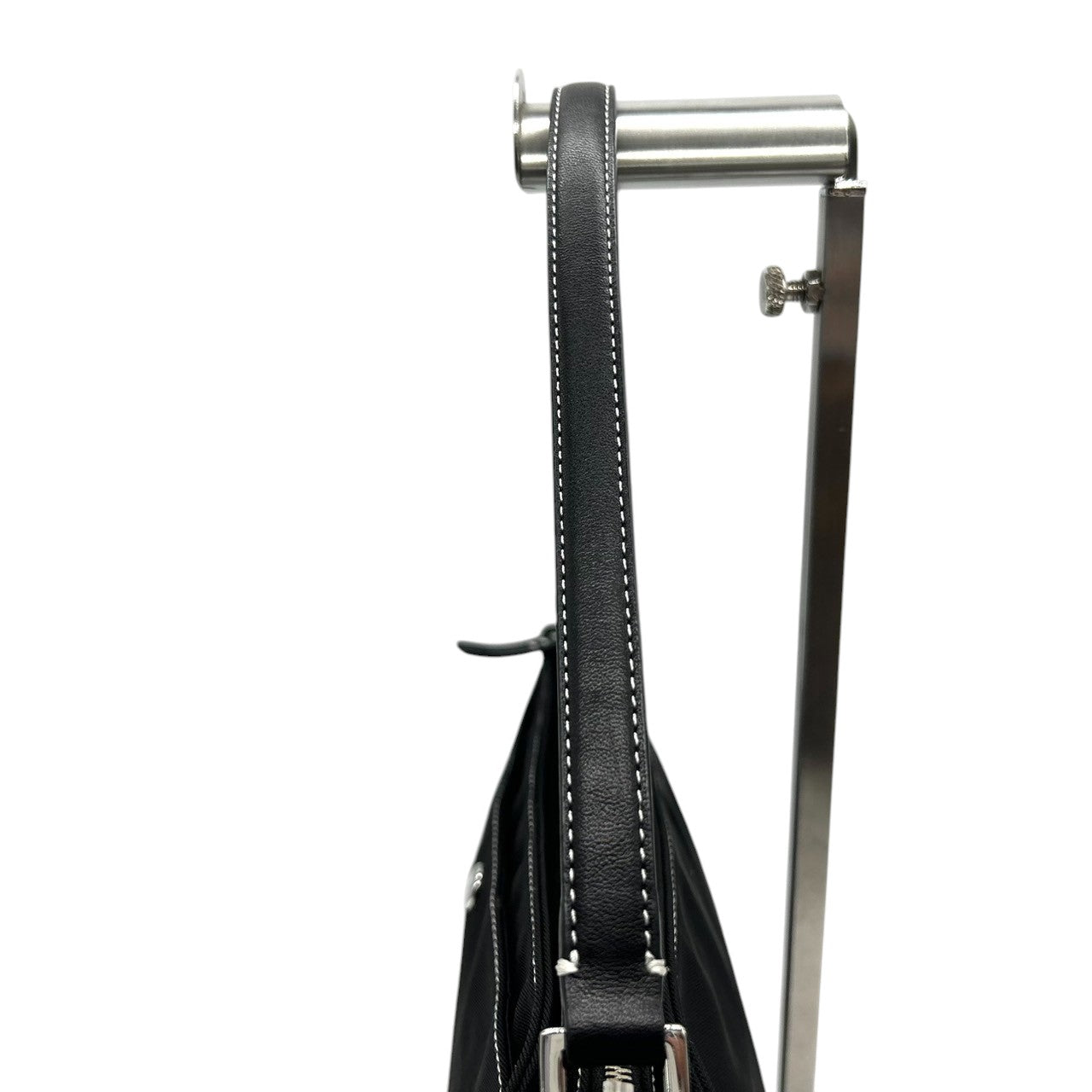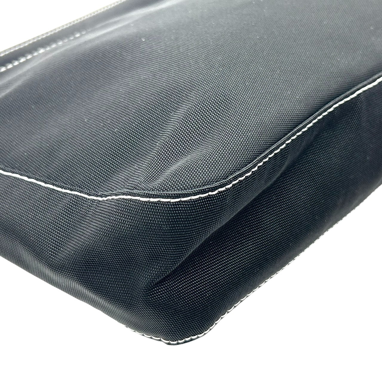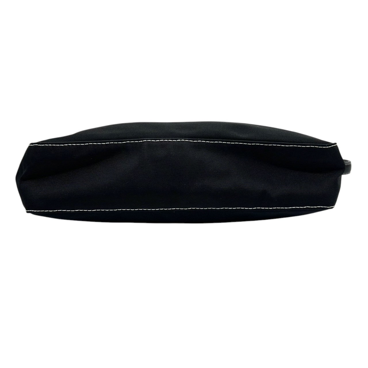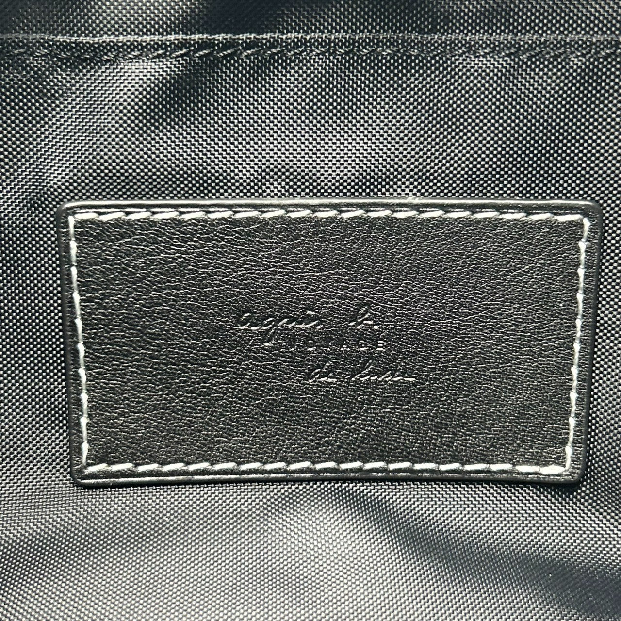 【美品】アニエスベー agnes b. ハンドバッグ アクセサリーポーチ ミニバッグ ナイロン レザー ブラック 黒 ホワイトステッチ b.ロゴ レディース シンプル カジュアル エレガント デザイン 自立可 クリーニング済み s90