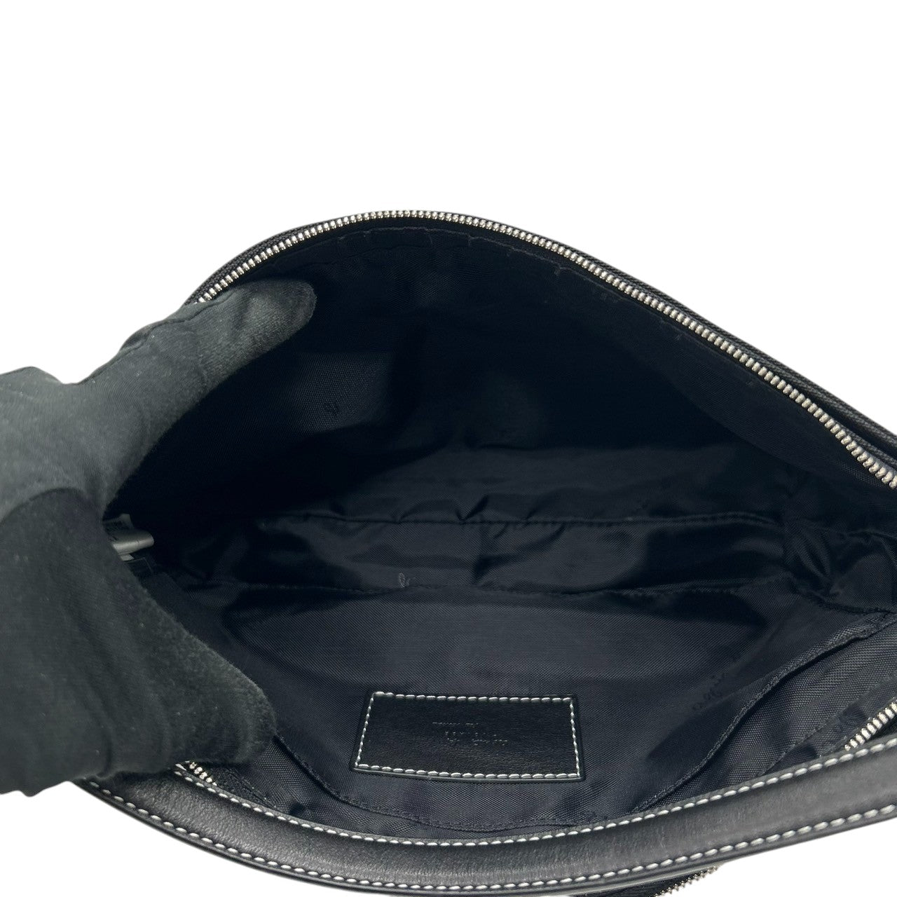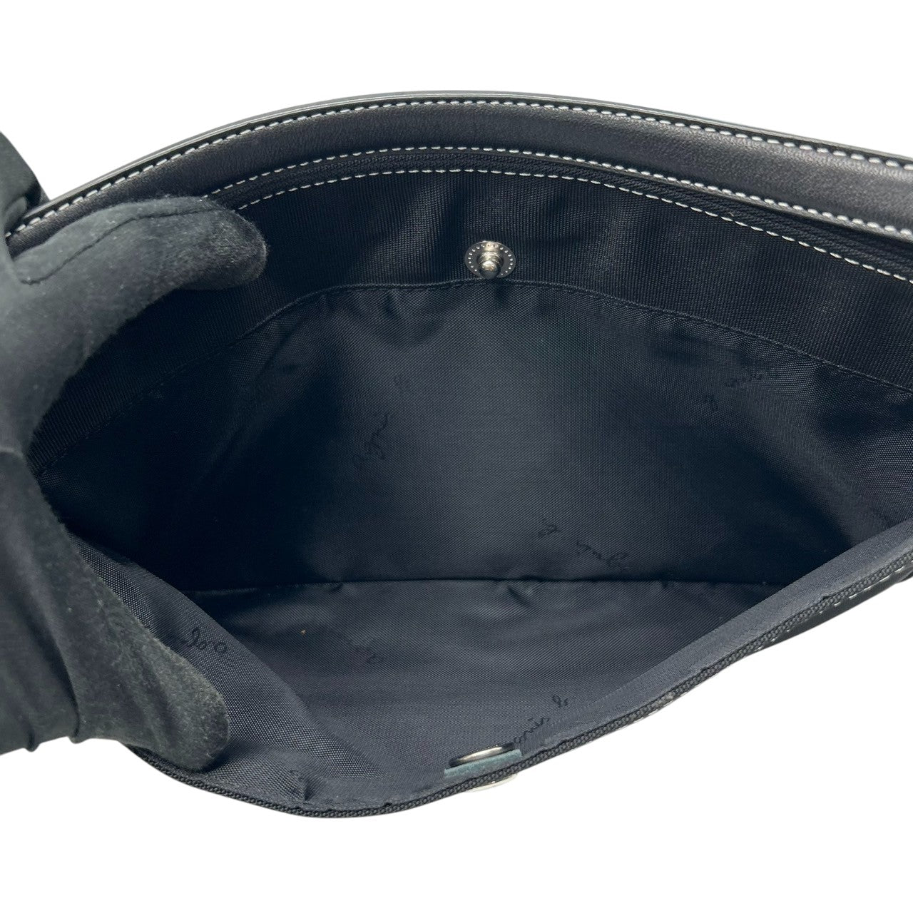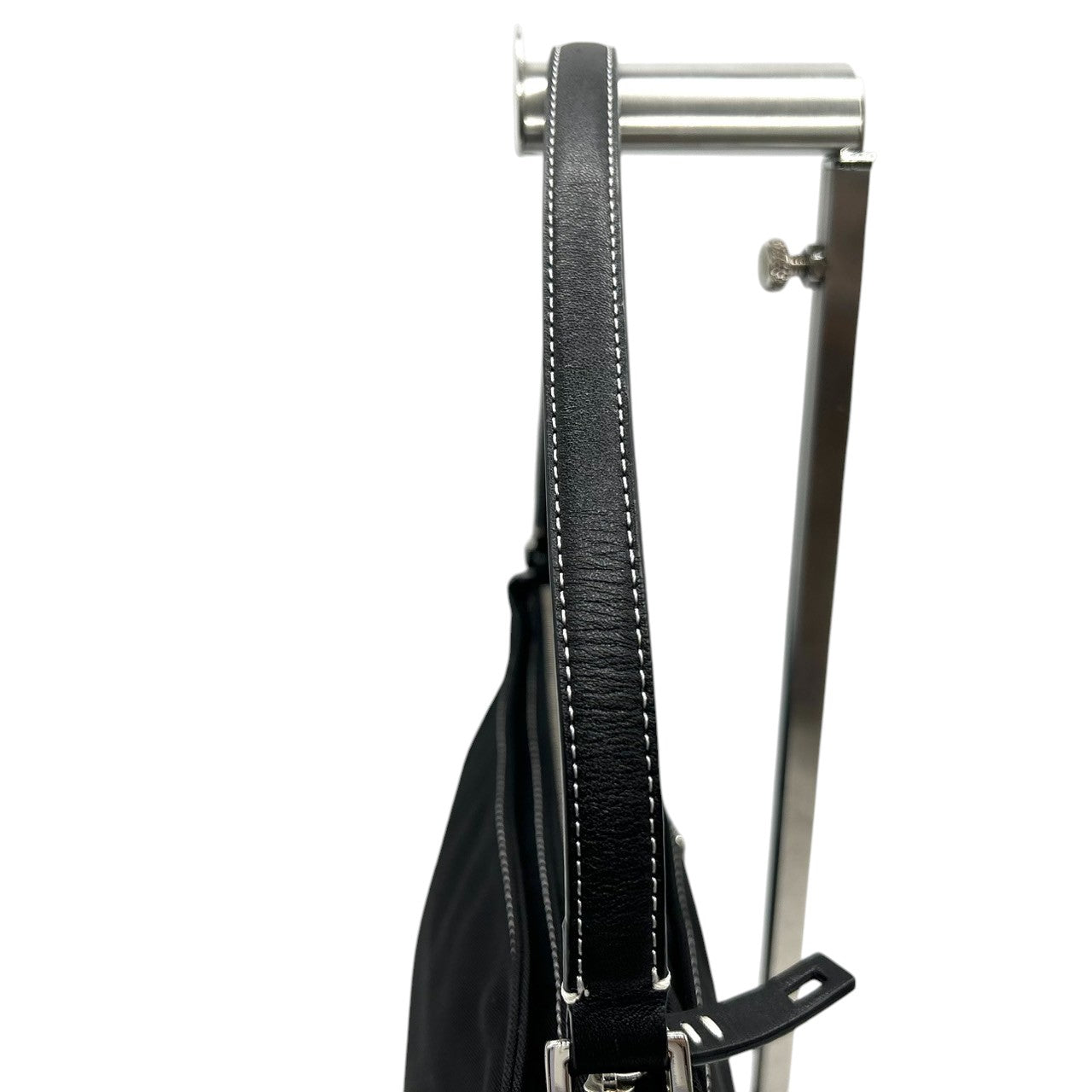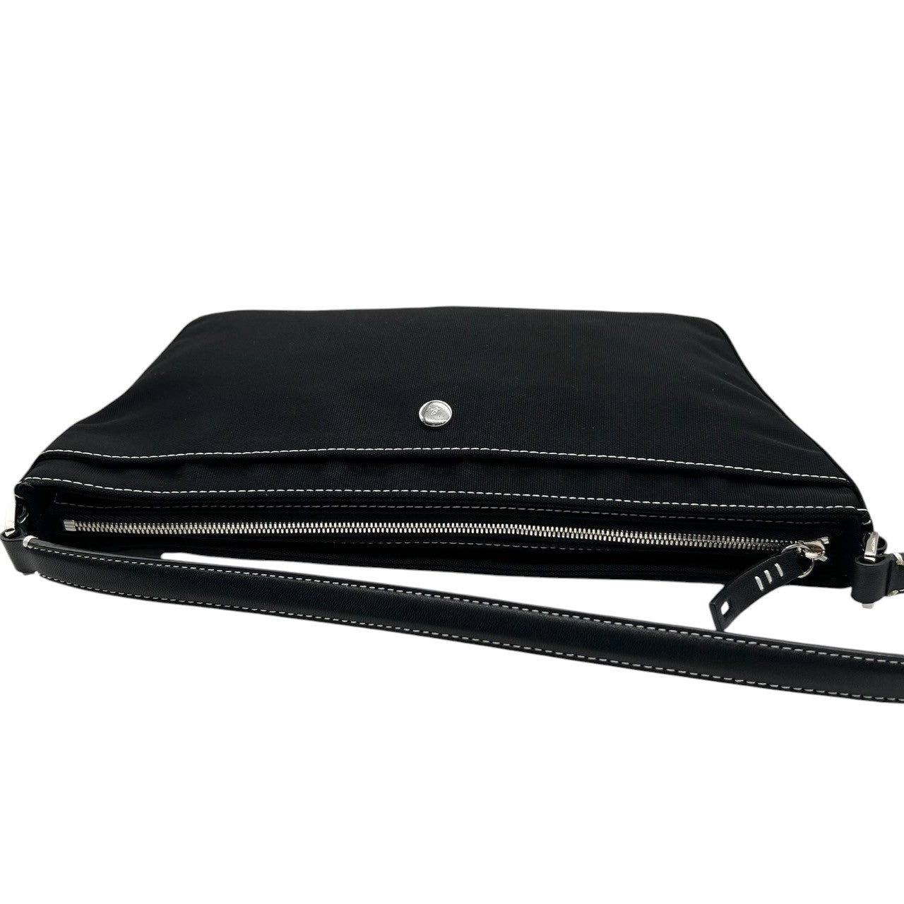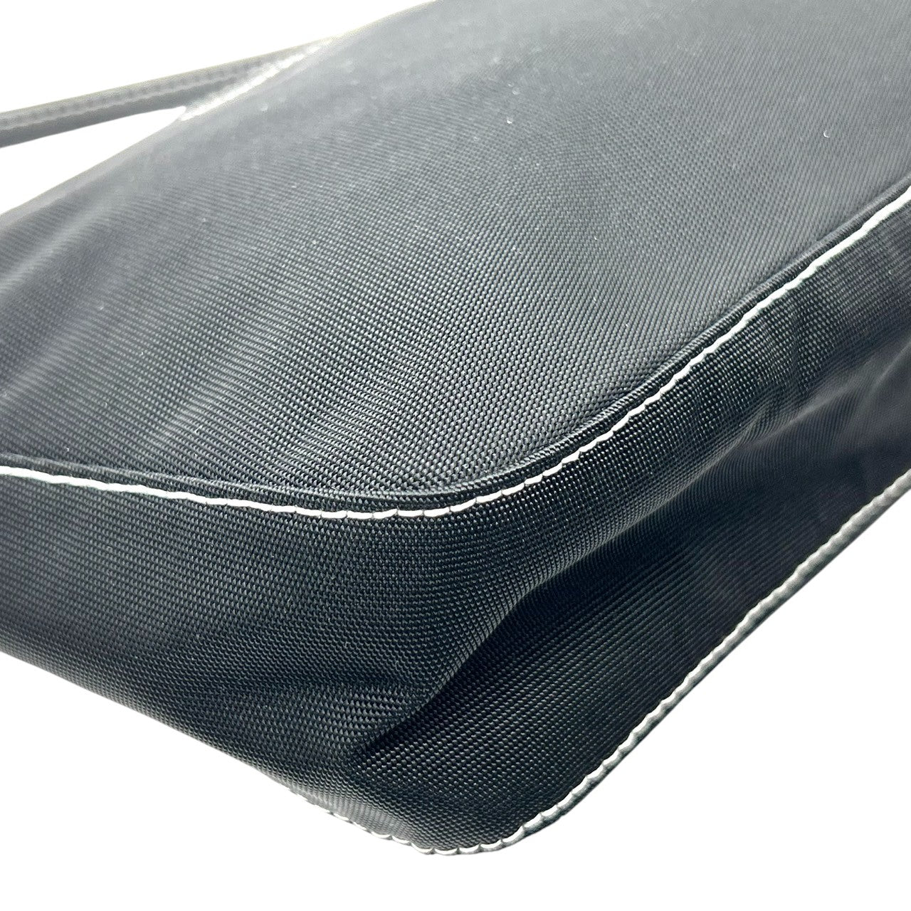 【美品】アニエスベー agnes b. ハンドバッグ アクセサリーポーチ ミニバッグ ナイロン レザー ブラック 黒 ホワイトステッチ b.ロゴ レディース シンプル カジュアル エレガント デザイン 自立可 クリーニング済み s90