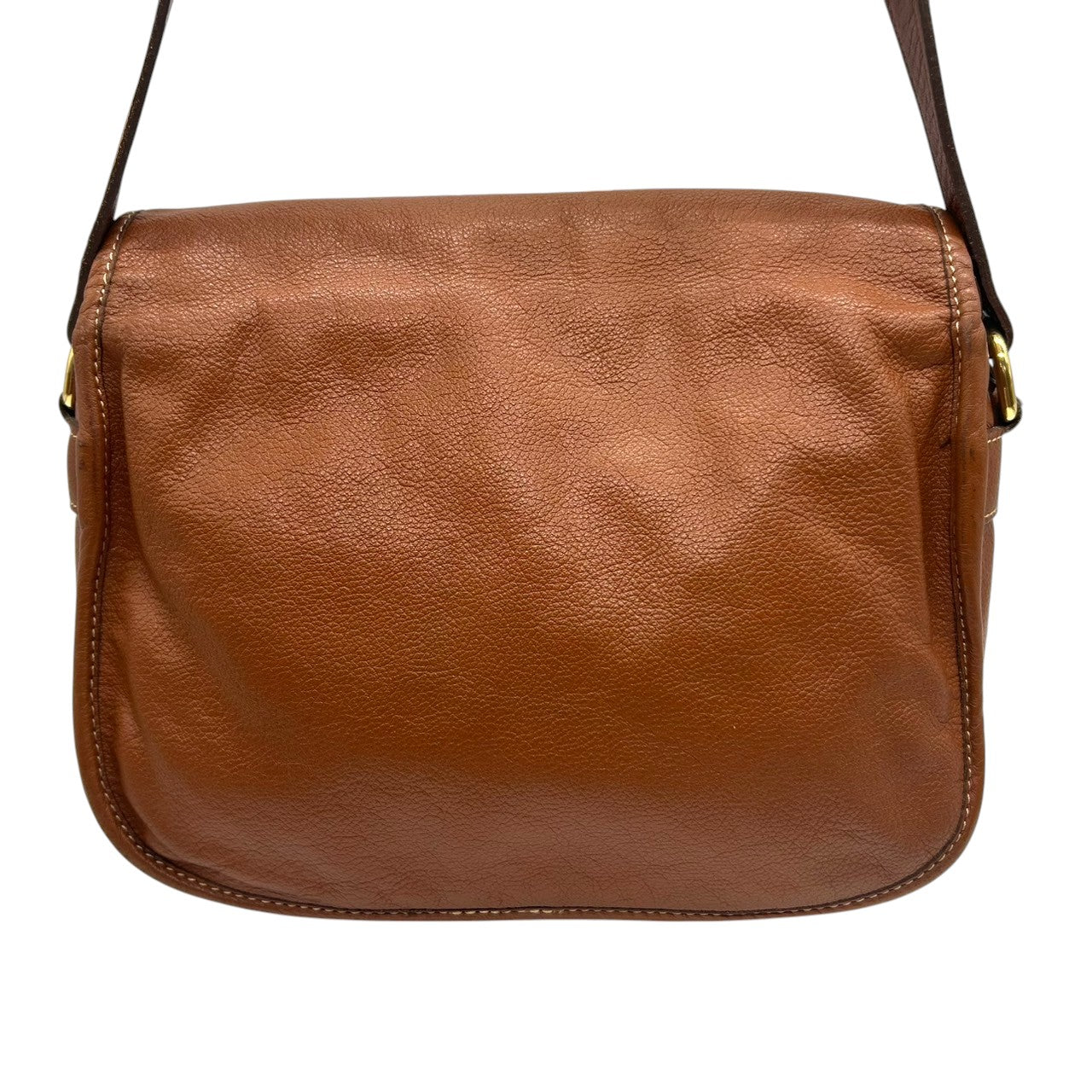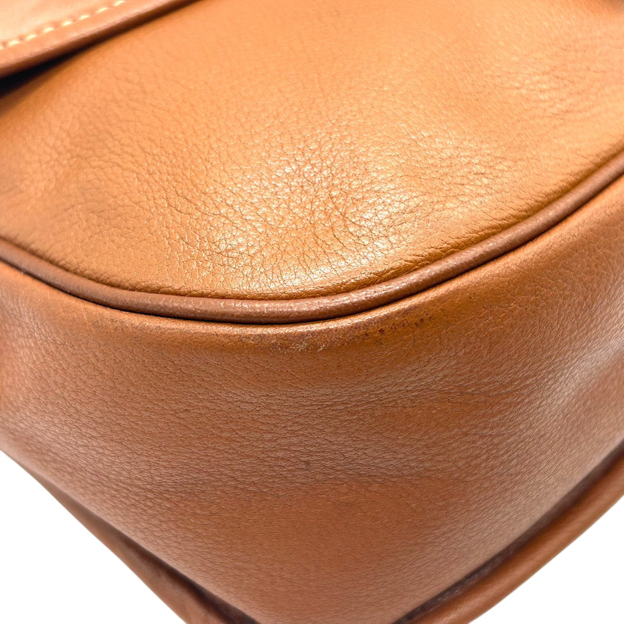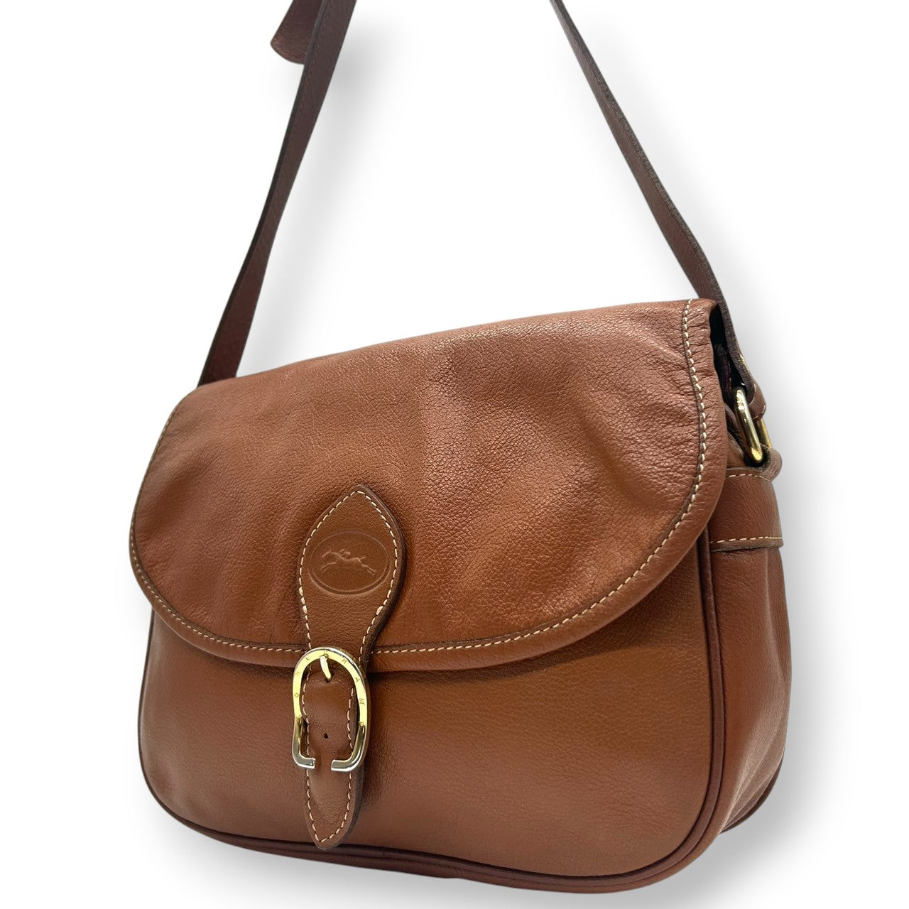【美品】LONGCHAMP ロンシャン ショルダーバッグ クロスボディ 斜め掛け可 フラップ 本革 レザー シボ革 ブラウン キャメル ゴールド金具 ロゴ型押し レディース ヴィンテージ クラシックデザイン エレガント クリーニング済み s33