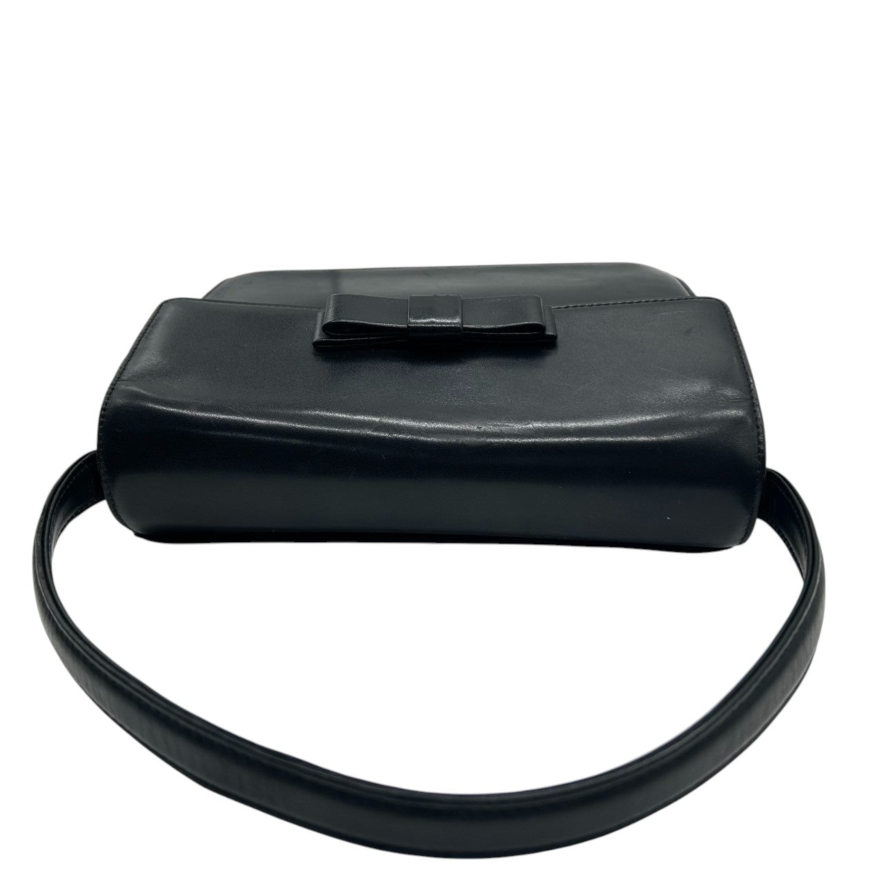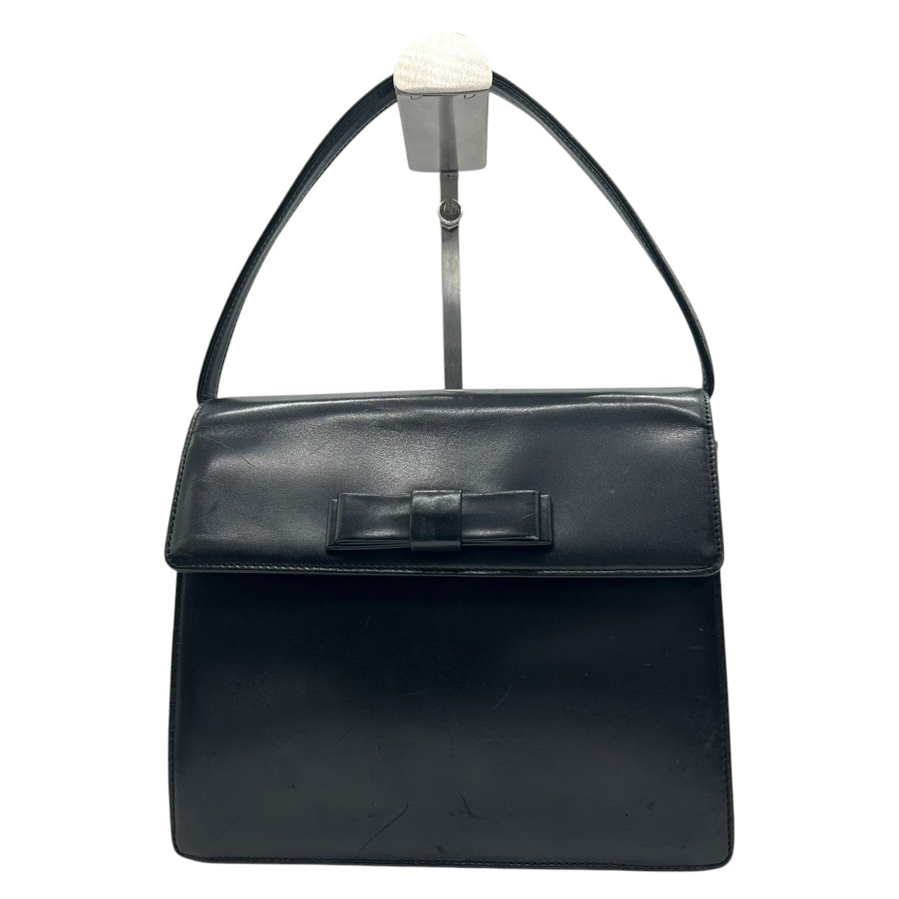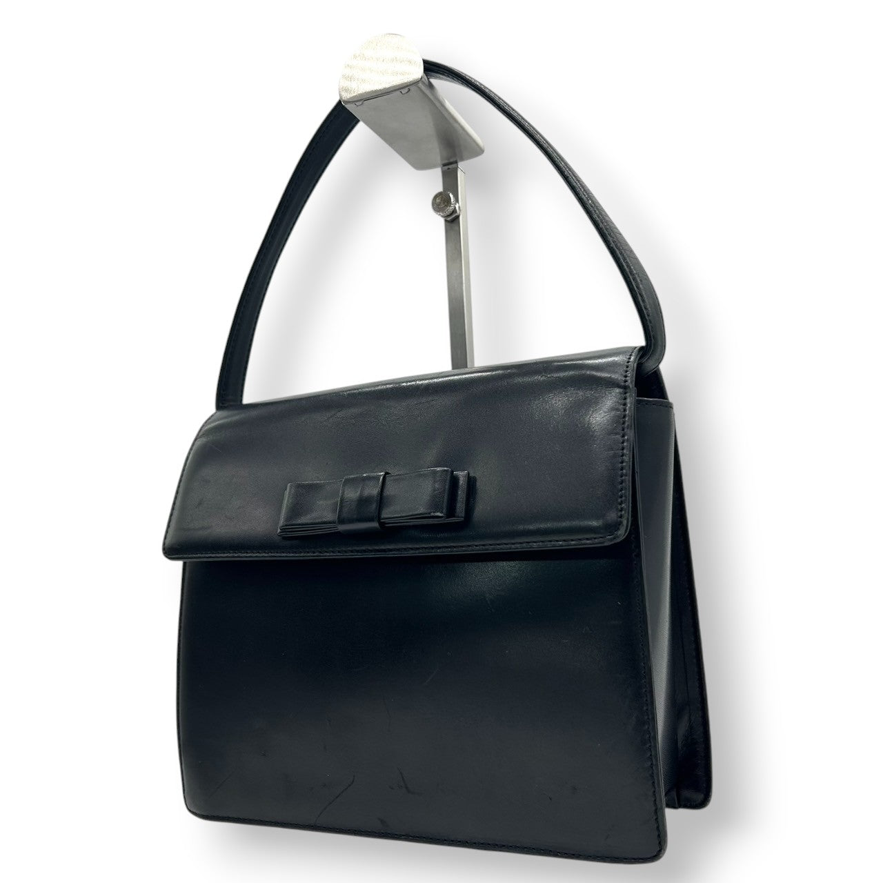 【CHARLES JOURDAN】シャルルジョルダン ハンドバッグ トップハンドル 自立可 本革 レザー ブラック 黒 リボンモチーフ フラップ フォーマルバッグ パーティー ヴィンテージ クラシック エレガント レディース クリーニング済み s61