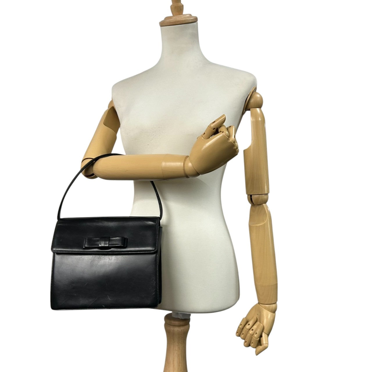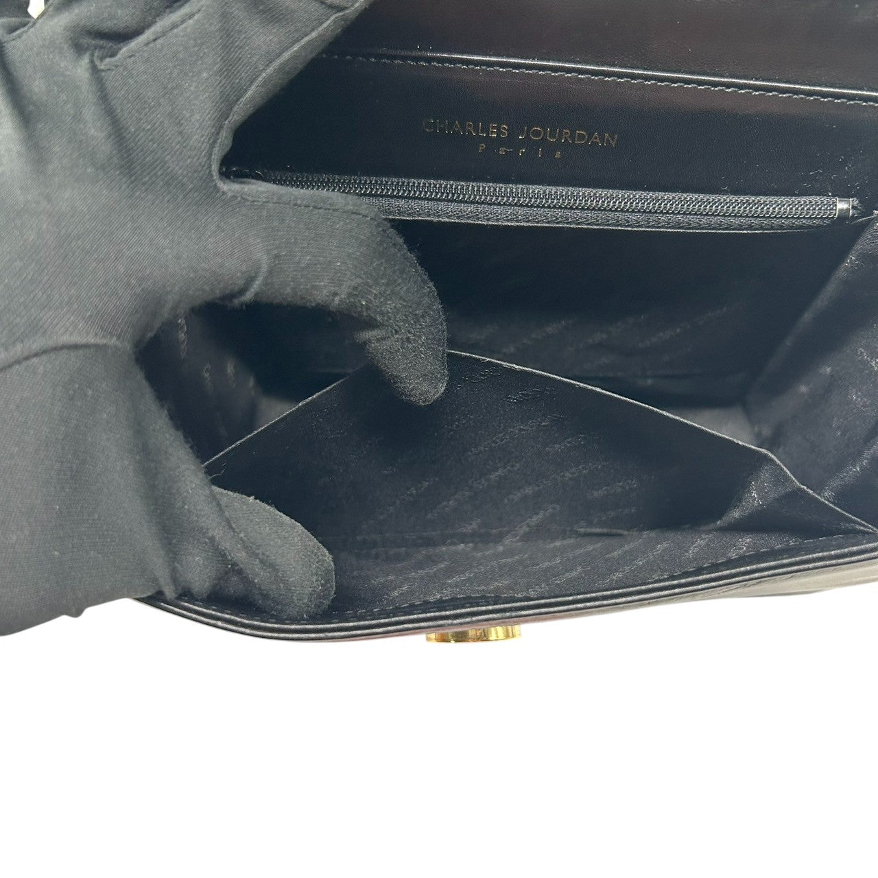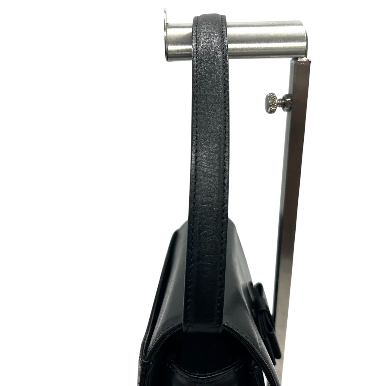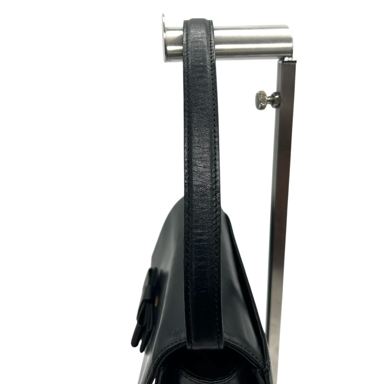 【CHARLES JOURDAN】シャルルジョルダン ハンドバッグ トップハンドル 自立可 本革 レザー ブラック 黒 リボンモチーフ フラップ フォーマルバッグ パーティー ヴィンテージ クラシック エレガント レディース クリーニング済み s61
