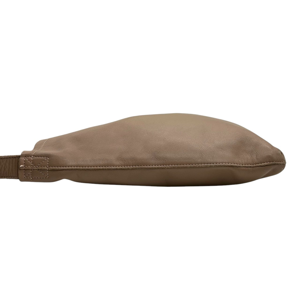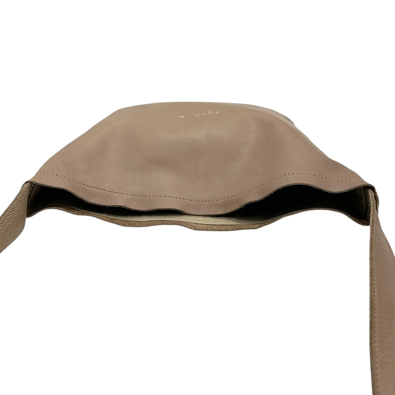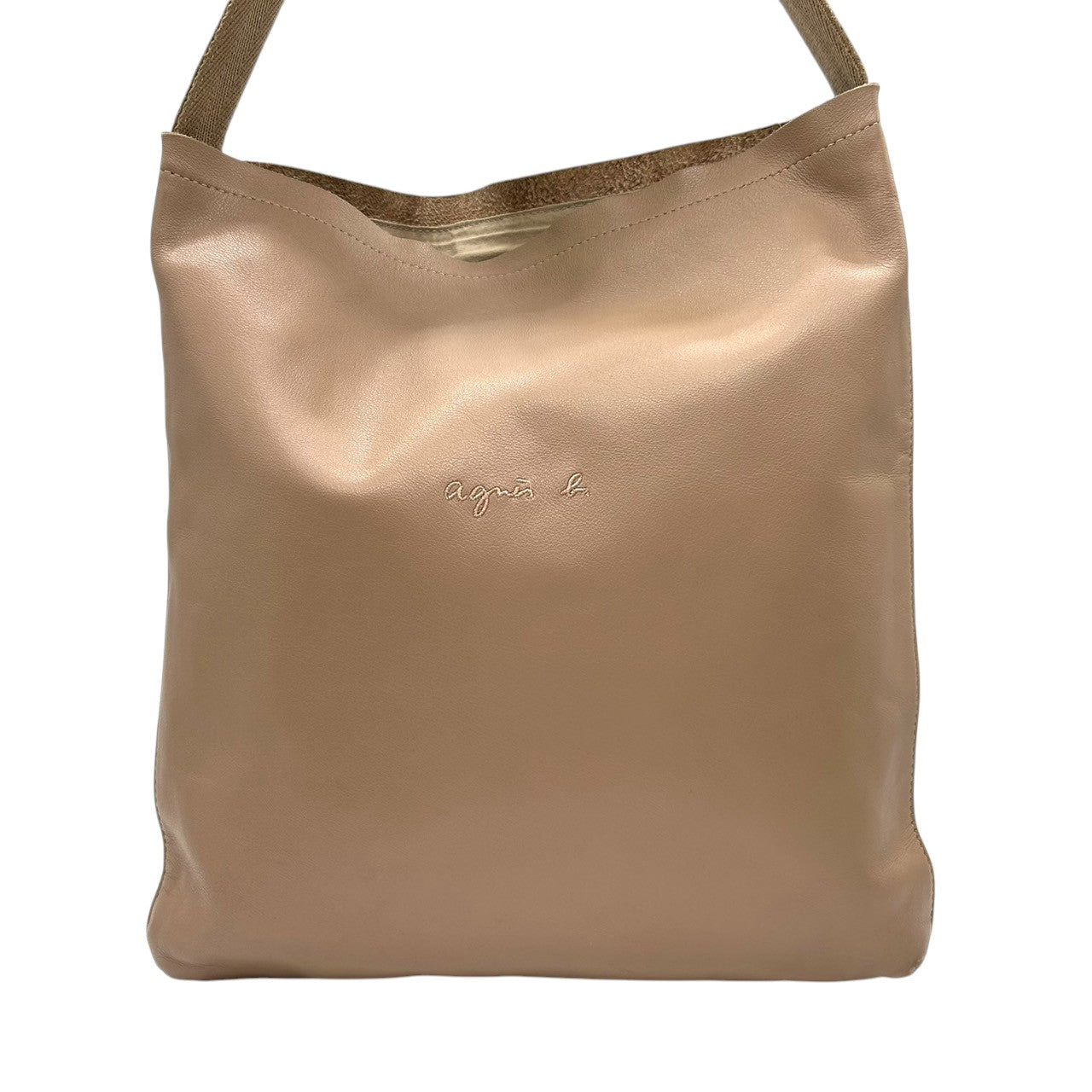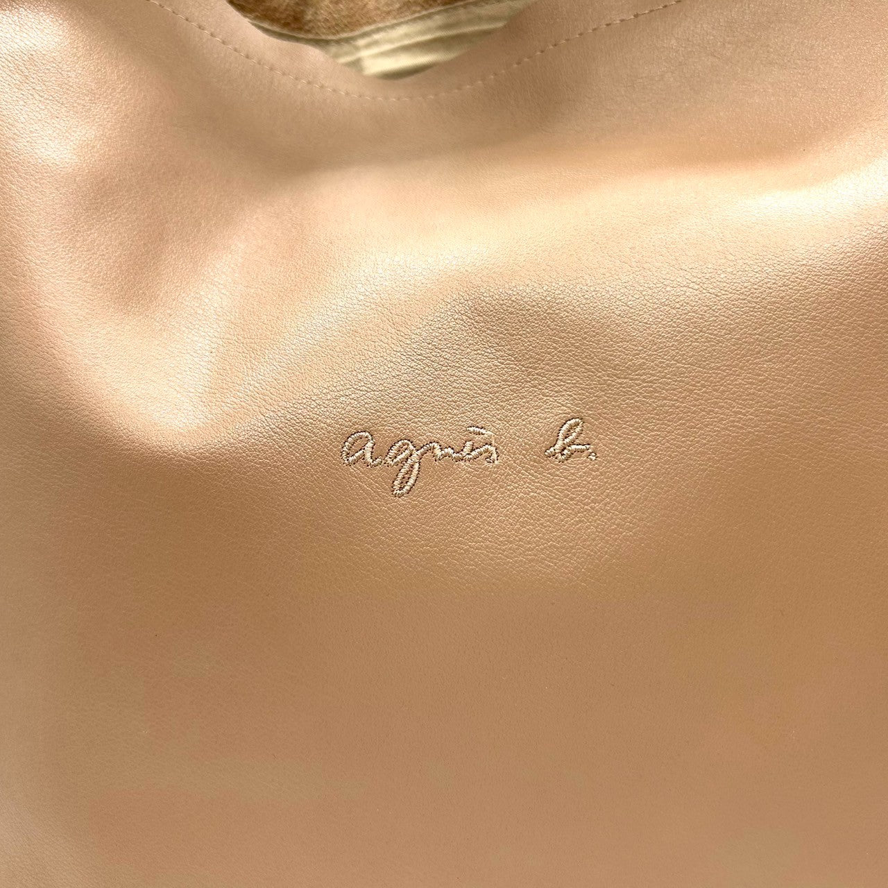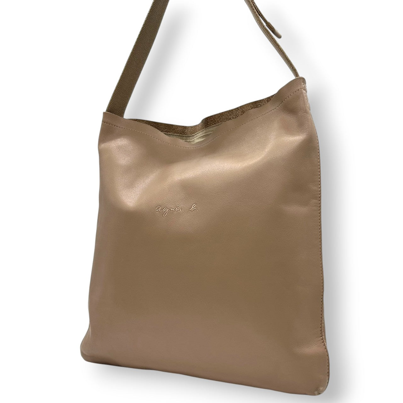 【agnes b.】アニエスベー ショルダーバッグ ワンショルダー 斜め掛け可 クロスボディ 本革 レザー ベージュ グレージュ系 ロゴ型押し レディース シンプル エレガント カジュアル 通勤通学 人気モデル クリーニング済み s67