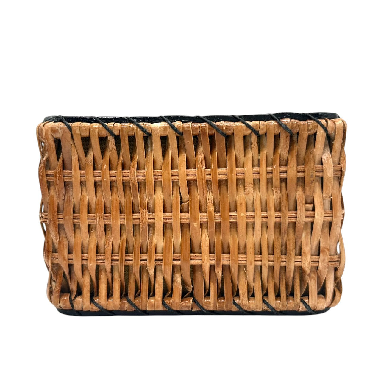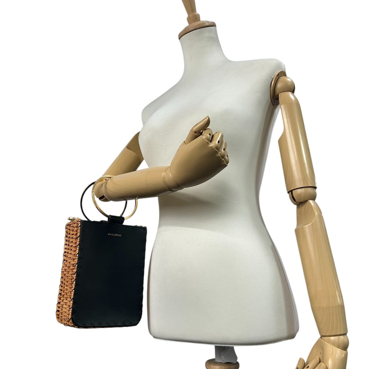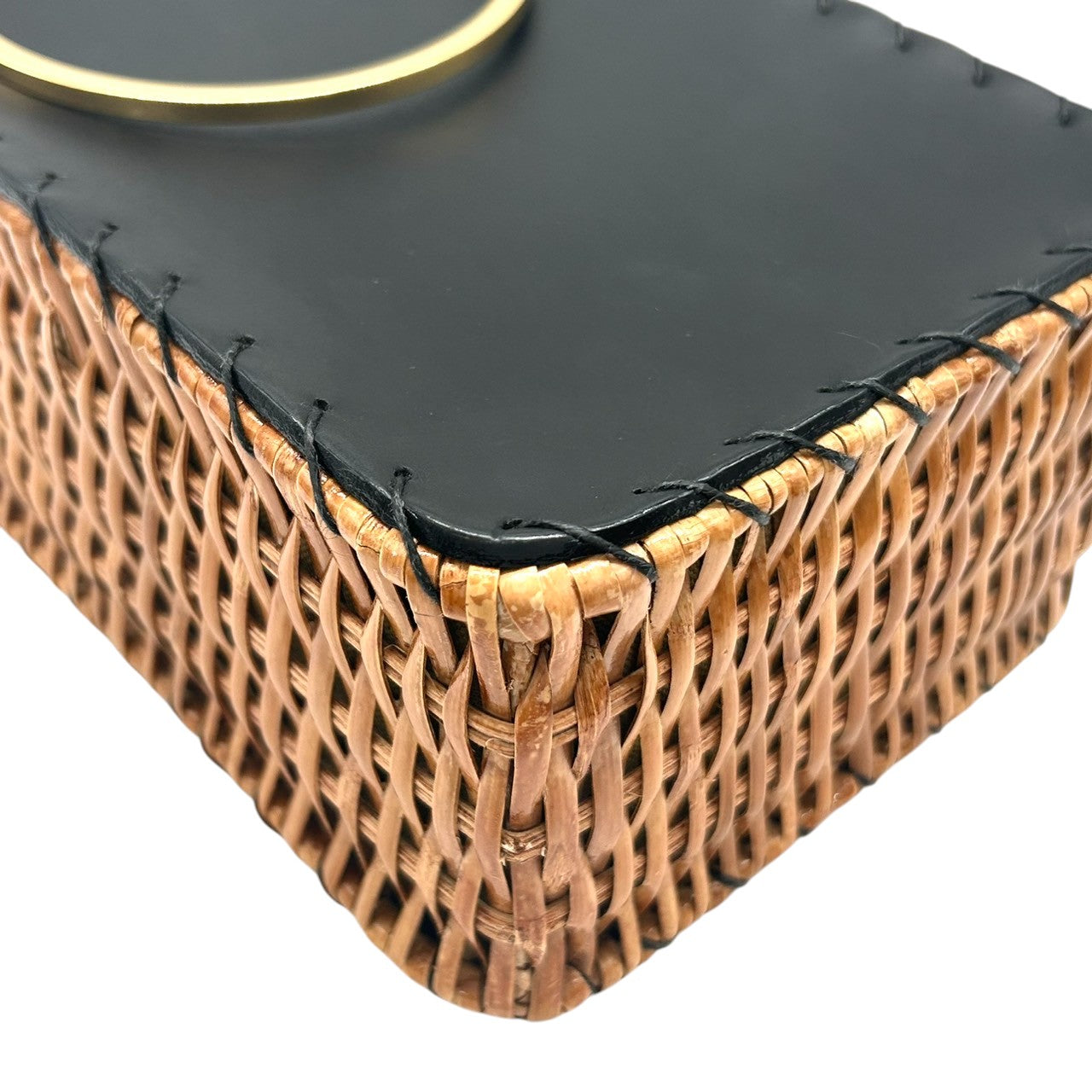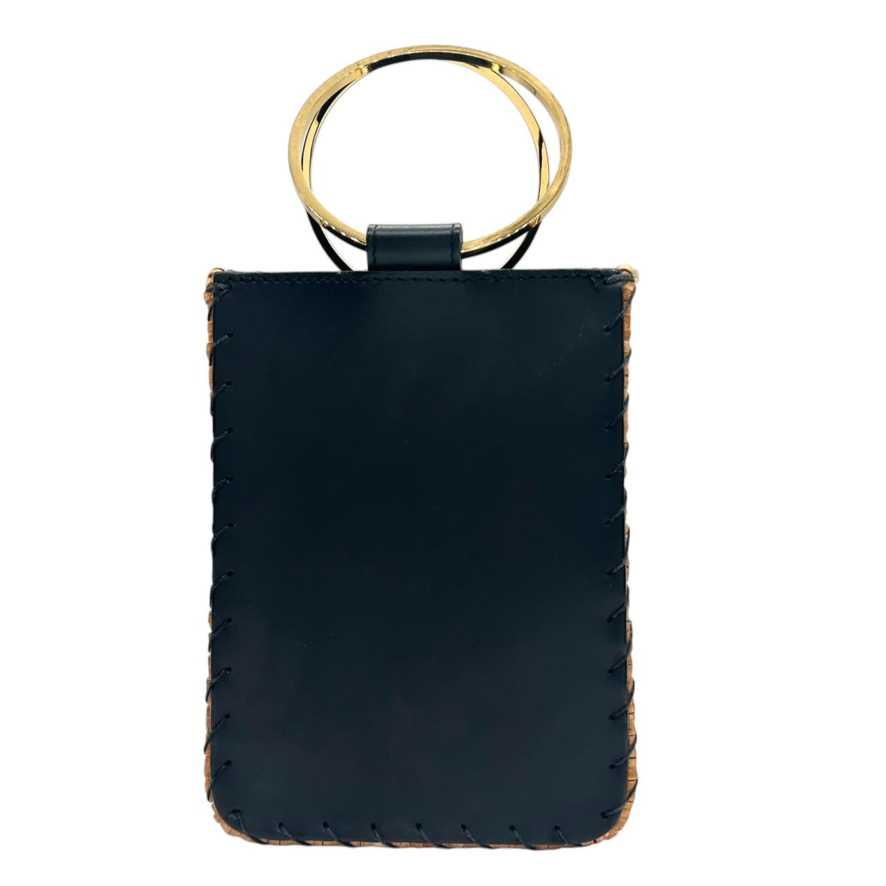 【VIOLA'dORO】ヴィオラドーロ 2WAY ハンドバッグ ショルダーバッグ 斜め掛け可 自立可 かごバッグ スクエア型 ラタン レザー ブラック ゴールド金具 メタルリングハンドル レディース スタイリッシュ モダン クリーニング済み s33