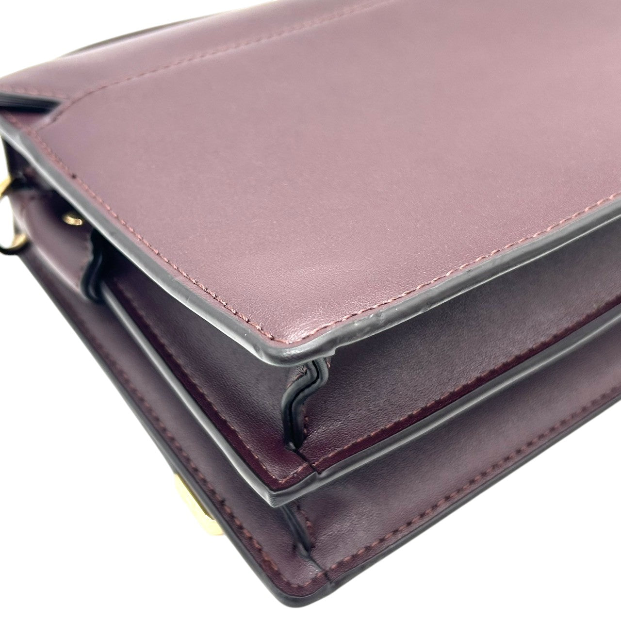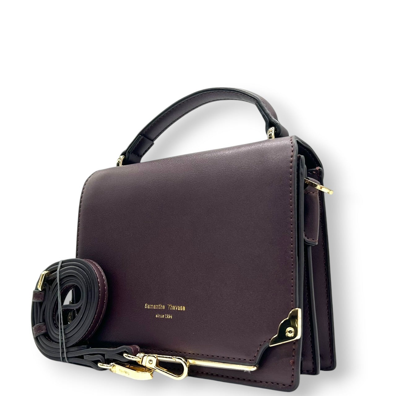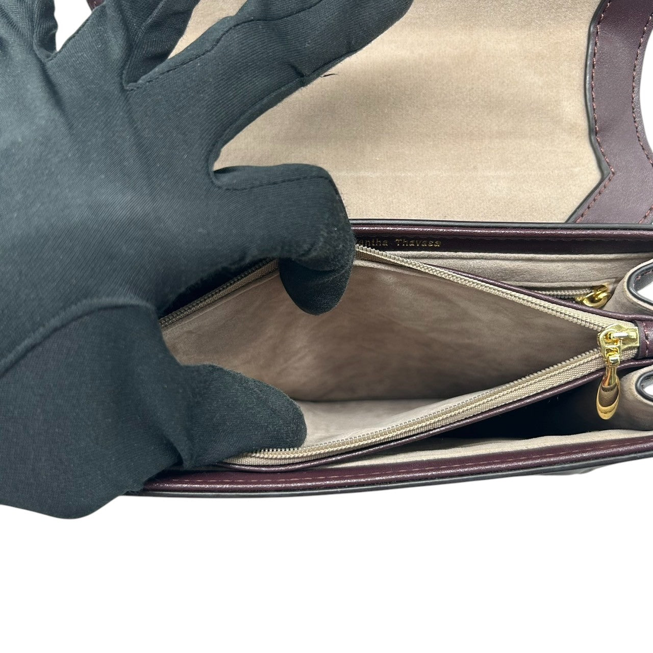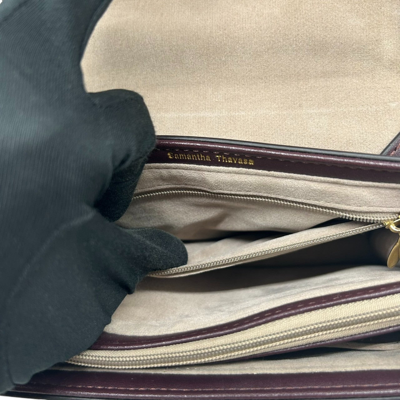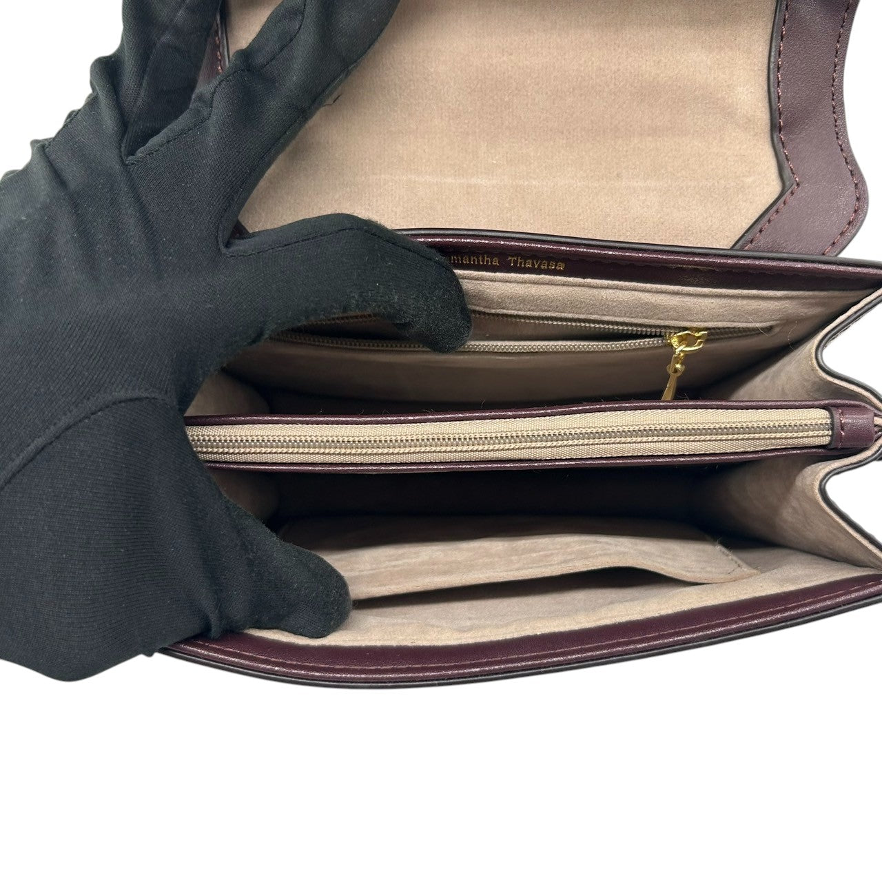 【未使用級/極美品】Samantha Thavasa サマンサタバサ 2WAY ハンドバッグ ショルダーバッグ 斜め掛け可 自立可 トップハンドル スクエア レザー ワインレッド ゴールド金具 フラップ レディース エレガント クリーニング済み s33