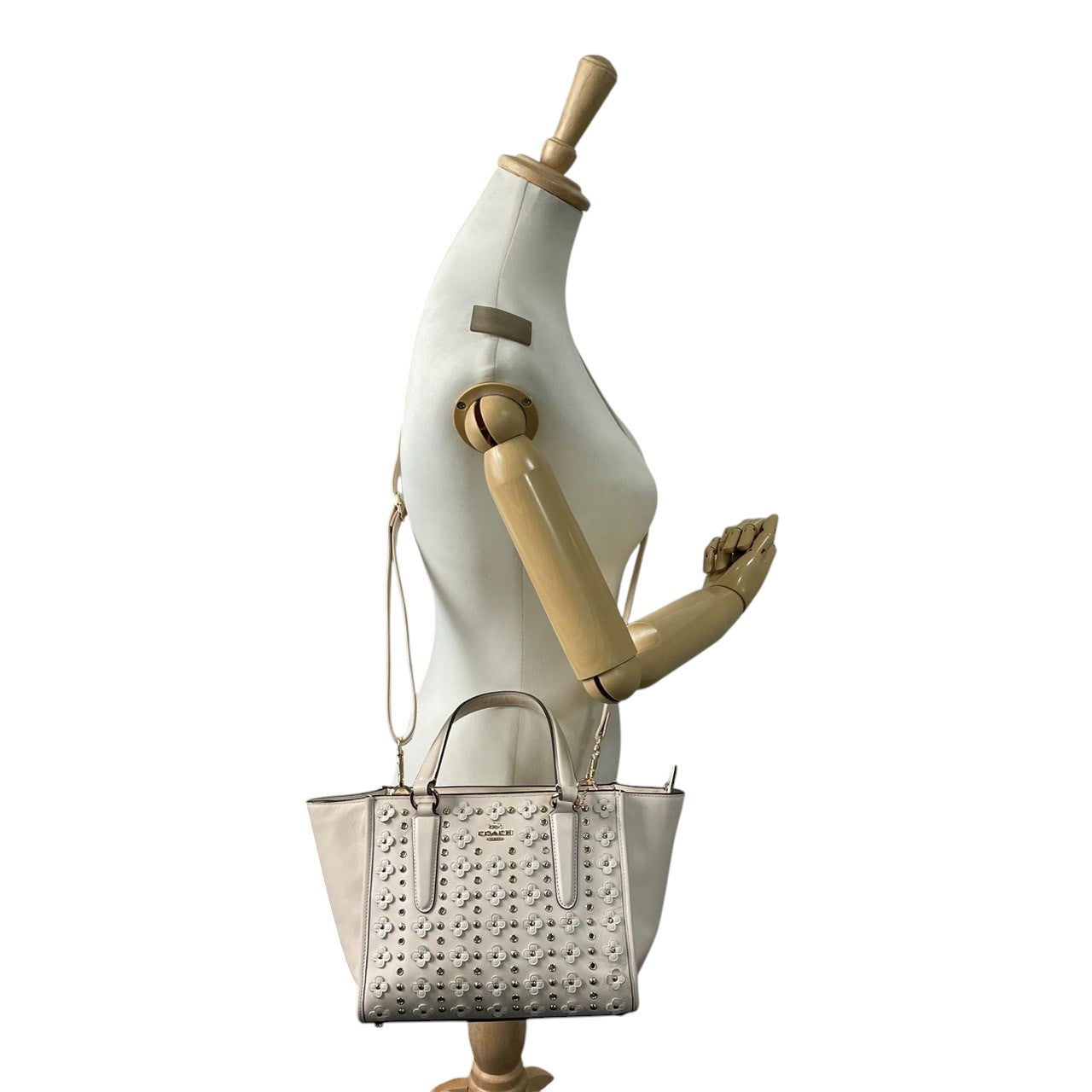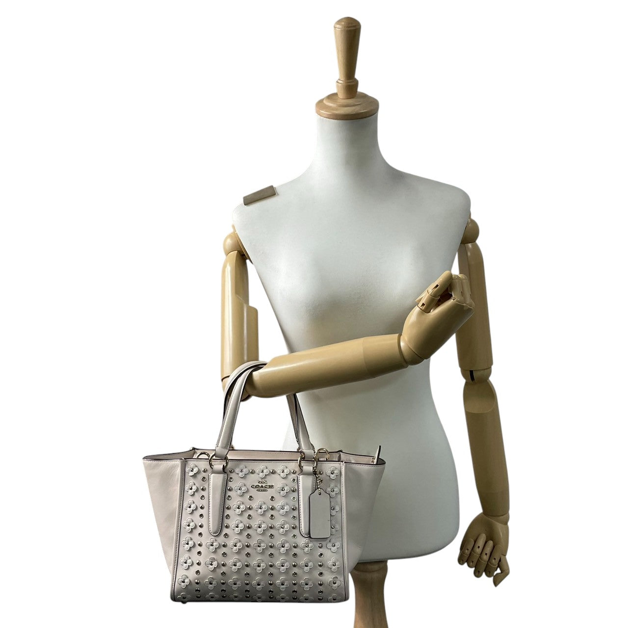 COACH コーチ 2WAYバッグ 37703 チャーリーキャリーオール ハンドバッグ ショルダーバッグ レザー アイボリー ティーローズ フラワー スタッズ レディース 斜め掛け可 フェミニン エレガント デイリーユース 人気モデル クリーニング済み s38