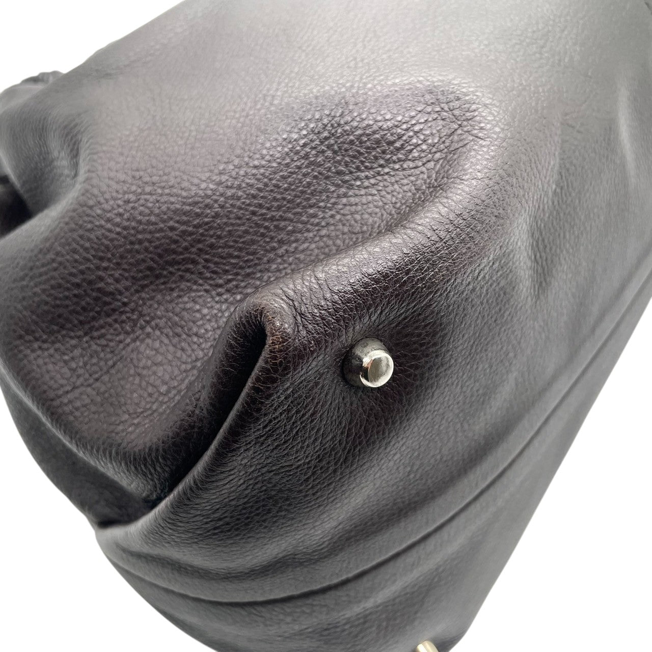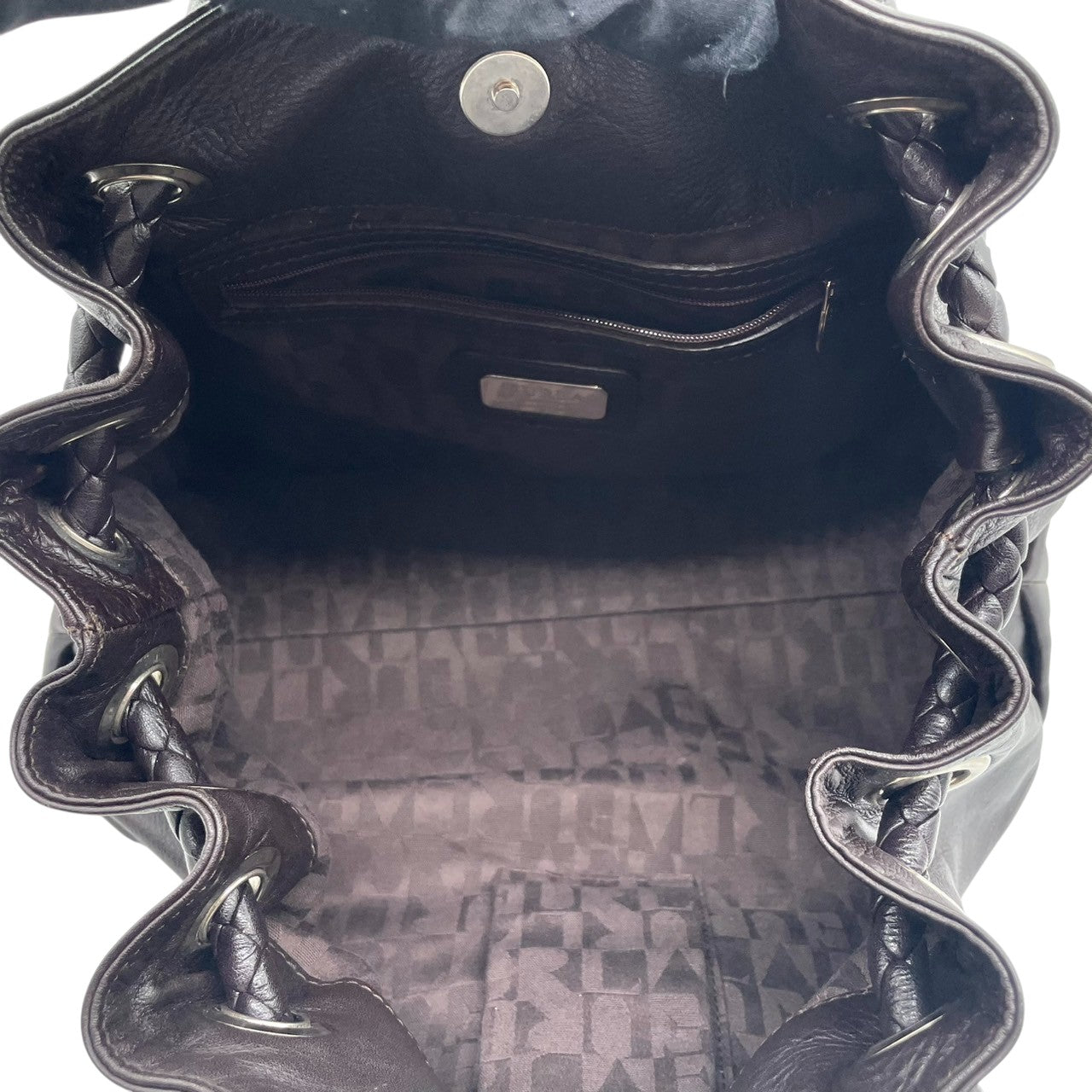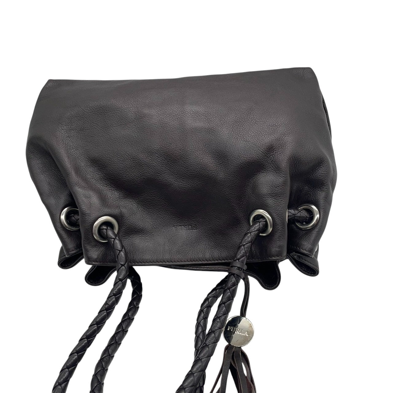 FURLA フルラ カルメン トートバッグ ワンショルダー A4収納可 大容量 本革 レザー シボ革 編み込みハンドル ダークブラウン こげ茶 レディース エレガント ビジネス 通勤通学 イタリア製 人気モデル クリーニング済み s1