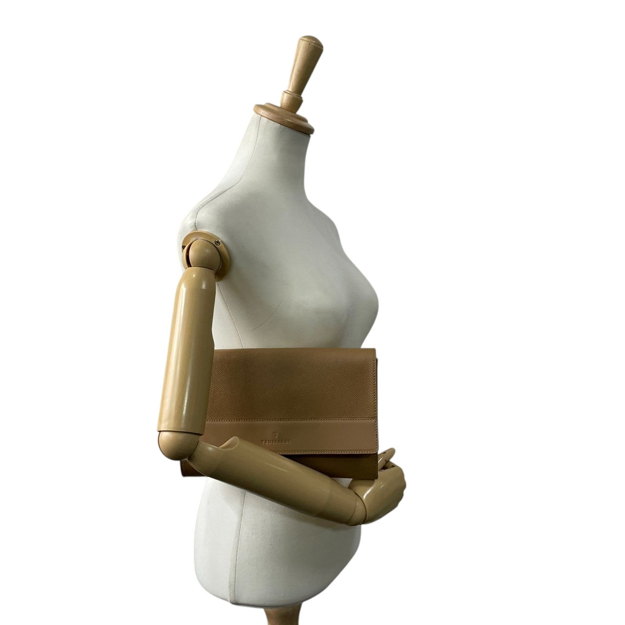 【TRUSSARDI】トラサルディ クラッチバッグ セカンドバッグ PVC レザー ベージュ系 ロゴ型押し イタリア製 メンズ レディース ユニセックス フォーマル ビジネス ヴィンテージ スタイリッシュ 上品 クリーニング済み s7