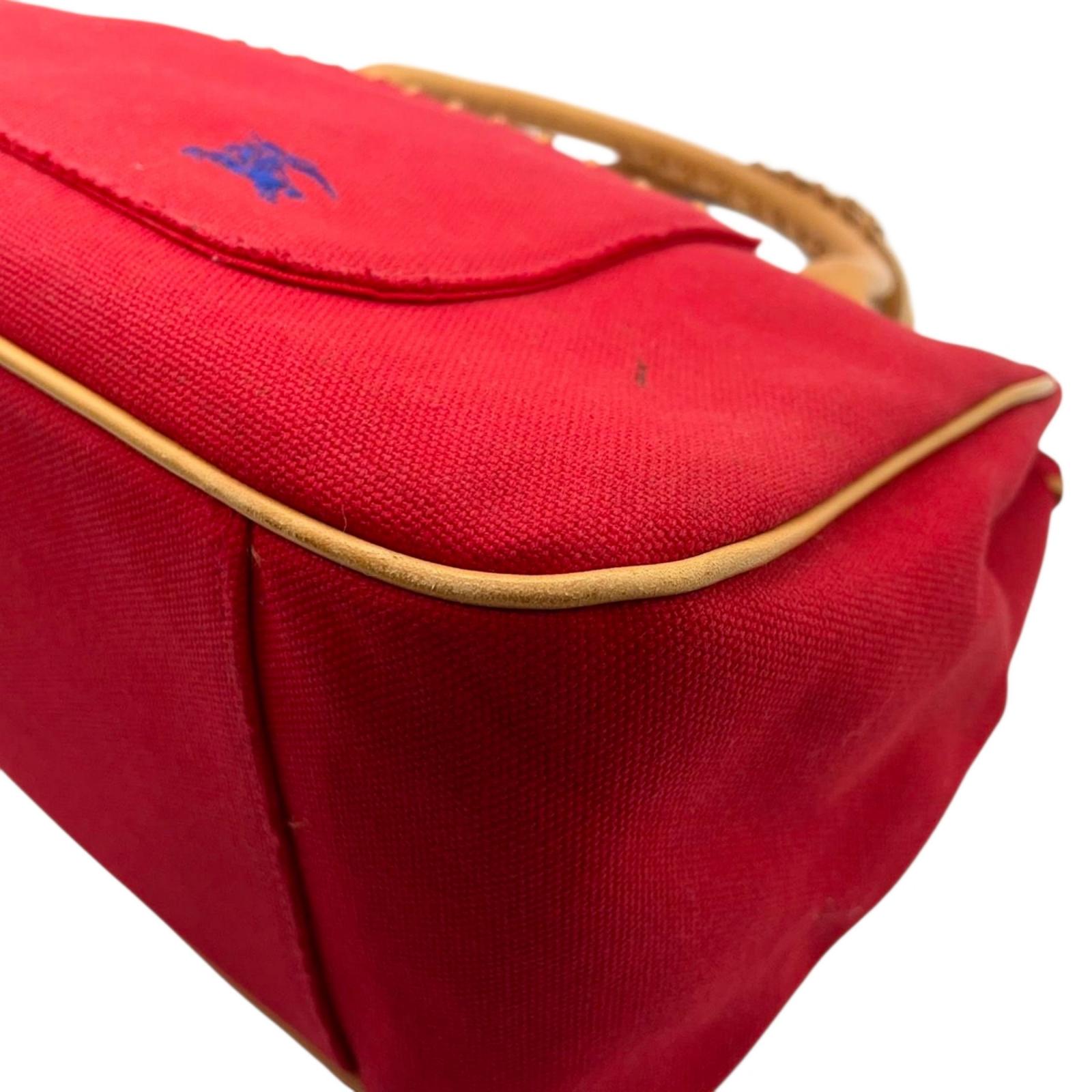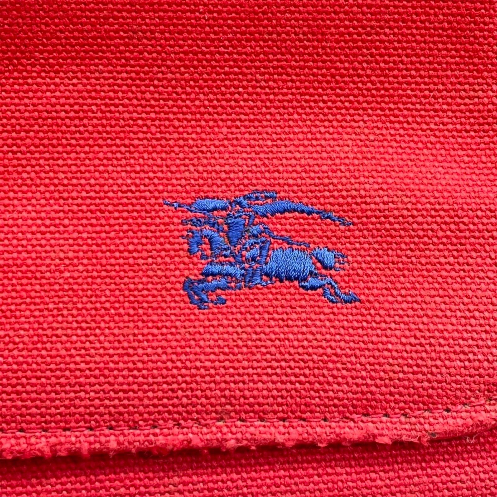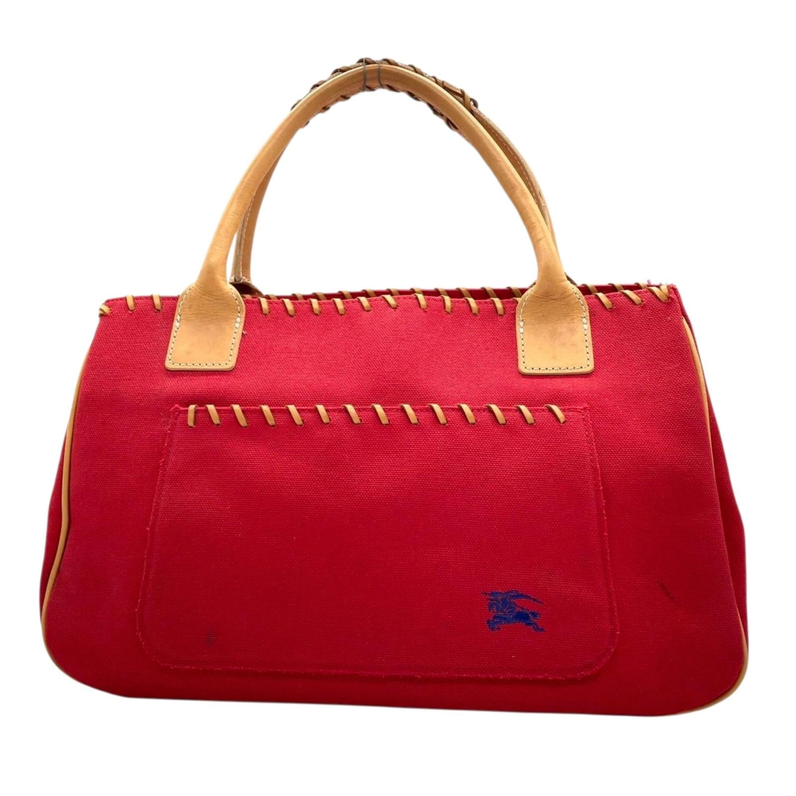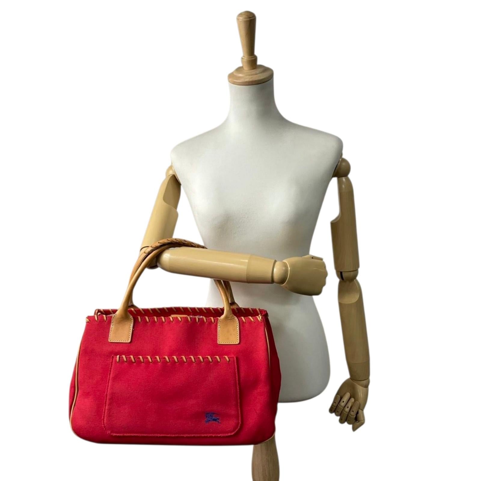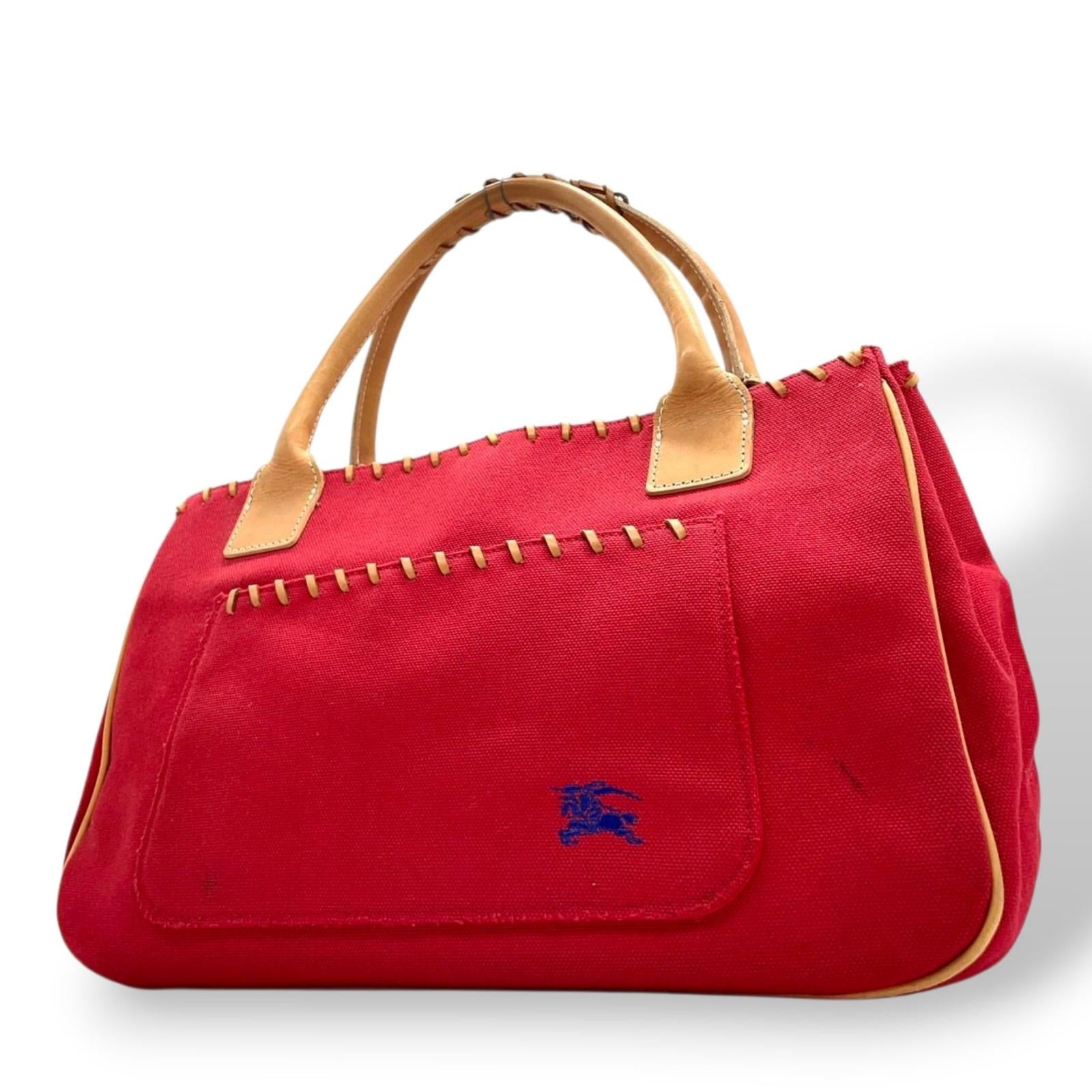 バーバリーブルーレーベル トートバッグ ハンドバッグ 舟形 A4 PC収納可 キャンバス レザー コンビ ホースロゴ 刺繍 太番手ステッチ 赤 レッド レディース 大容量 通勤 通学 カジュアル おしゃれ クリーニング済み s95