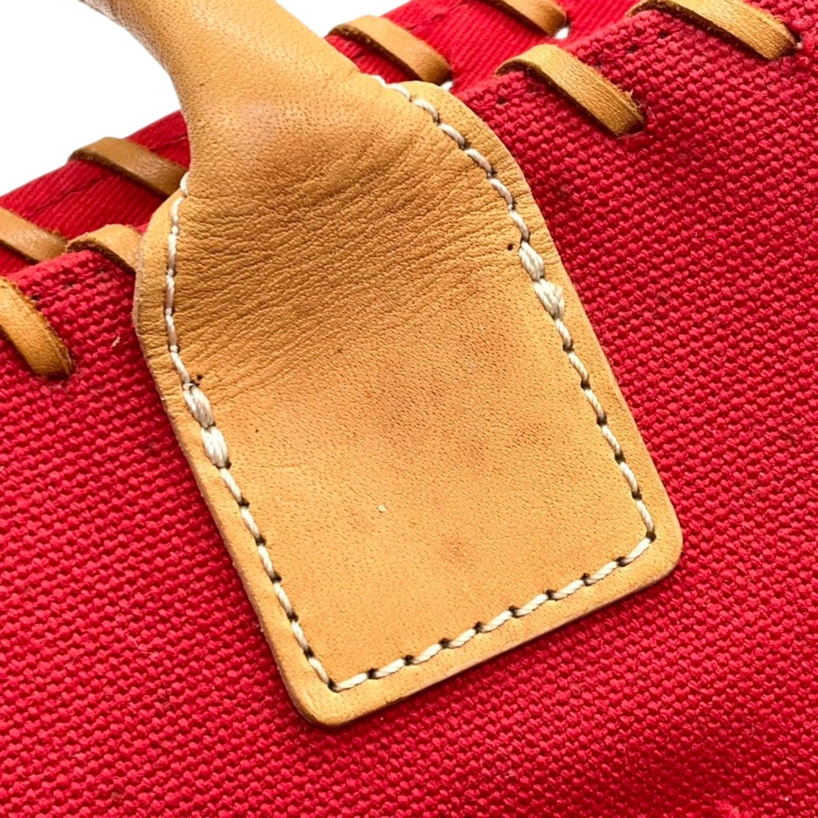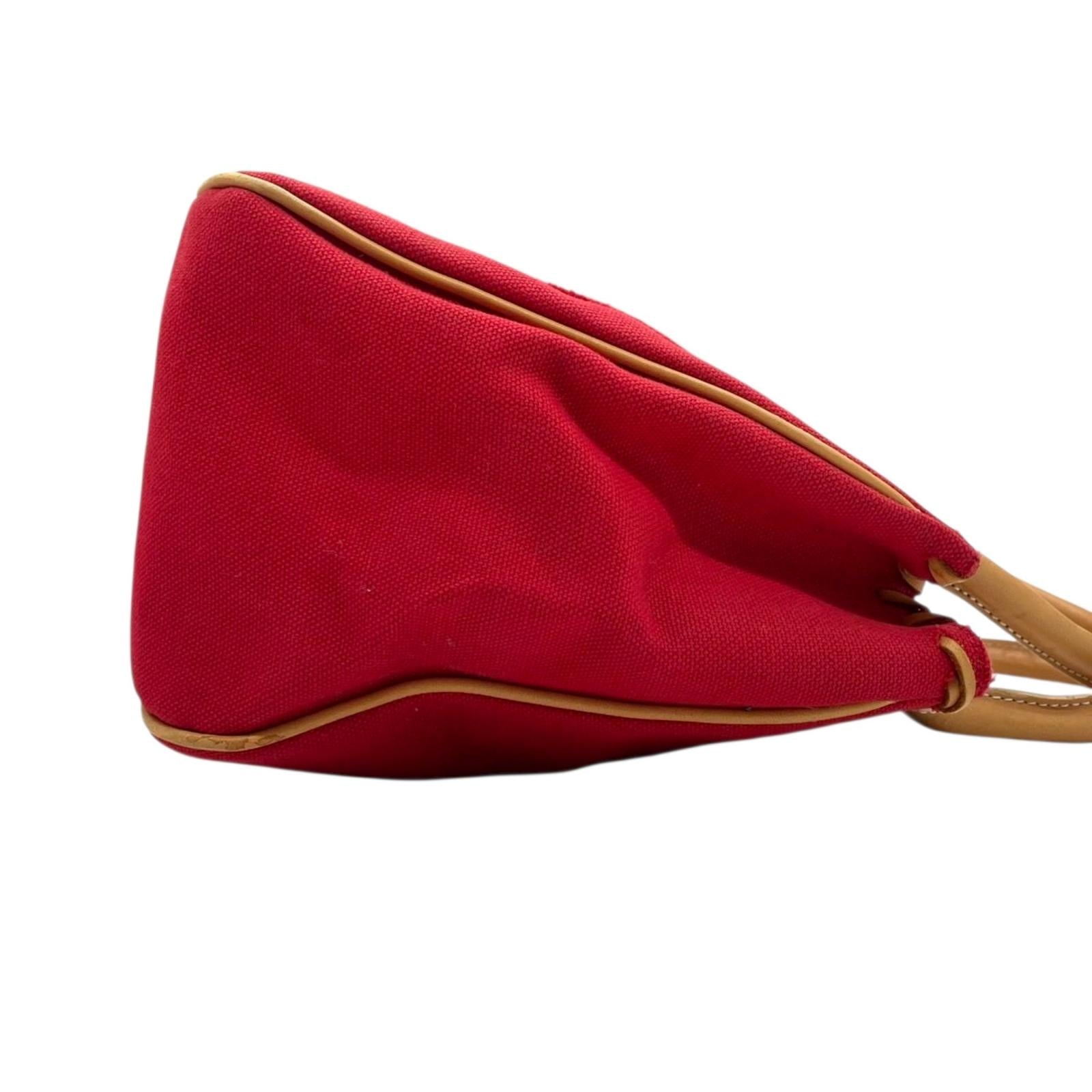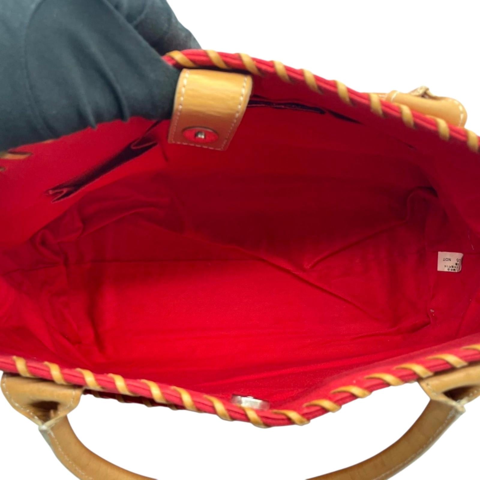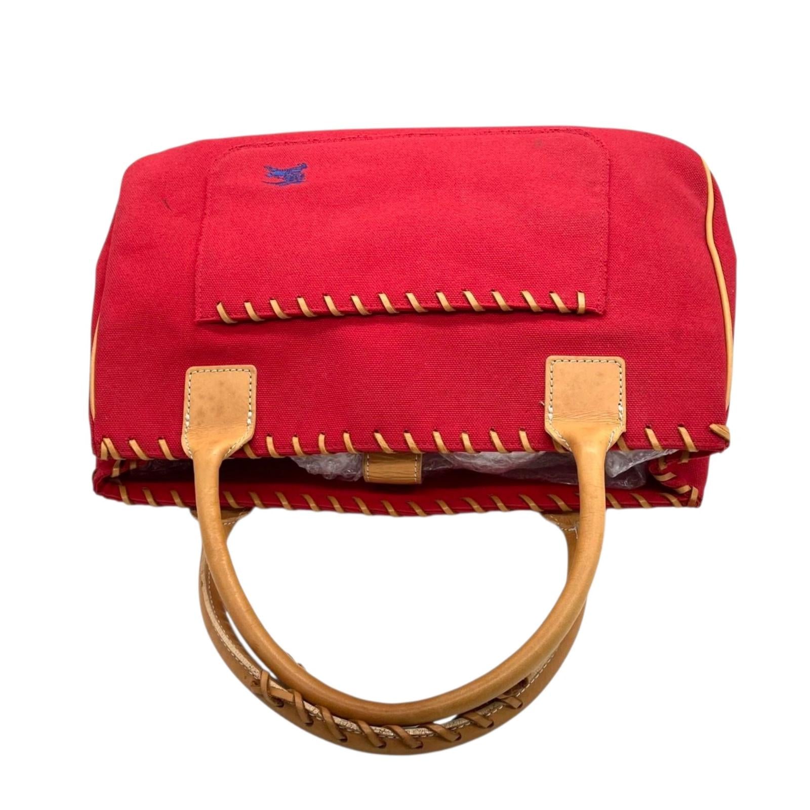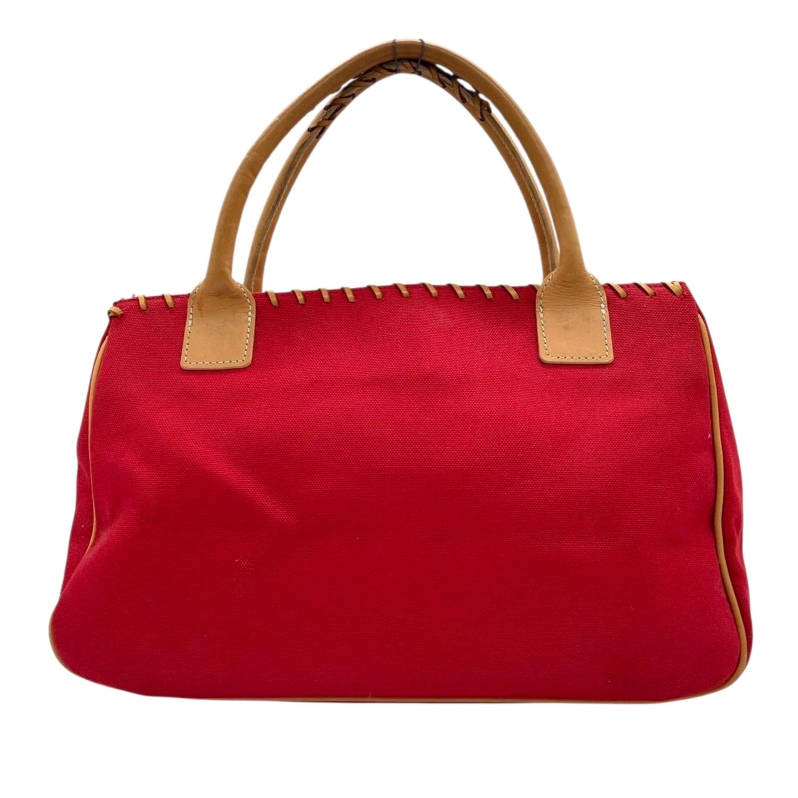 バーバリーブルーレーベル トートバッグ ハンドバッグ 舟形 A4 PC収納可 キャンバス レザー コンビ ホースロゴ 刺繍 太番手ステッチ 赤 レッド レディース 大容量 通勤 通学 カジュアル おしゃれ クリーニング済み s95