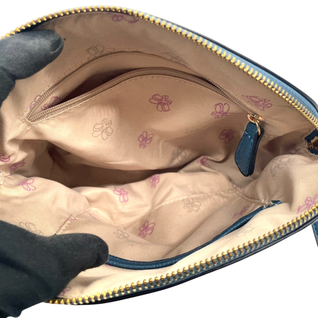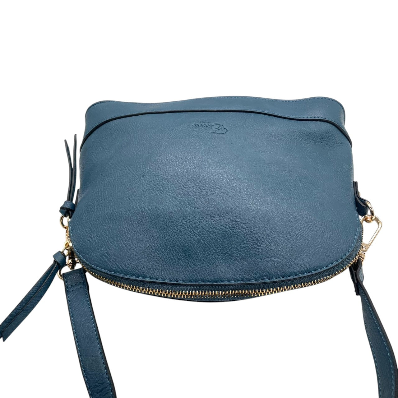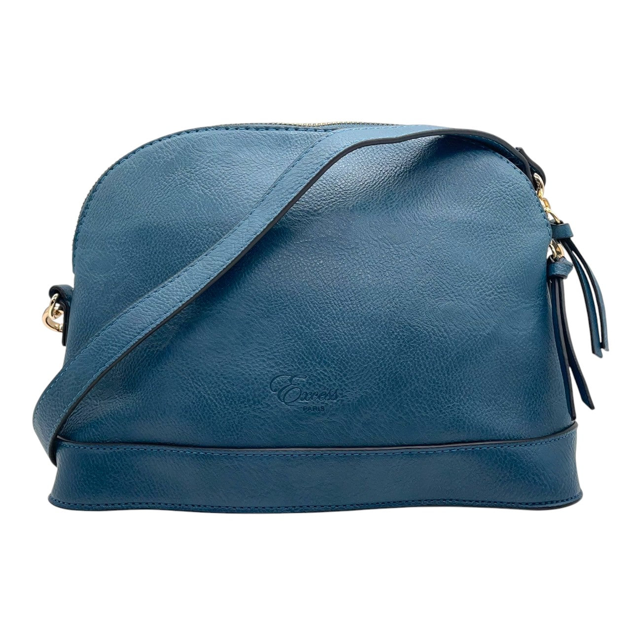 【美品】Forces フォース ショルダーバッグ クロスボディ 斜め掛け可 本革 レザー ネイビー ブルー系 ゴールド金具 ロゴ型押し タッセルチャーム レディース エレガント カジュアル デイリーユース 人気モデル クリーニング済み u12