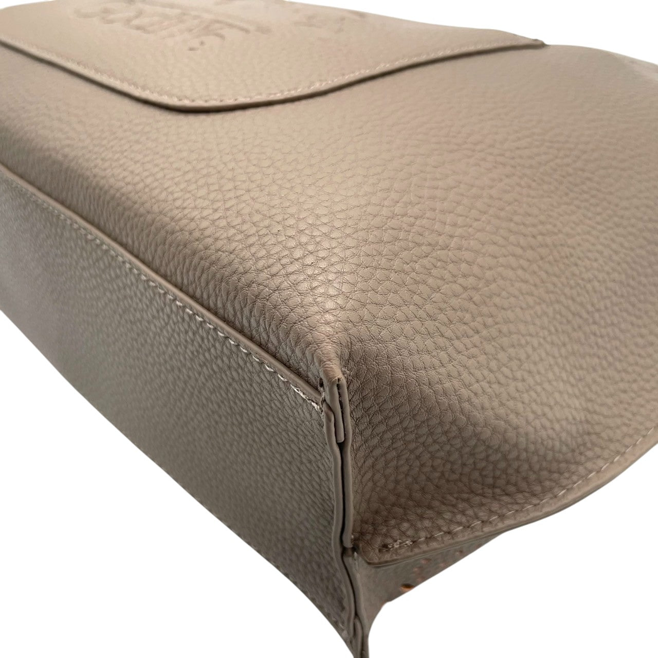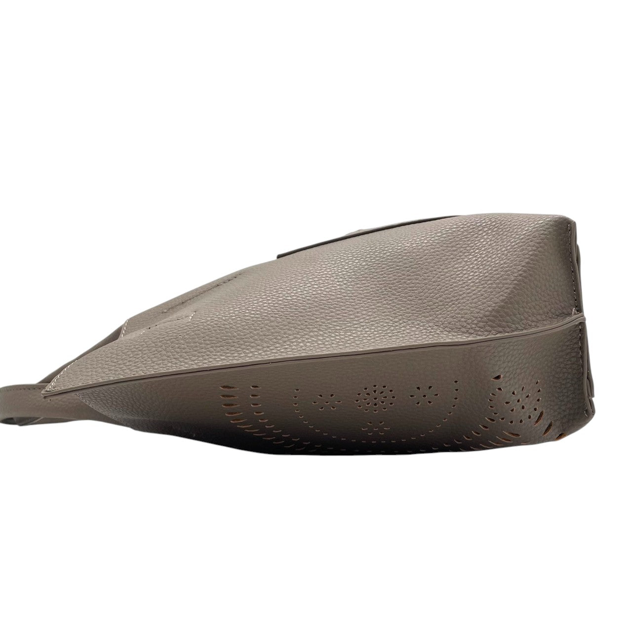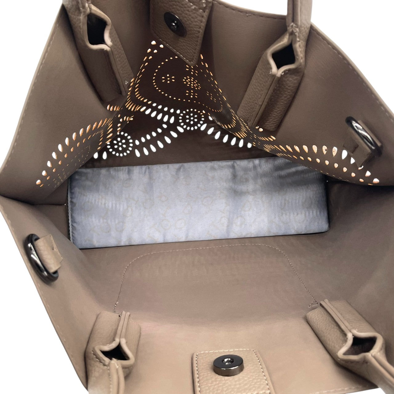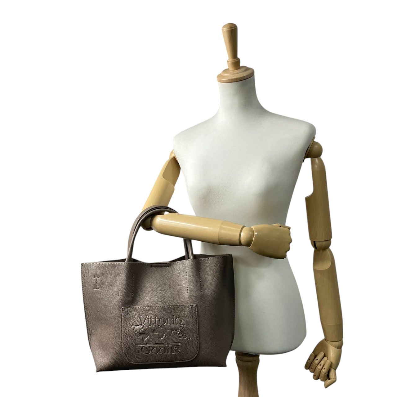 【美品】Vittorio Godi ヴィットリオゴーディ ハンドバッグ トートバッグ 本革 レザー シボ革 グレー グレージュ系 ワールドマップ ロゴ型押し レディース エレガント カジュアル デイリーユース 人気モデル クリーニング済み s95