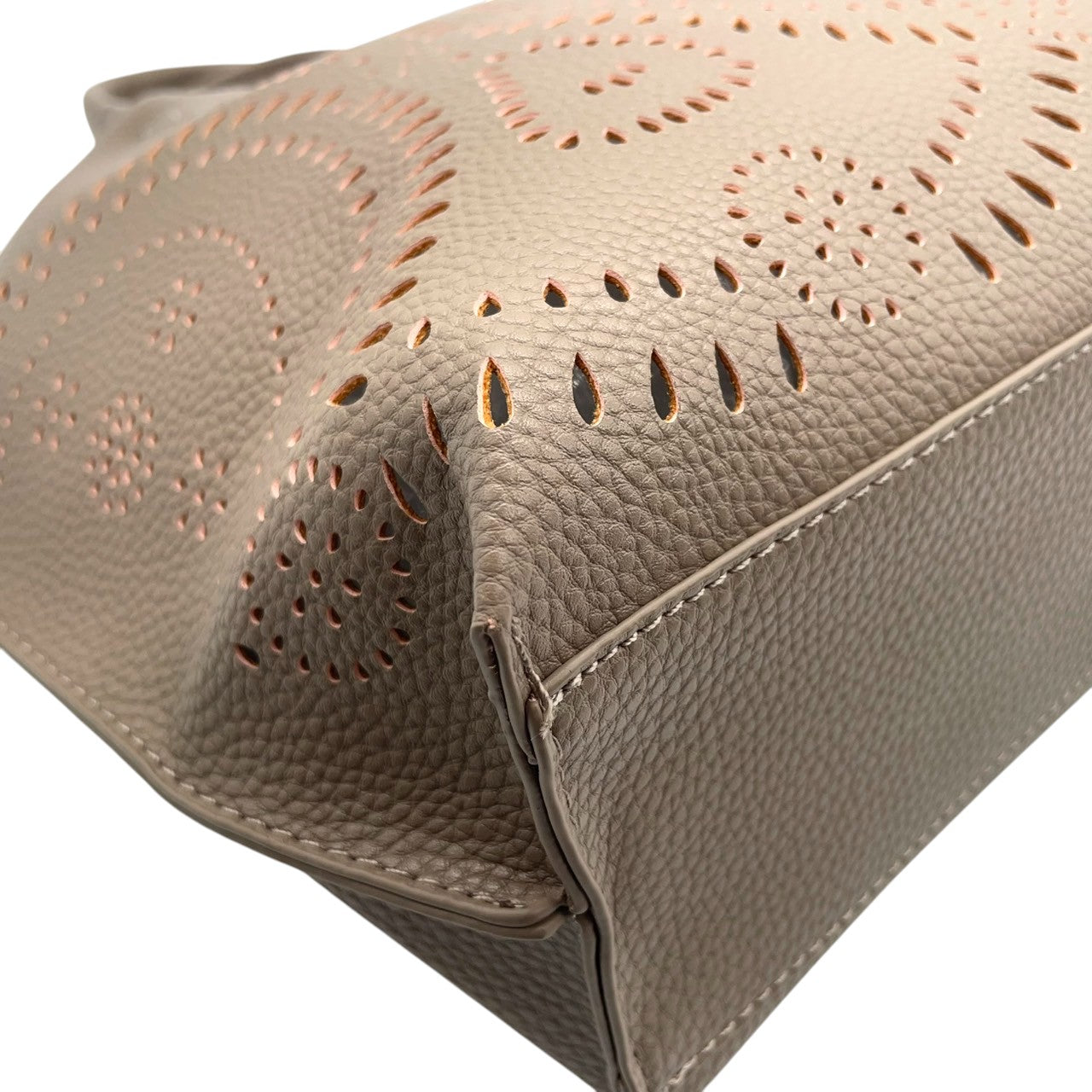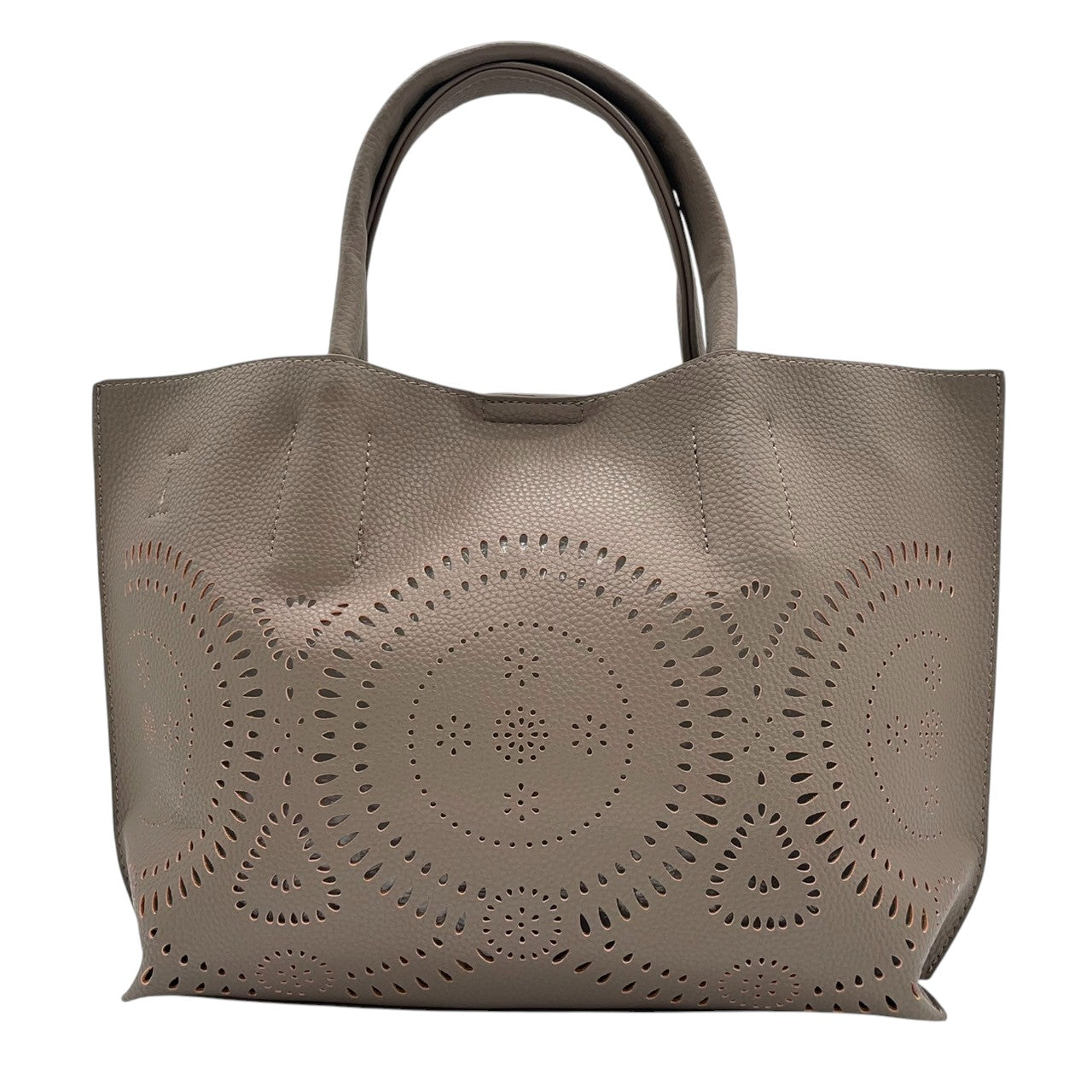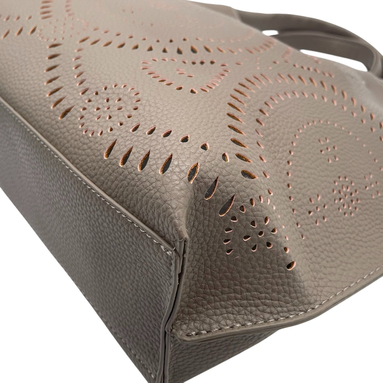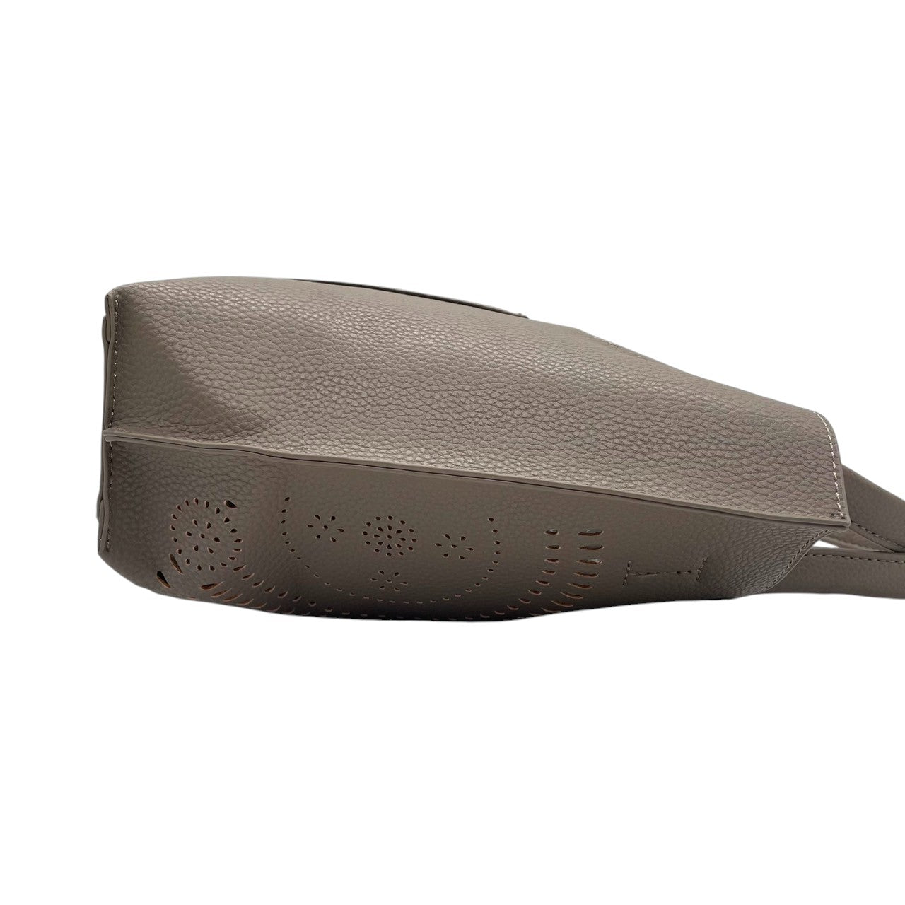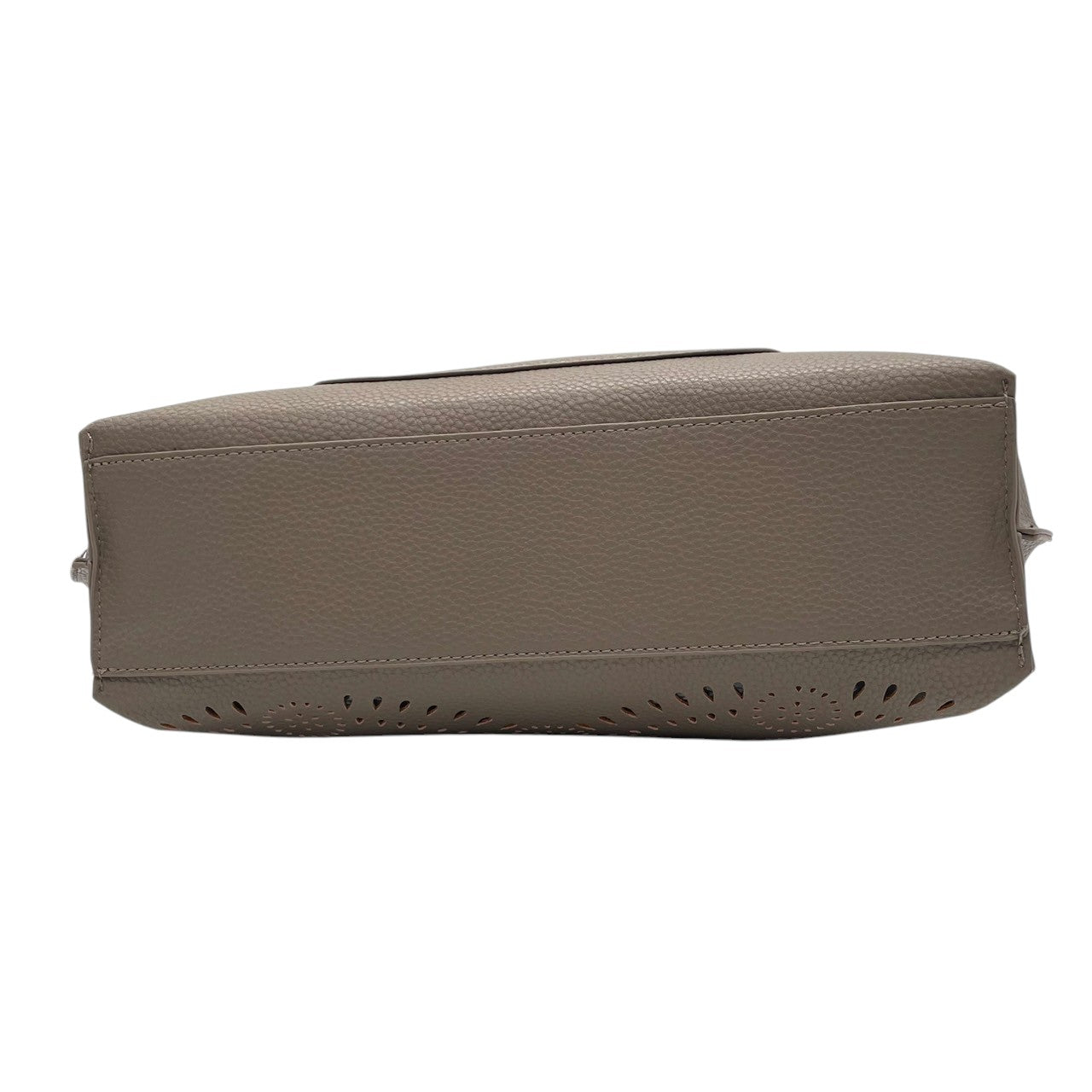 【美品】Vittorio Godi ヴィットリオゴーディ ハンドバッグ トートバッグ 本革 レザー シボ革 グレー グレージュ系 ワールドマップ ロゴ型押し レディース エレガント カジュアル デイリーユース 人気モデル クリーニング済み s95