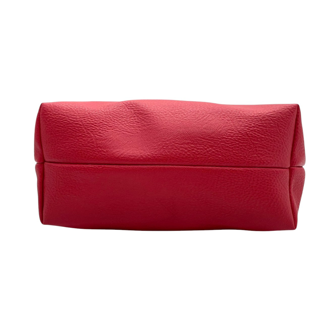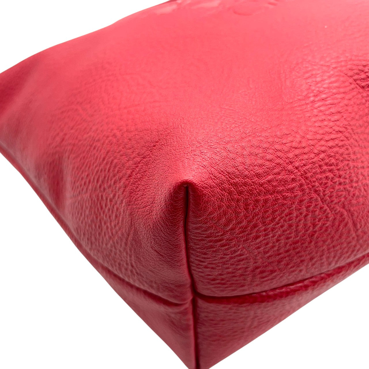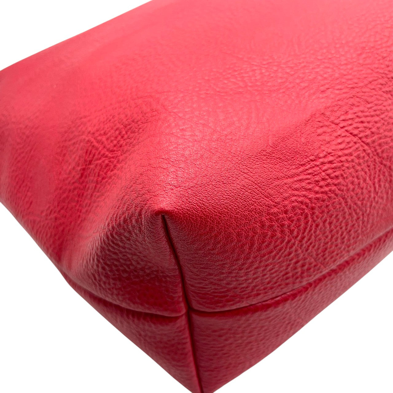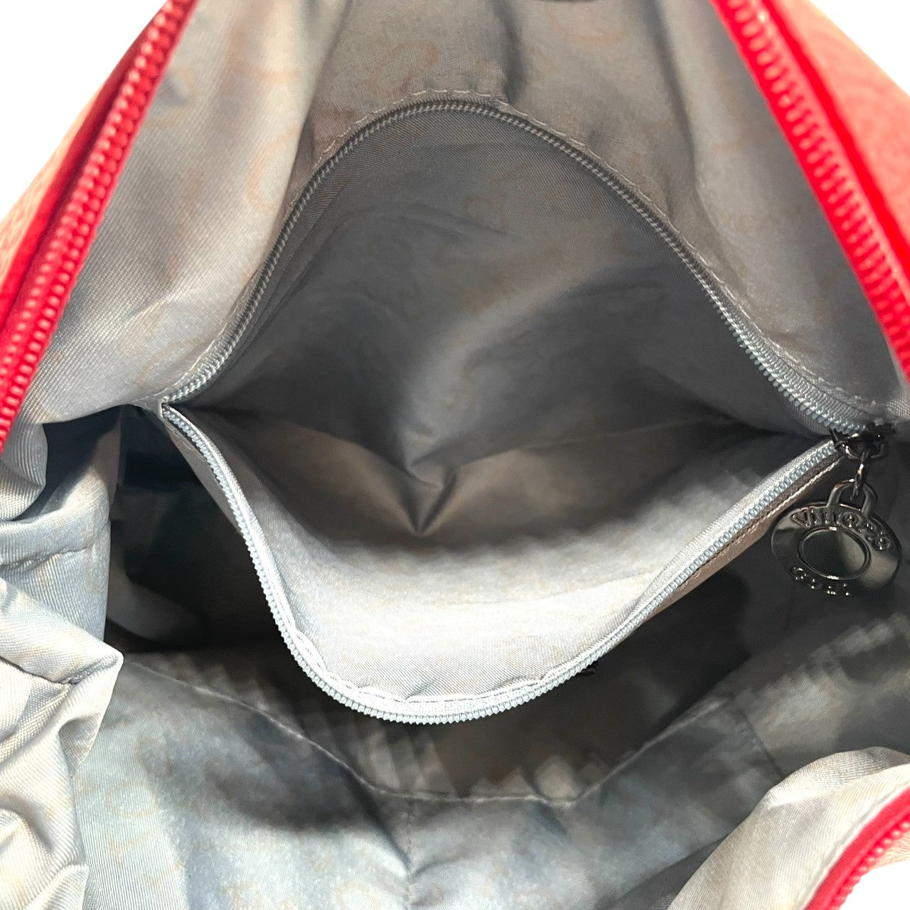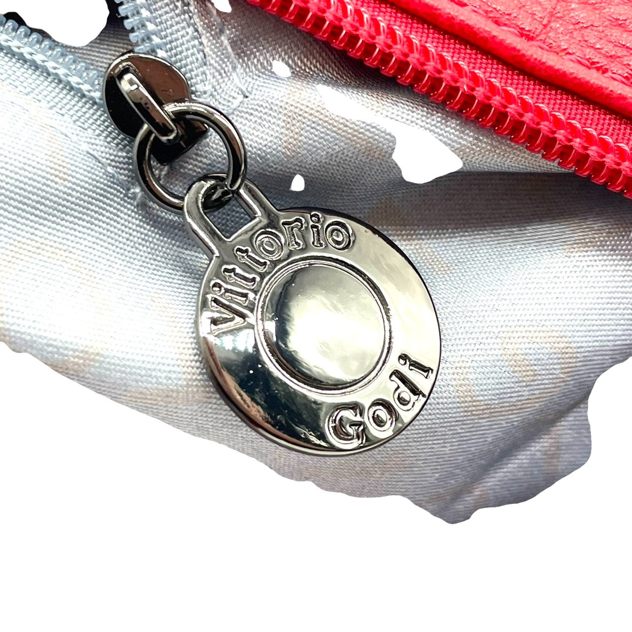 【美品】Vittorio Godi ヴィットリオゴーディ ショルダーバッグ ワンショルダー 斜め掛け可 クロスボディ 本革 レザー シボ革 レッド 赤 ワールドマップ ロゴ型押し レディース カジュアル エレガント クリーニング済み u3