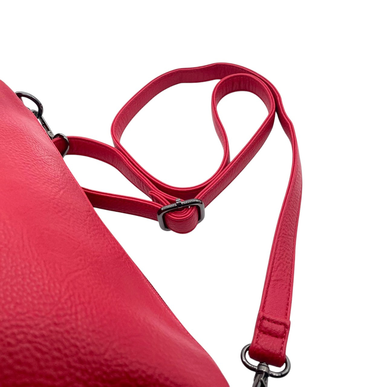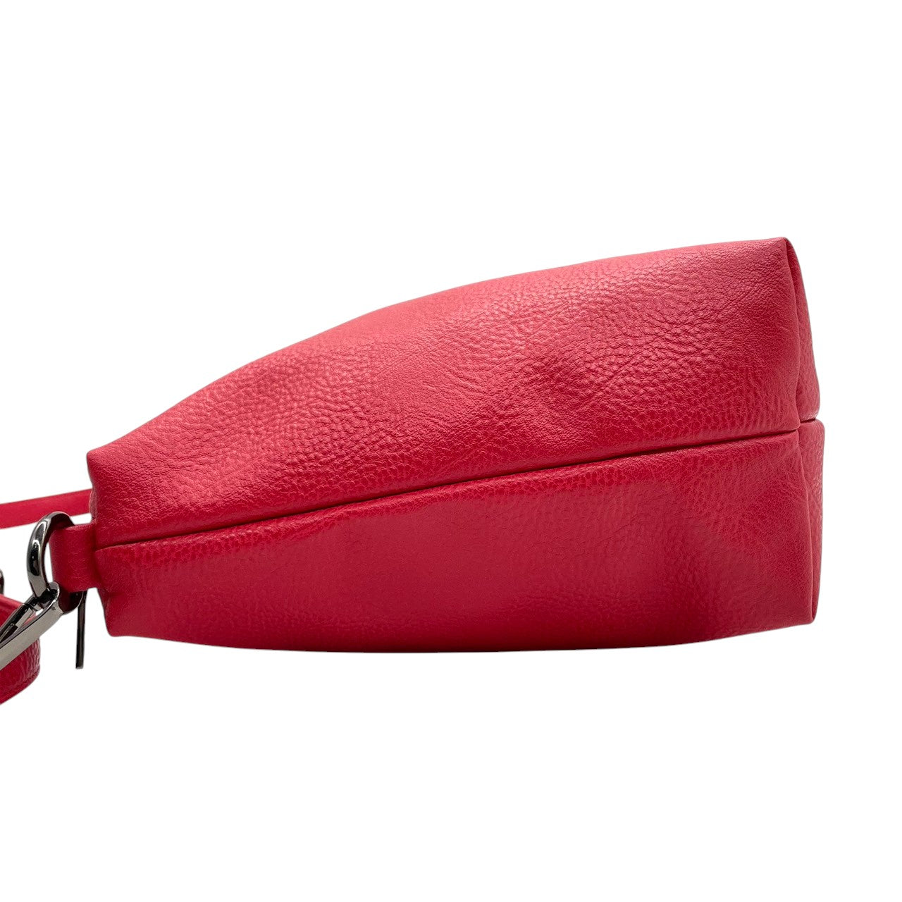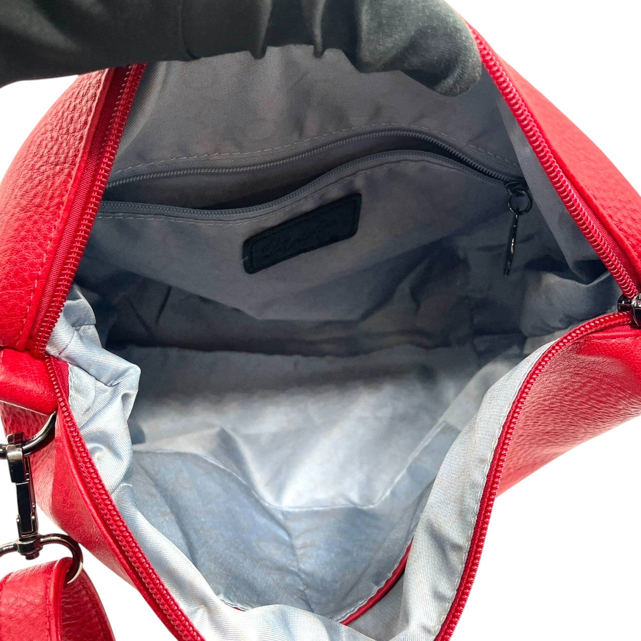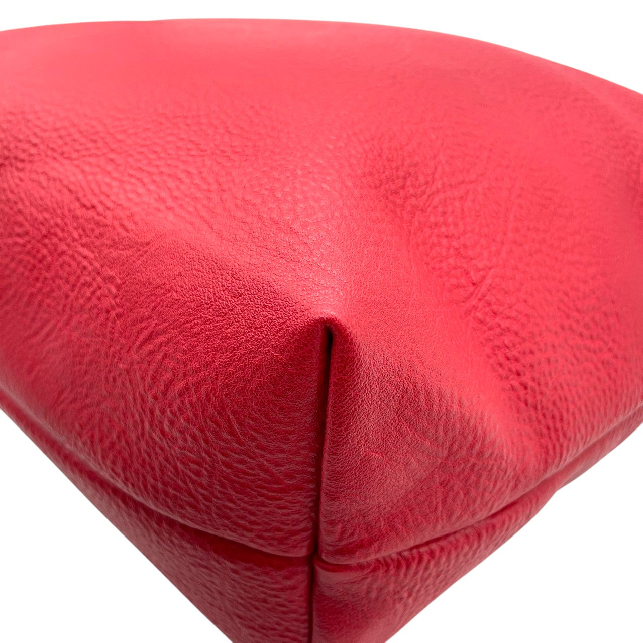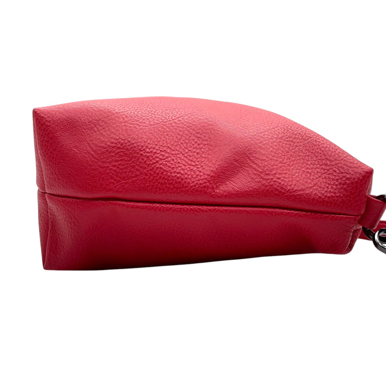 【美品】Vittorio Godi ヴィットリオゴーディ ショルダーバッグ ワンショルダー 斜め掛け可 クロスボディ 本革 レザー シボ革 レッド 赤 ワールドマップ ロゴ型押し レディース カジュアル エレガント クリーニング済み u3