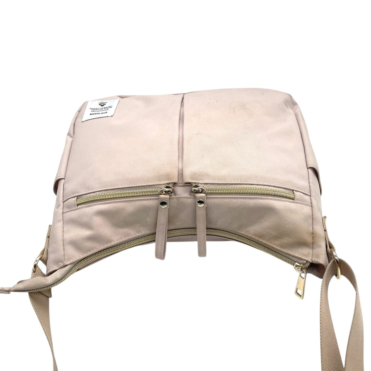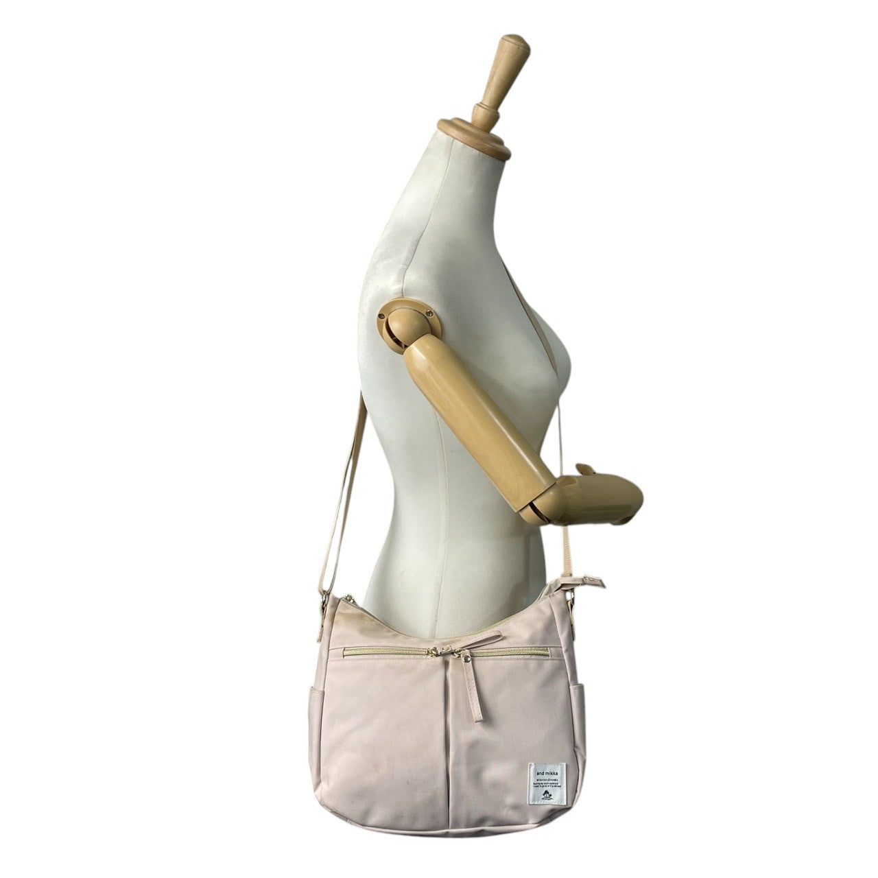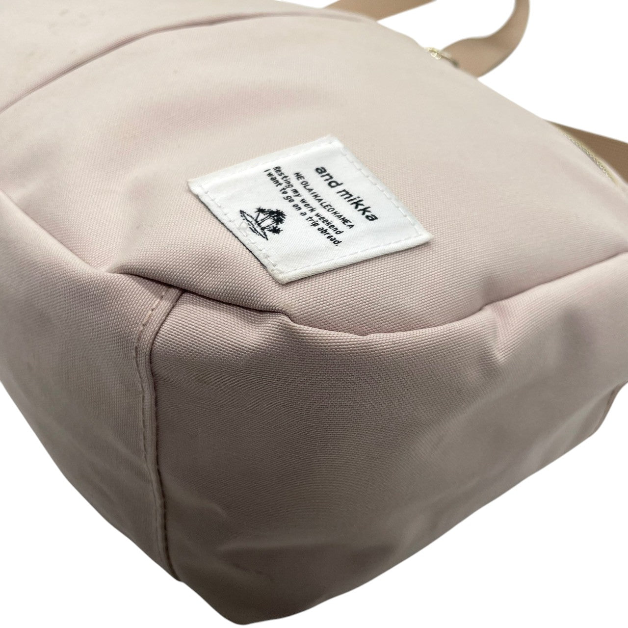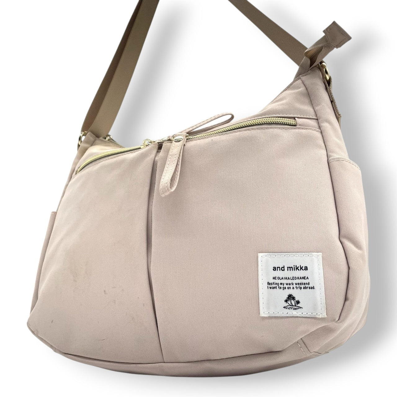 【and mikka】アンドミカ ショルダーバッグ クロスボディ 斜め掛け可 キャンバス ピンクベージュ系 軽量 大容量 多収納 ポケット多数 レディース カジュアル デイリーユース マザーズバッグにも 人気モデル クリーニング済み u3