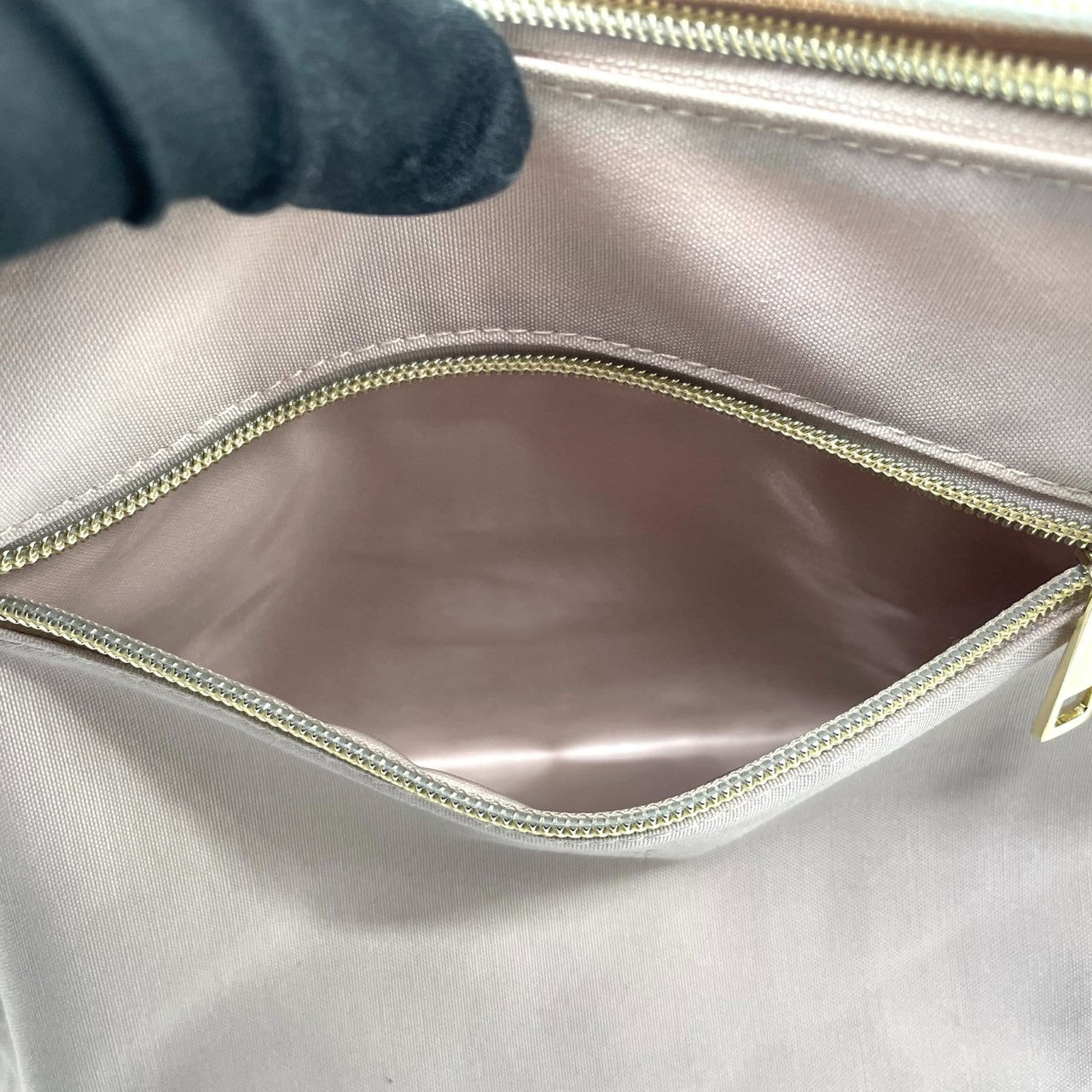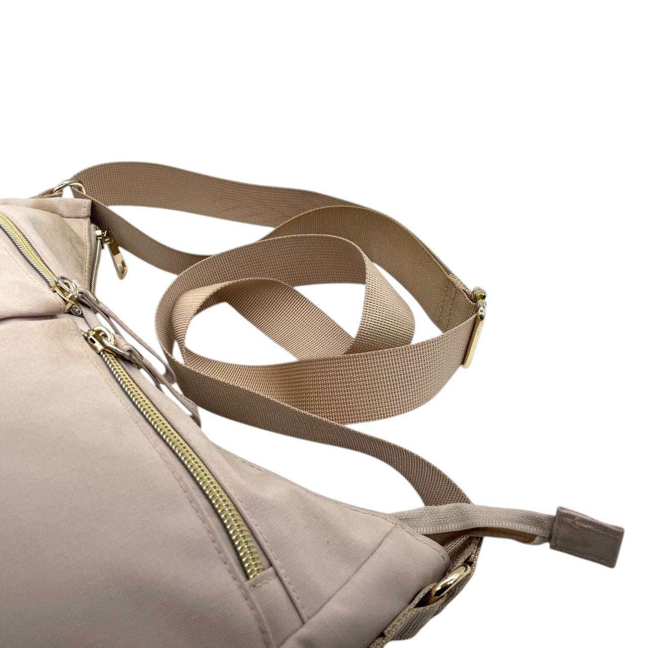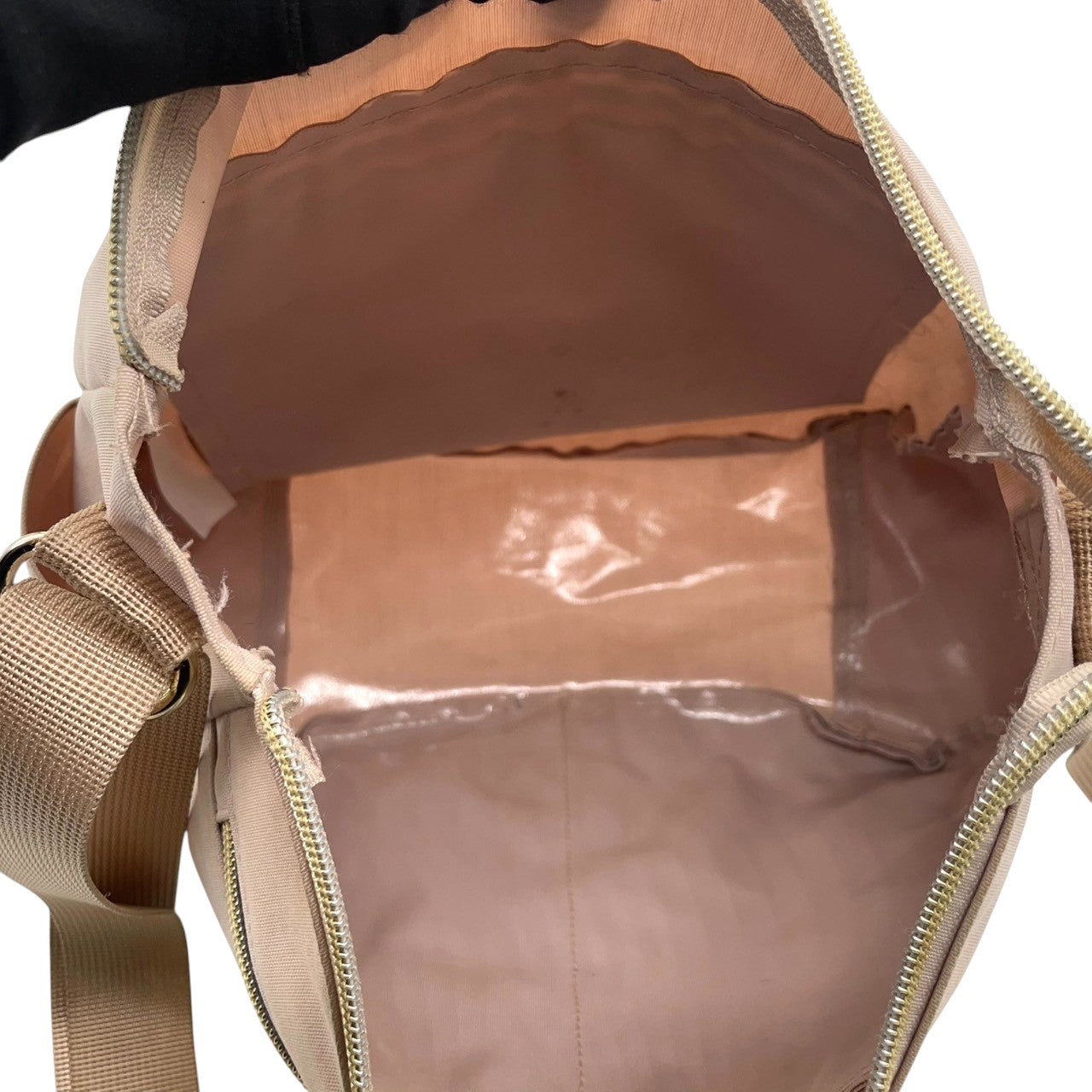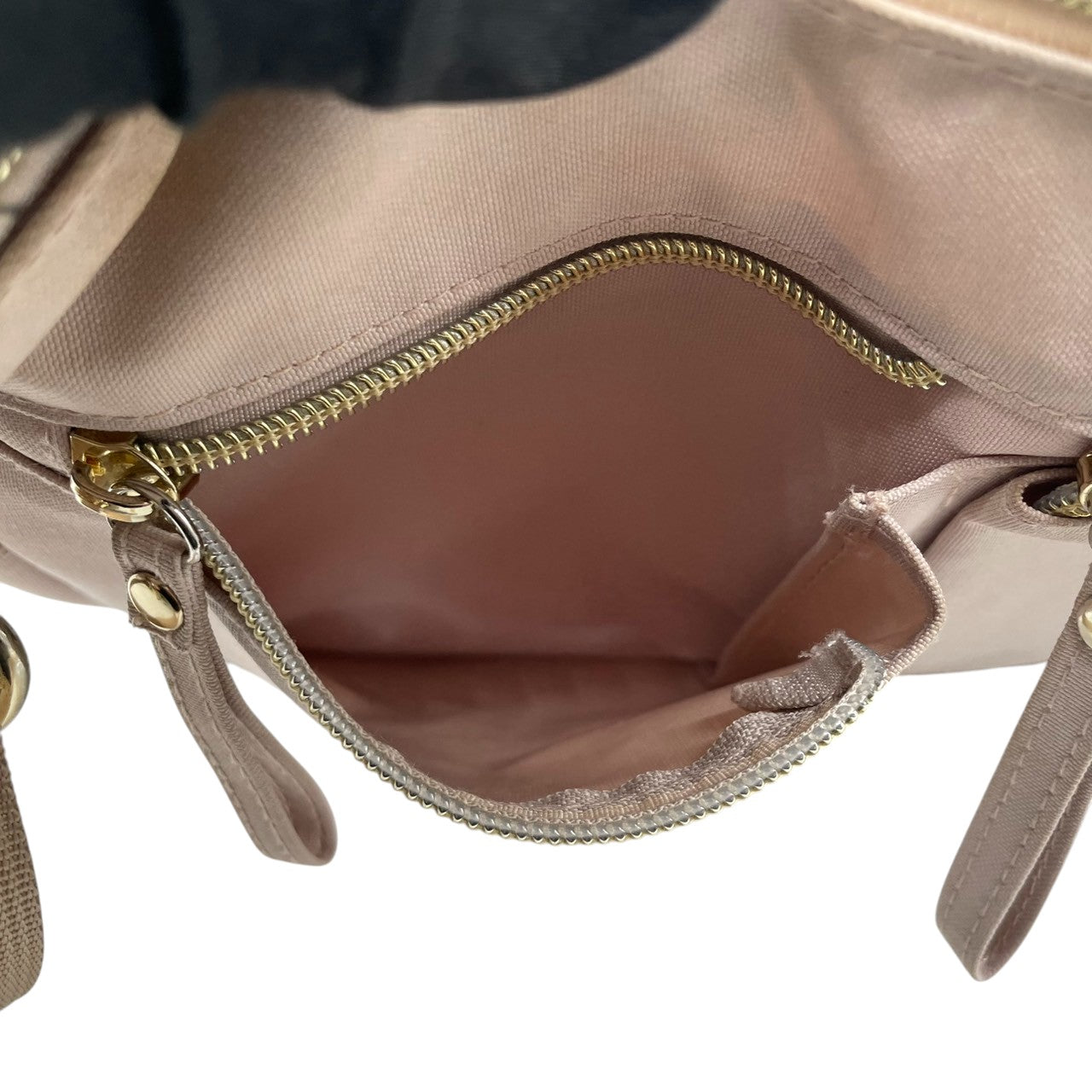 【and mikka】アンドミカ ショルダーバッグ クロスボディ 斜め掛け可 キャンバス ピンクベージュ系 軽量 大容量 多収納 ポケット多数 レディース カジュアル デイリーユース マザーズバッグにも 人気モデル クリーニング済み u3