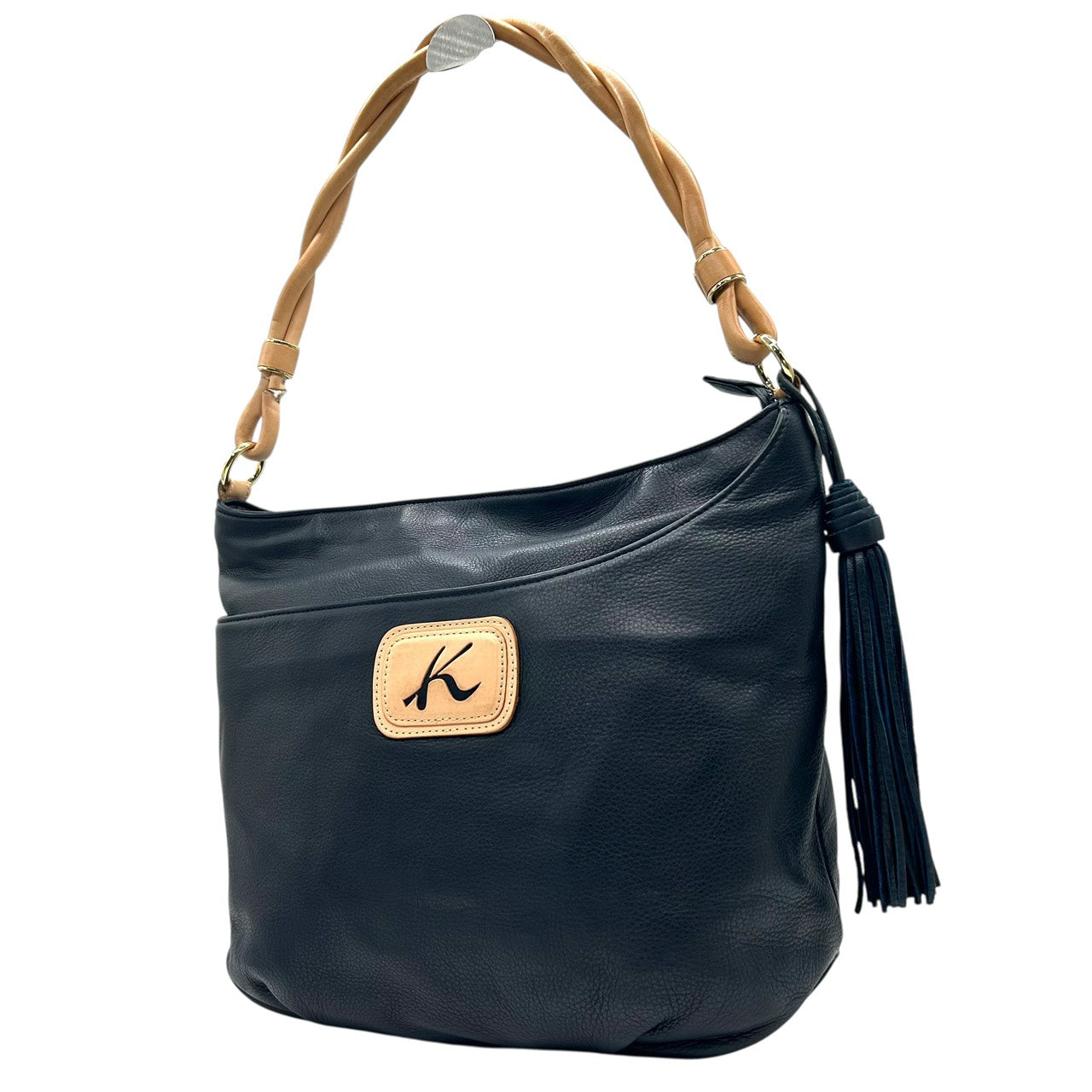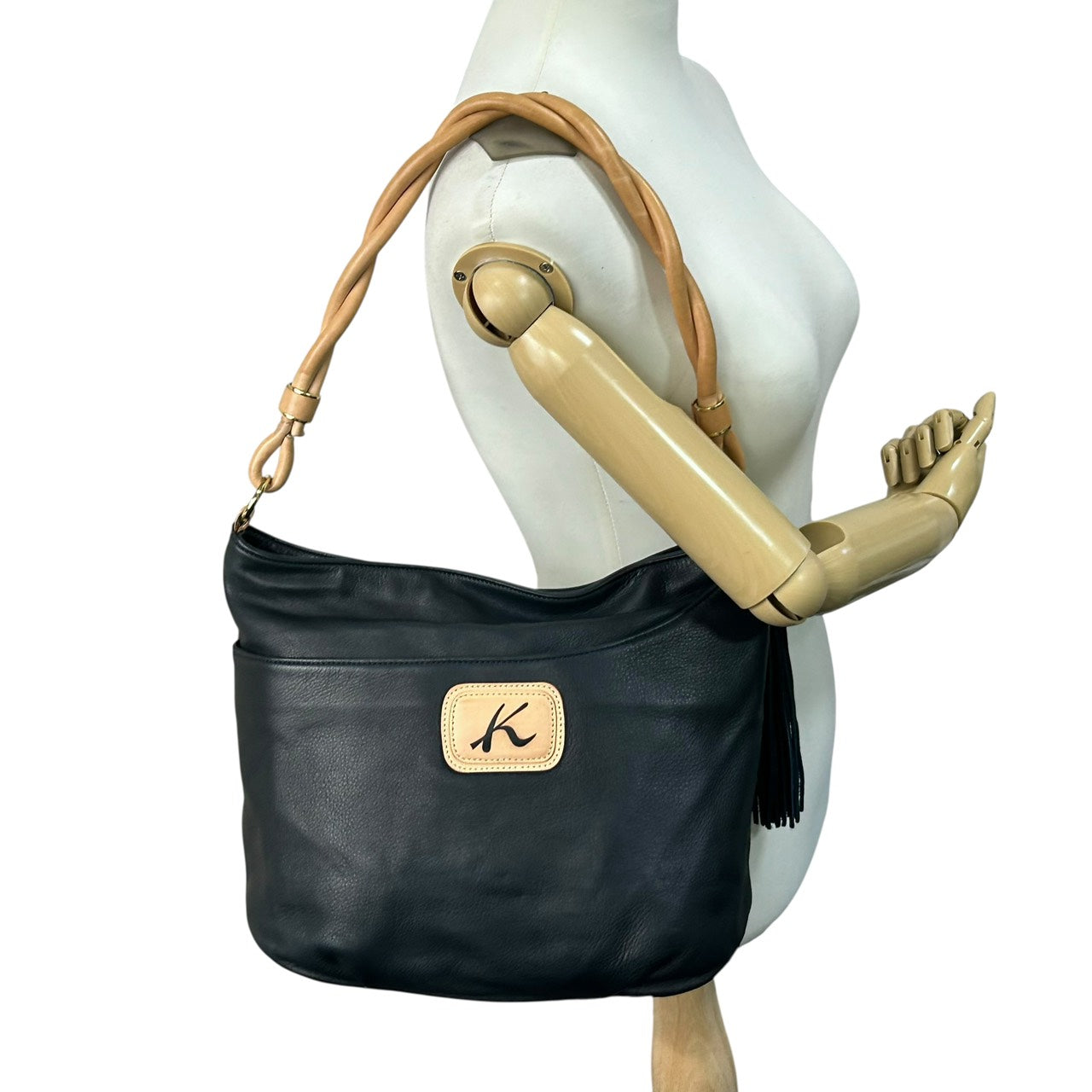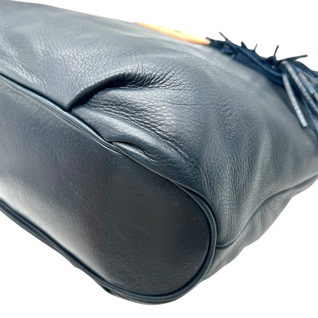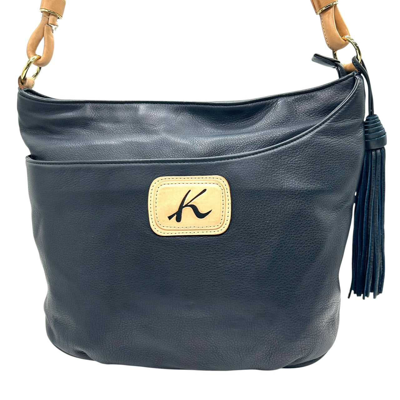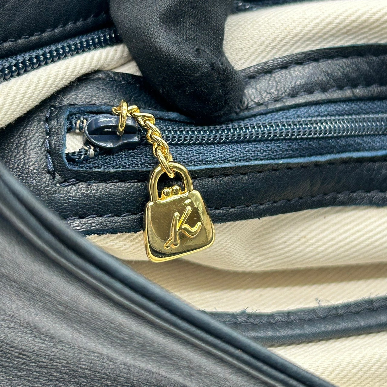 キタムラ Kitamura レザー ワンショルダーバッグ ネイビー 紺 タッセル付き ロゴプレート 本革 ハンドバッグ U9