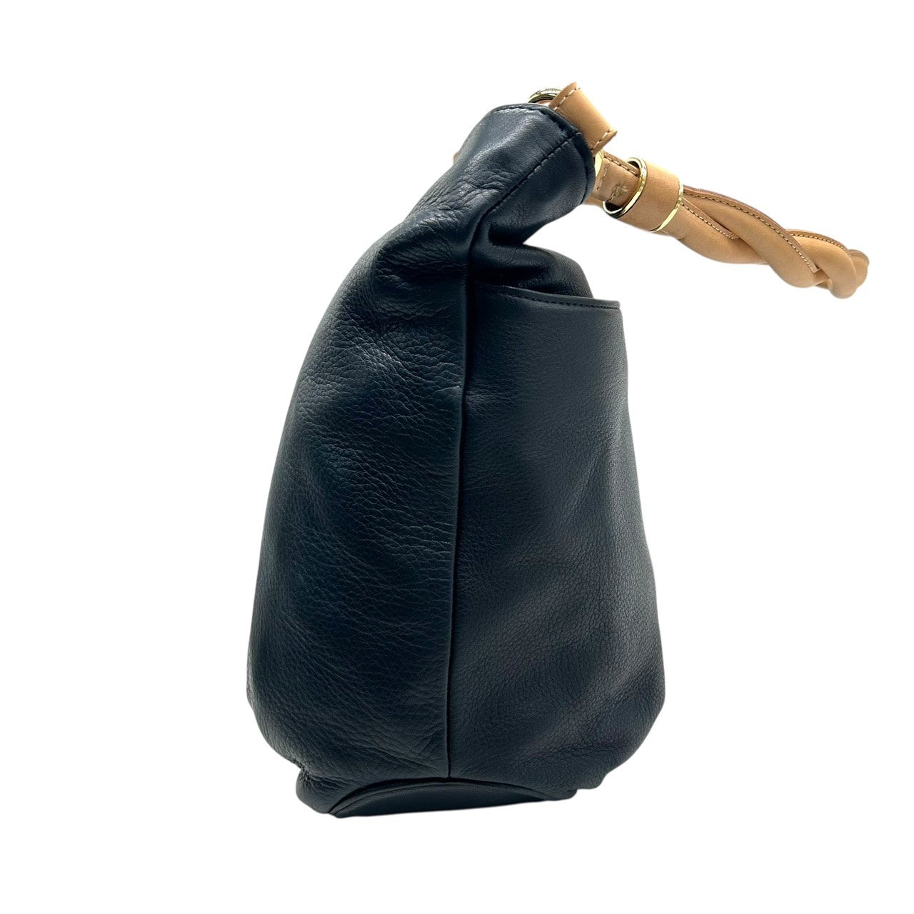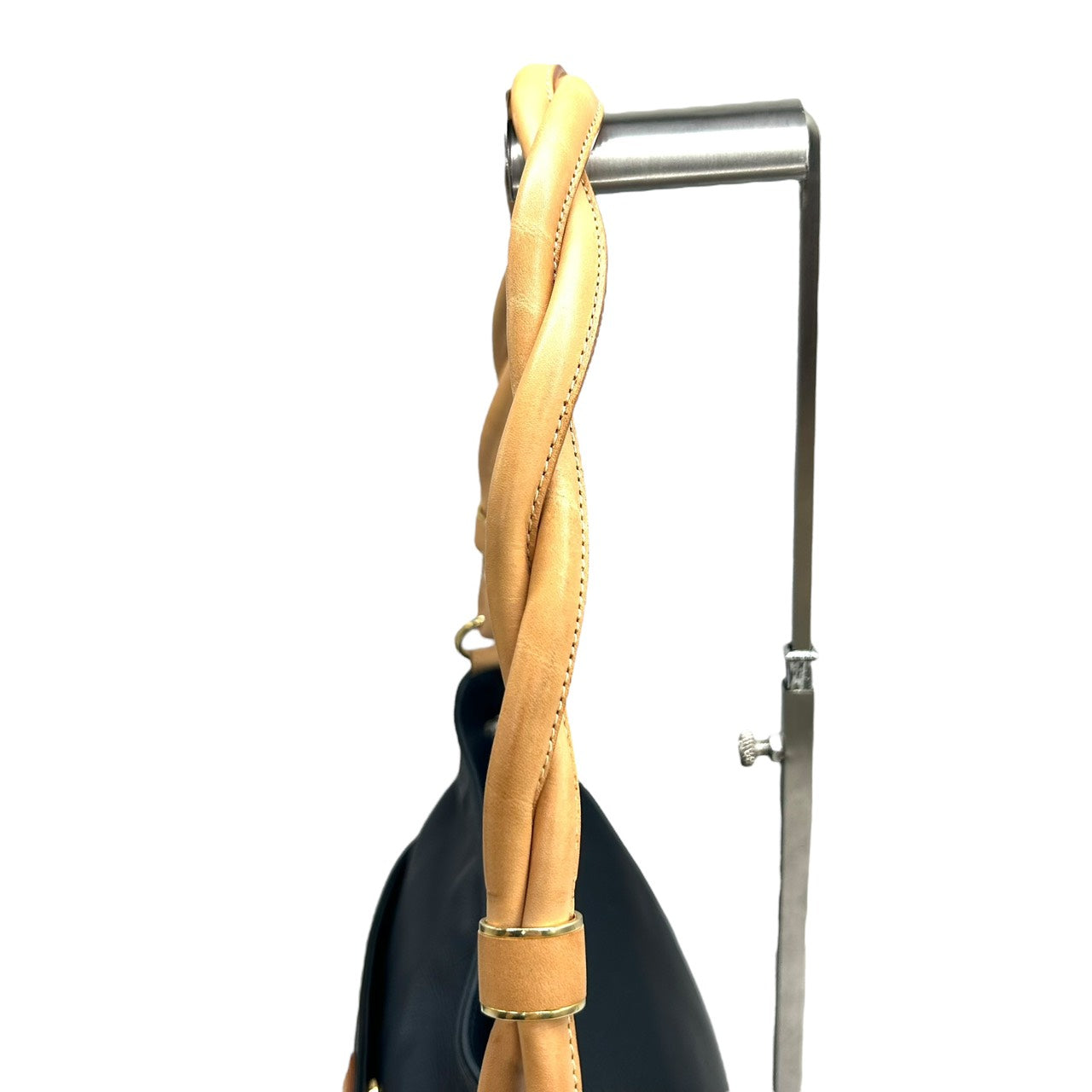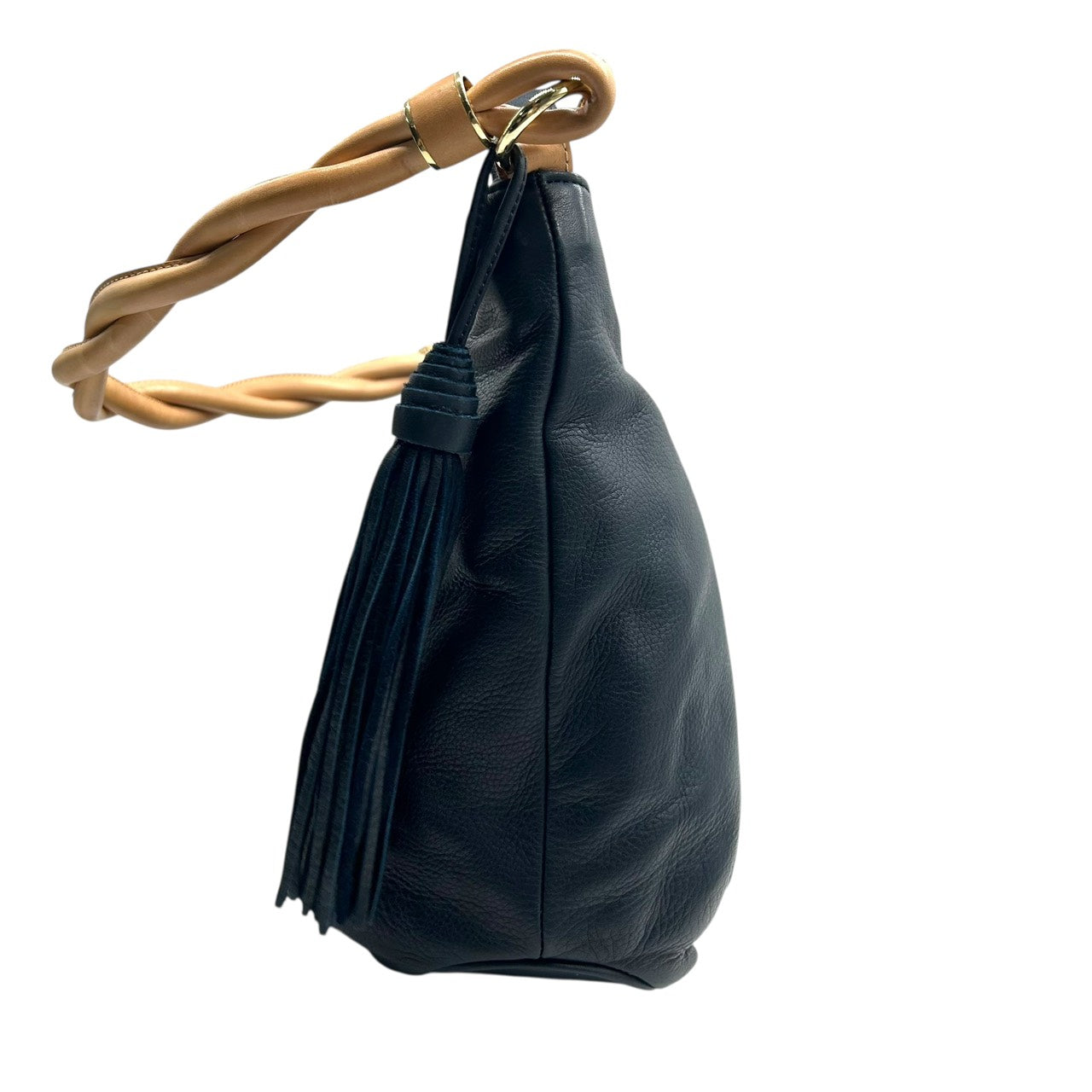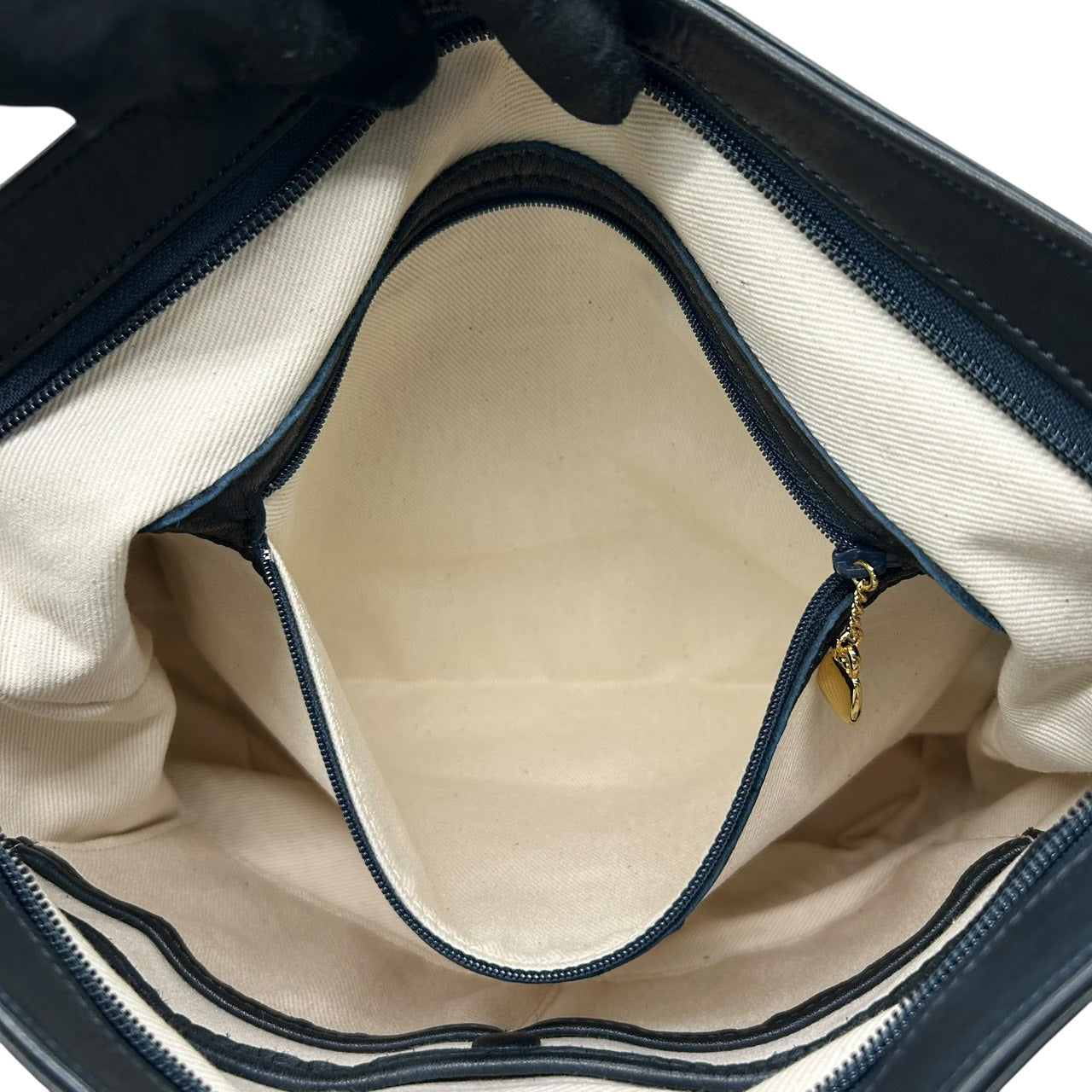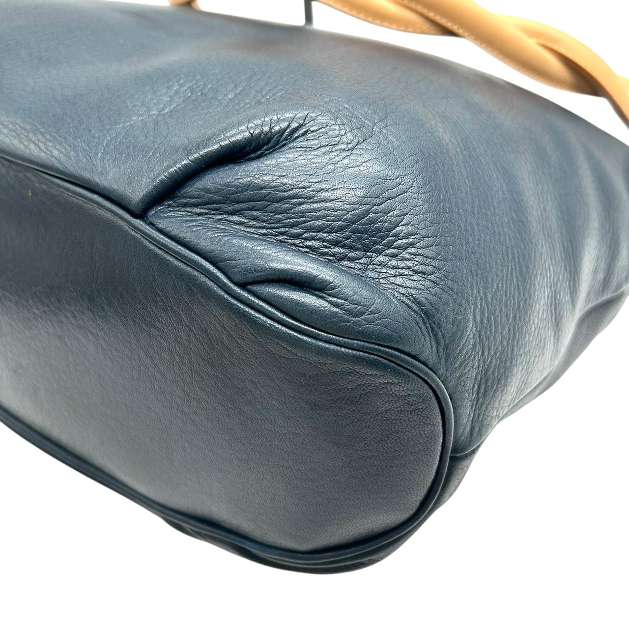 キタムラ Kitamura レザー ワンショルダーバッグ ネイビー 紺 タッセル付き ロゴプレート 本革 ハンドバッグ U9